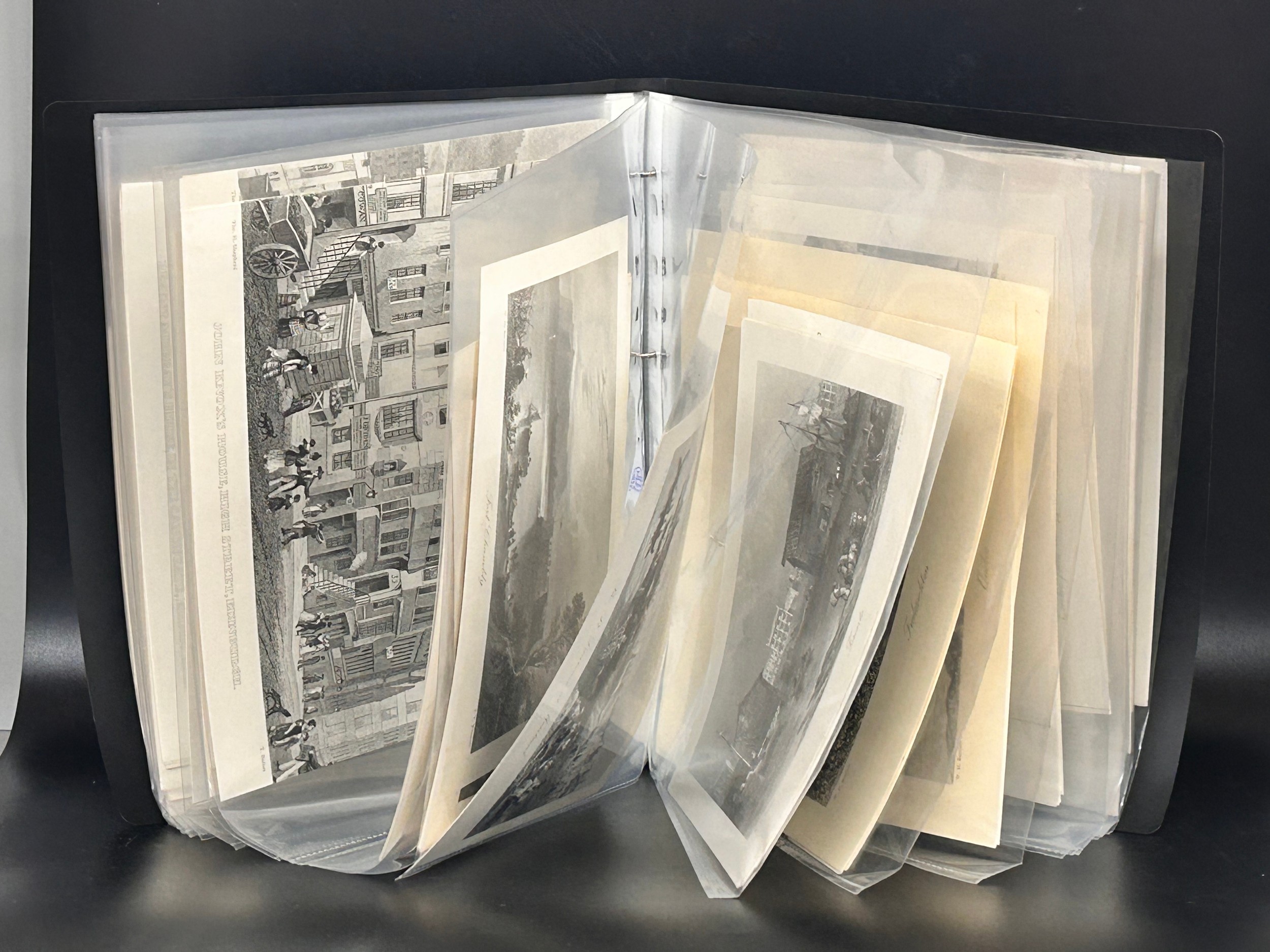 A collection of over 120 collotype prints (very fine in definition) in black and white covering topics such as; scenes of National Football Stadiums, (5 including Wembley and Maracana), old town engravings, views of Ireland, Edinburgh, London, Yorkshire and other European cities