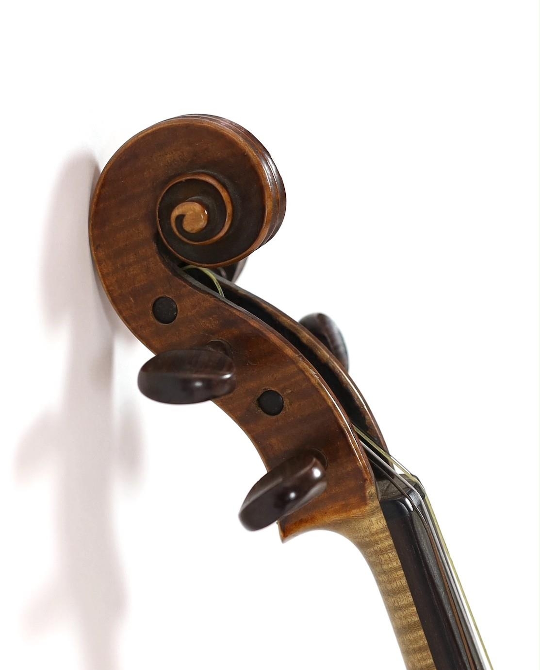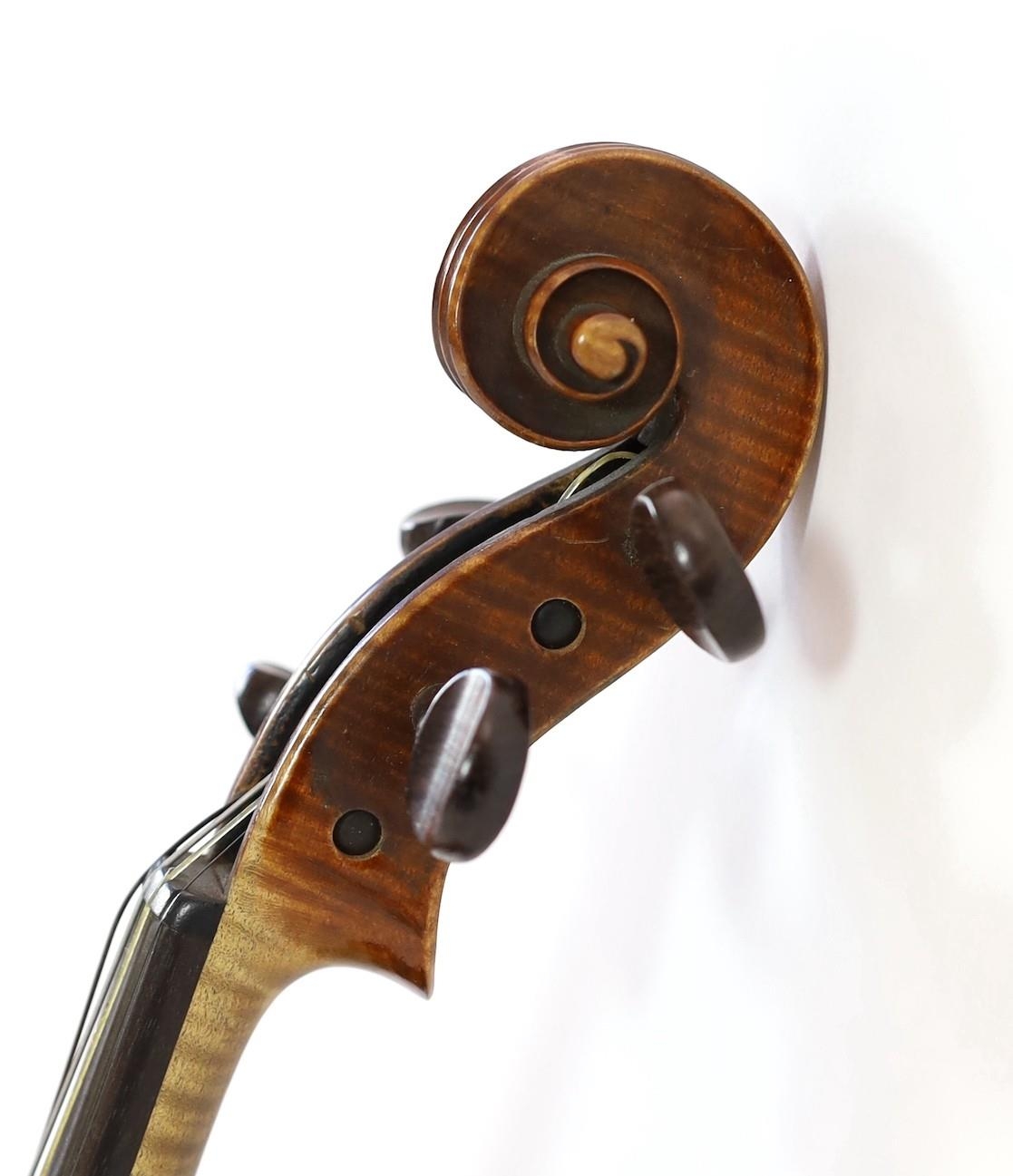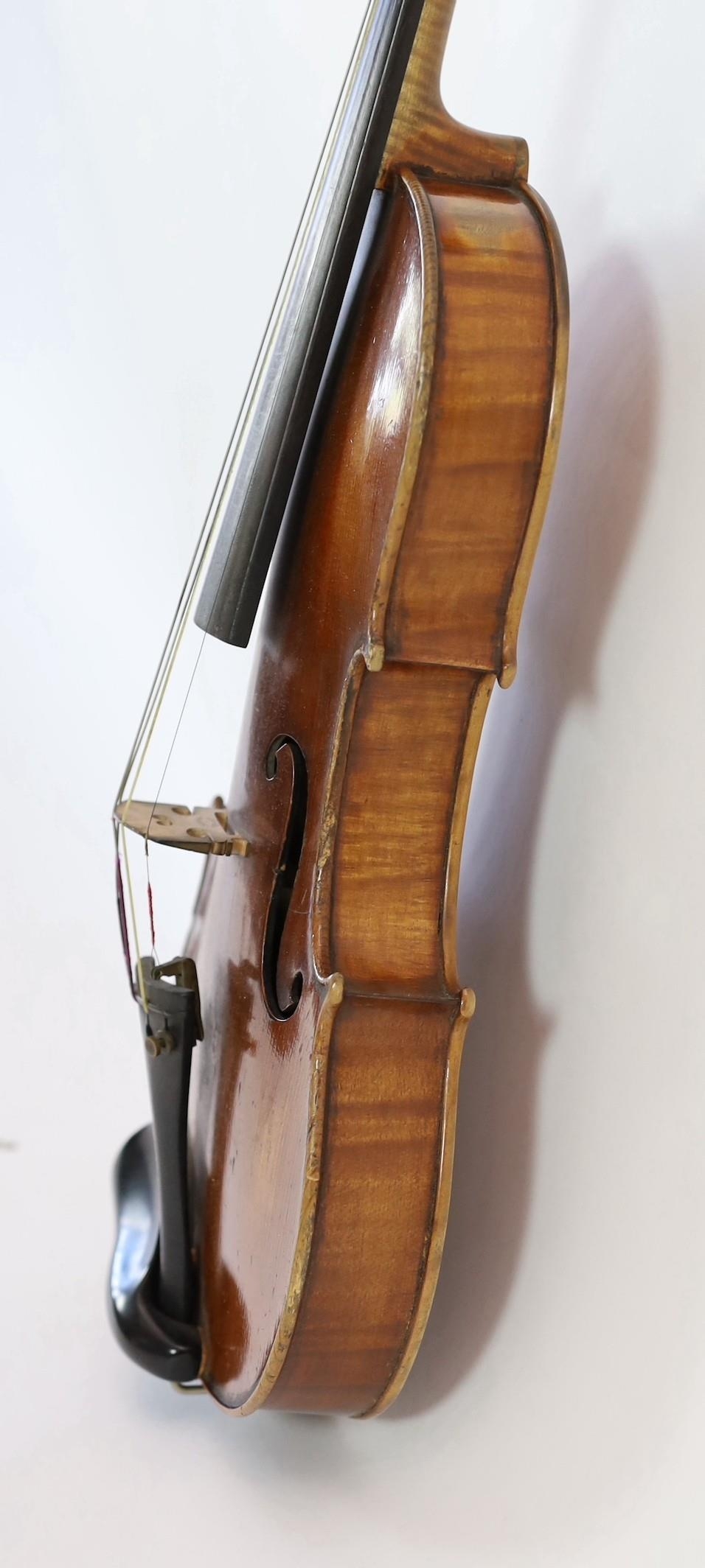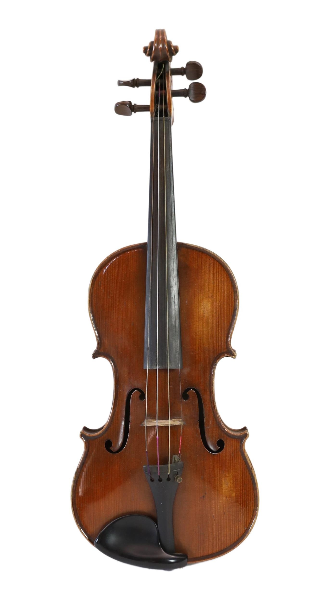 A violin, labelled Leandro Bisiach della Scuola Cremonese fece in Milano 1898, Piazzo del Duomo, the two piece back, sides and neck with medium curl, inlaid purfling, golden varnish, length of back 35.6 cm (14in.) cased
