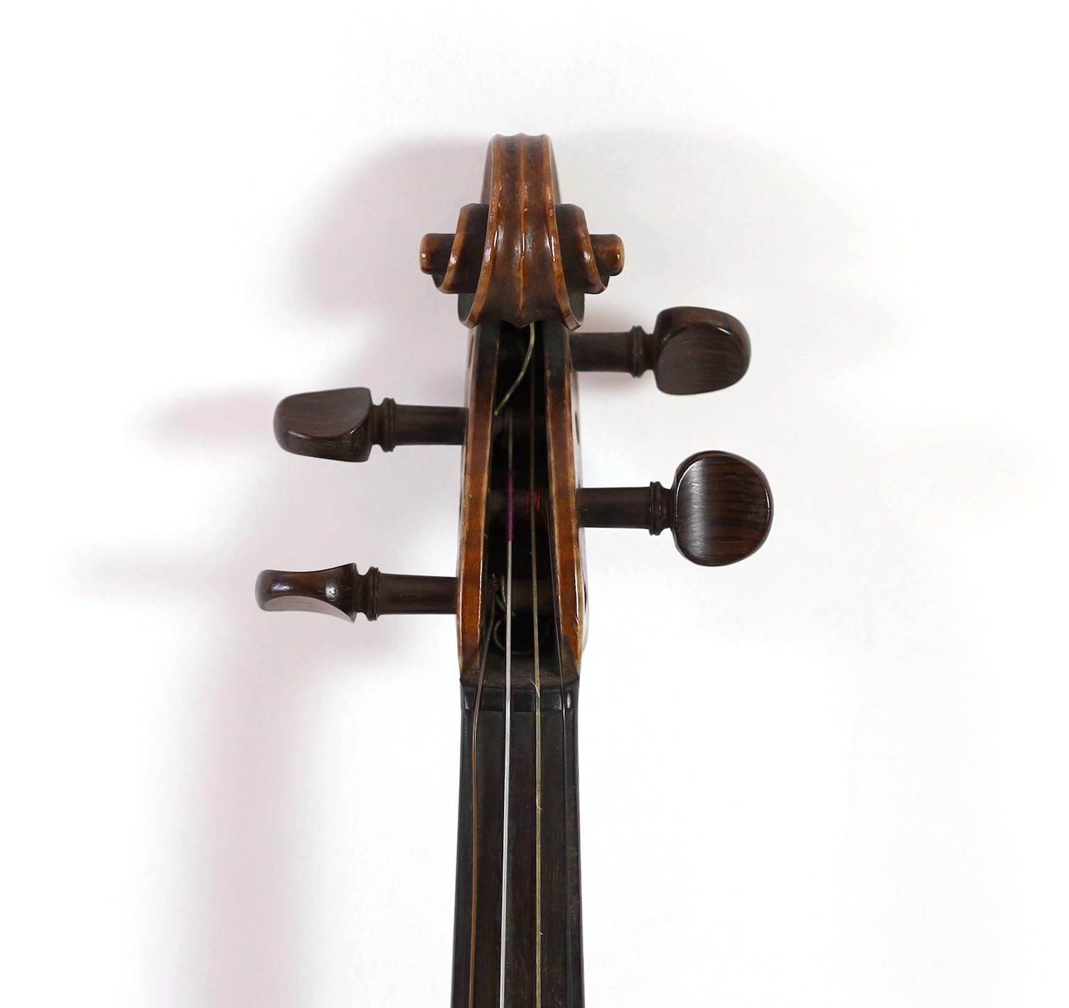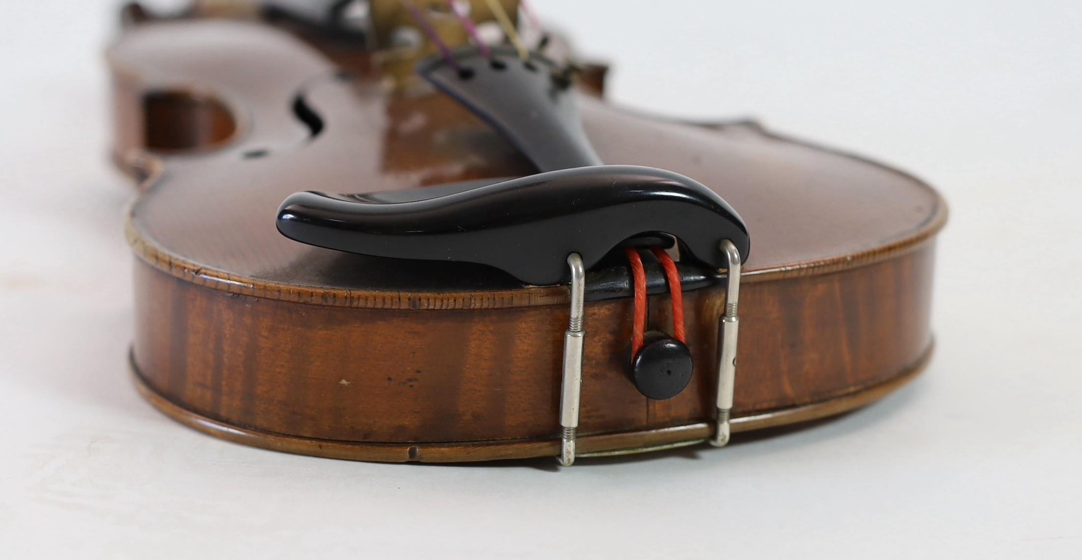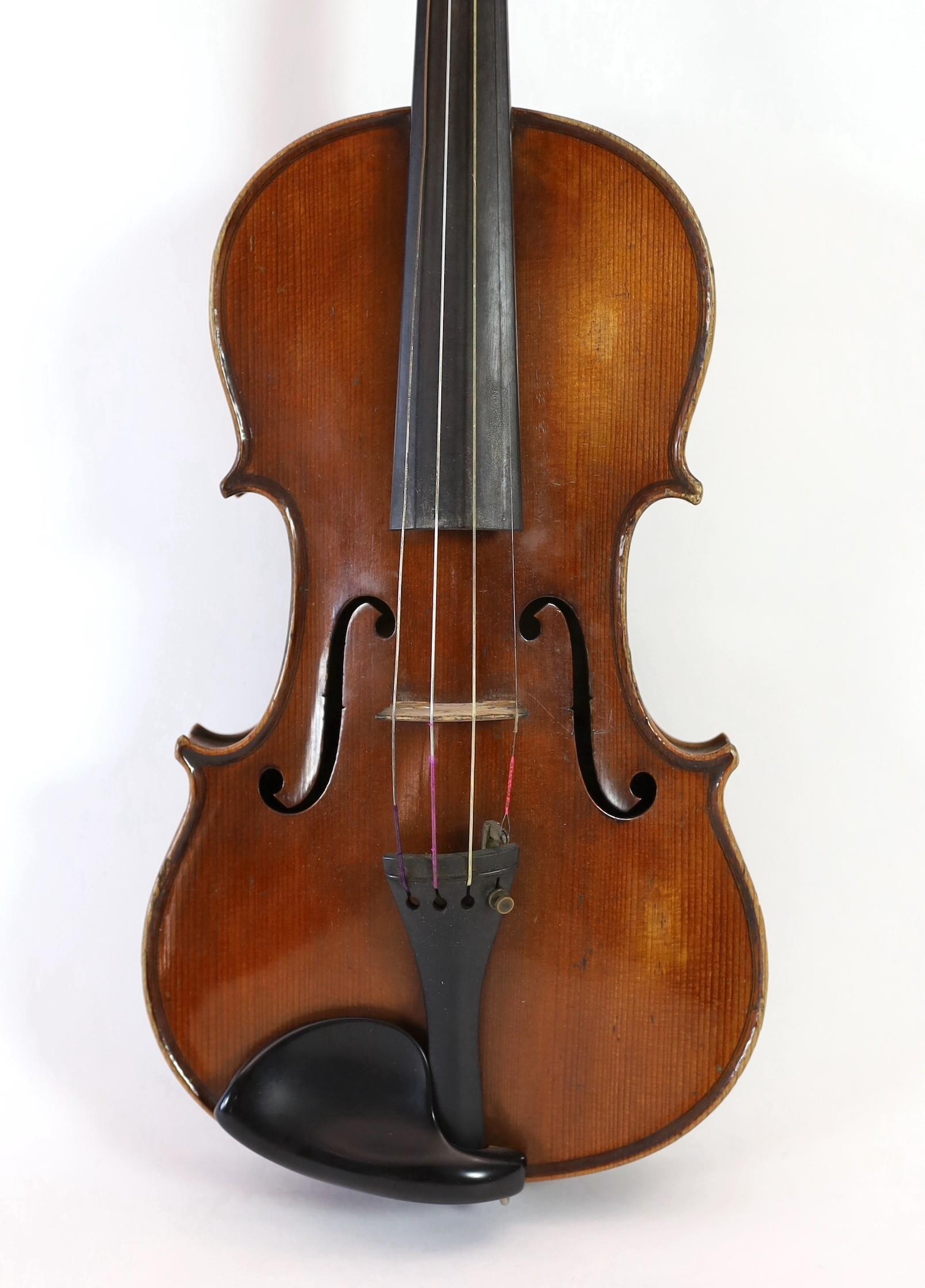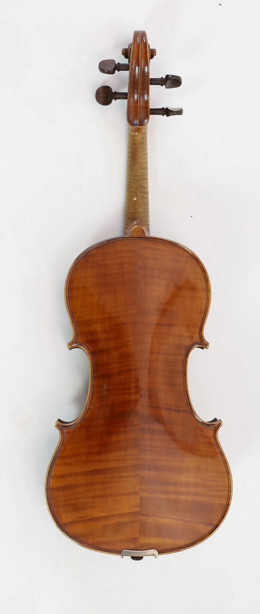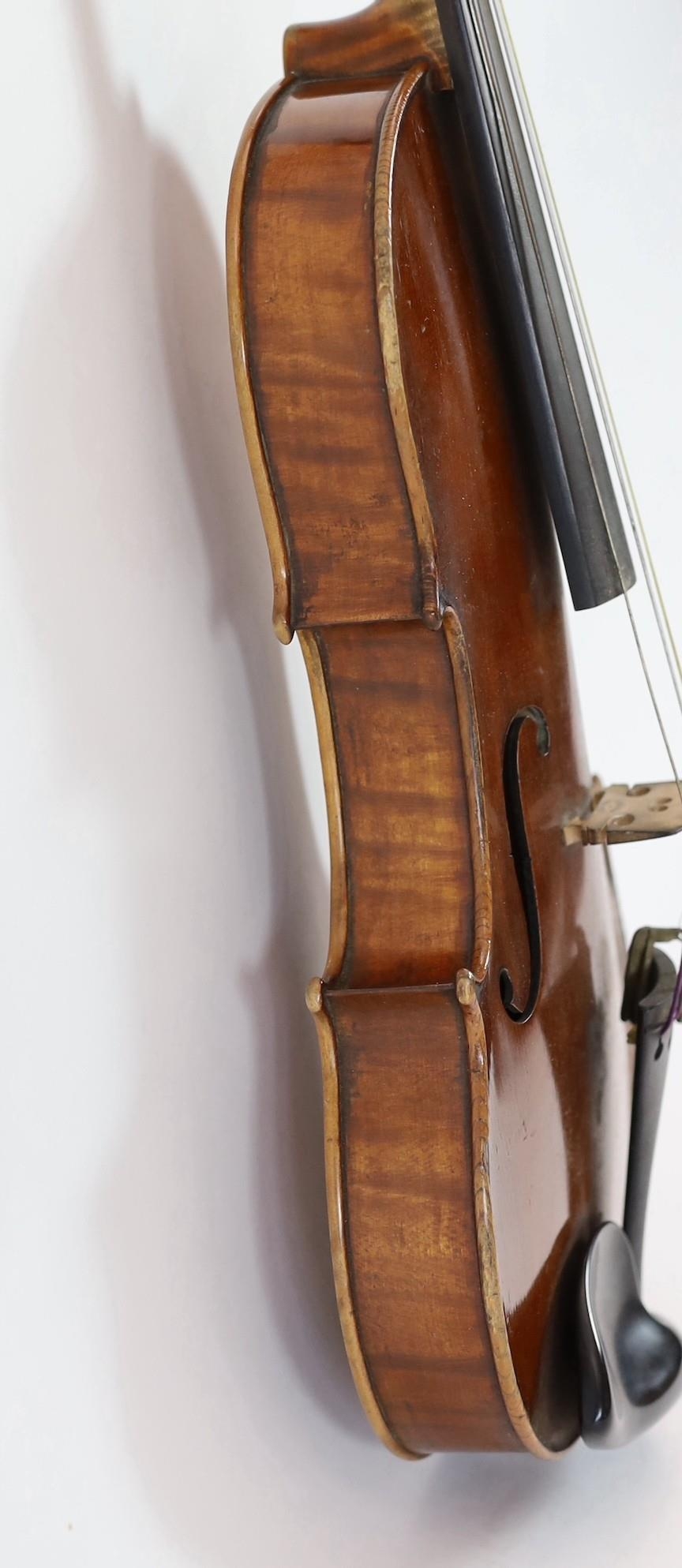 A violin, labelled Leandro Bisiach della Scuola Cremonese fece in Milano 1898, Piazzo del Duomo, the two piece back, sides and neck with medium curl, inlaid purfling, golden varnish, length of back 35.6 cm (14in.) cased