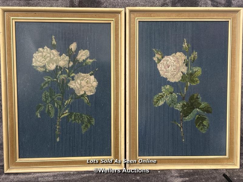 Pair of framed tapestry pictures of flowers, 32x45cm including frames / AN51
