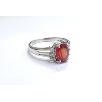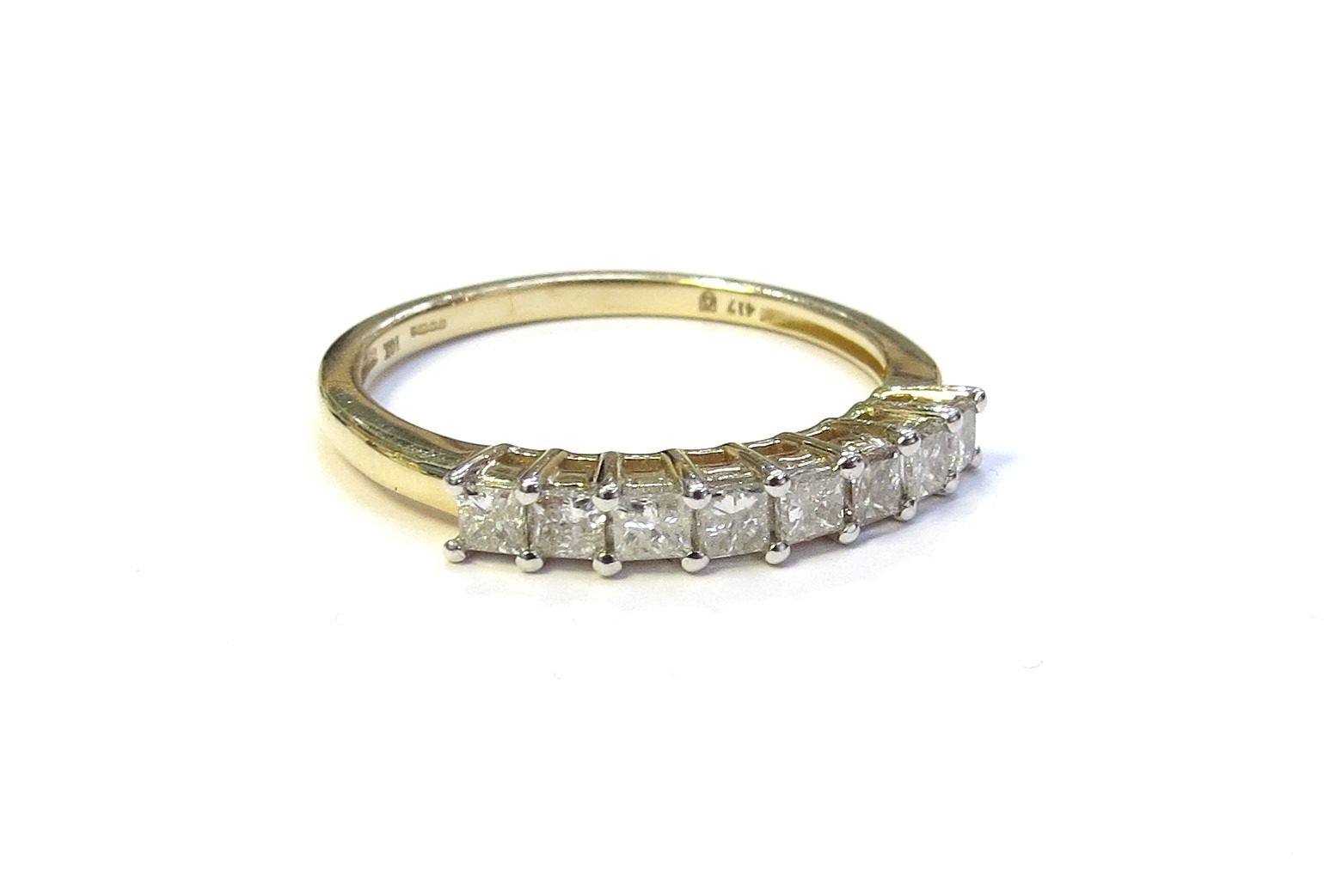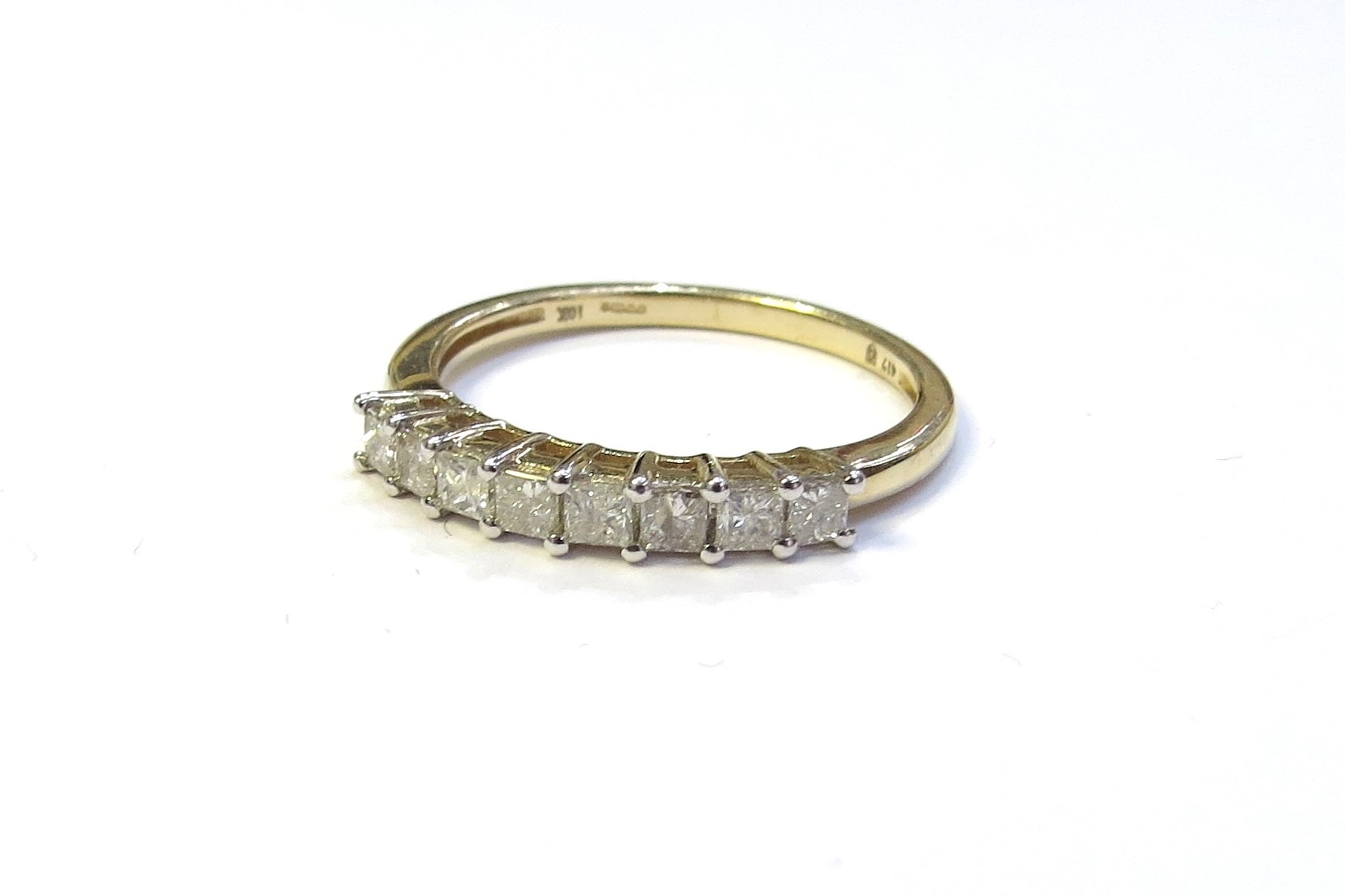 A 9ct gold diamond half hoop ring. Size O, 1.9g