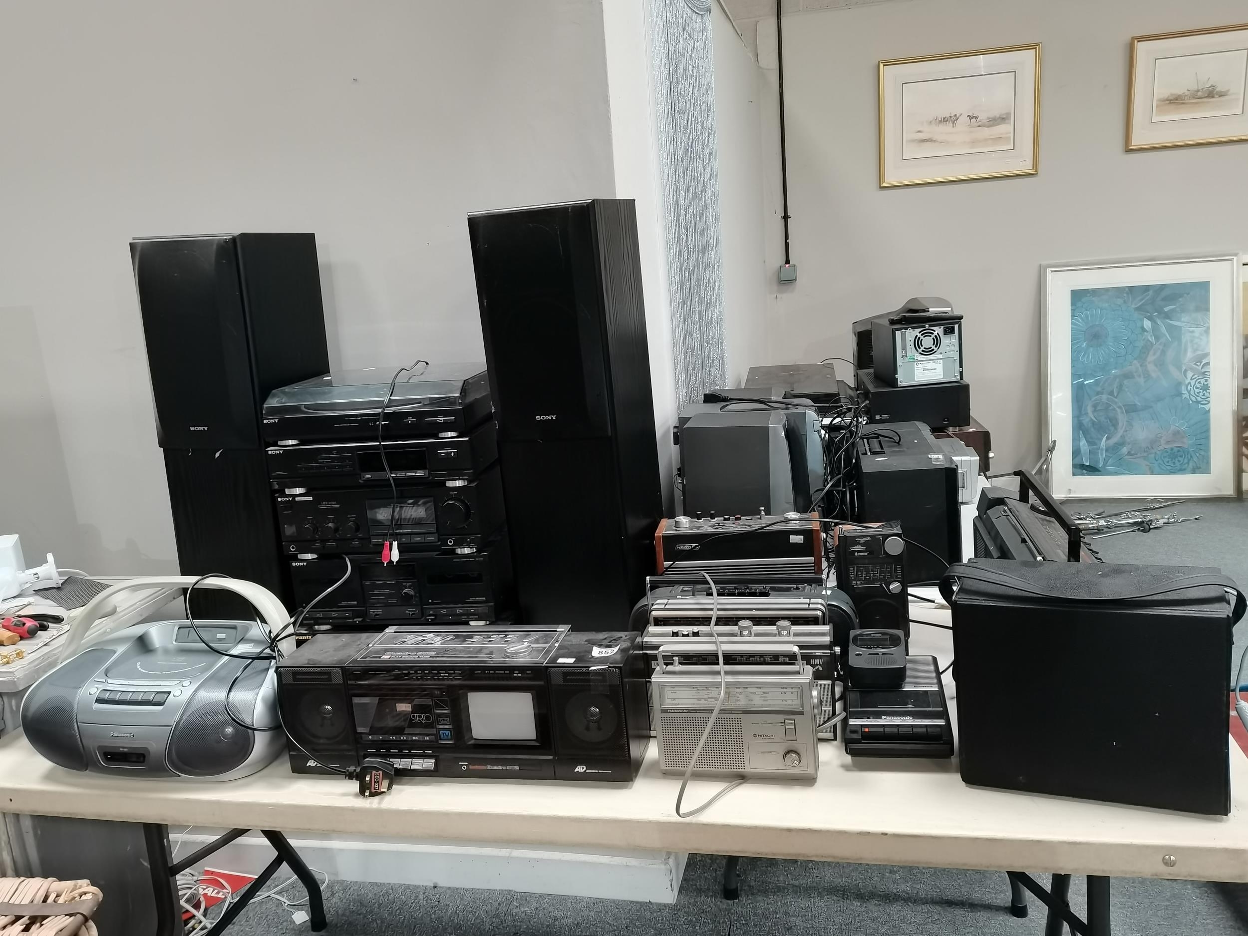 Collection of Hi-Fi systems and radios including Sony, Panasonic, Hacker etc
