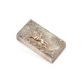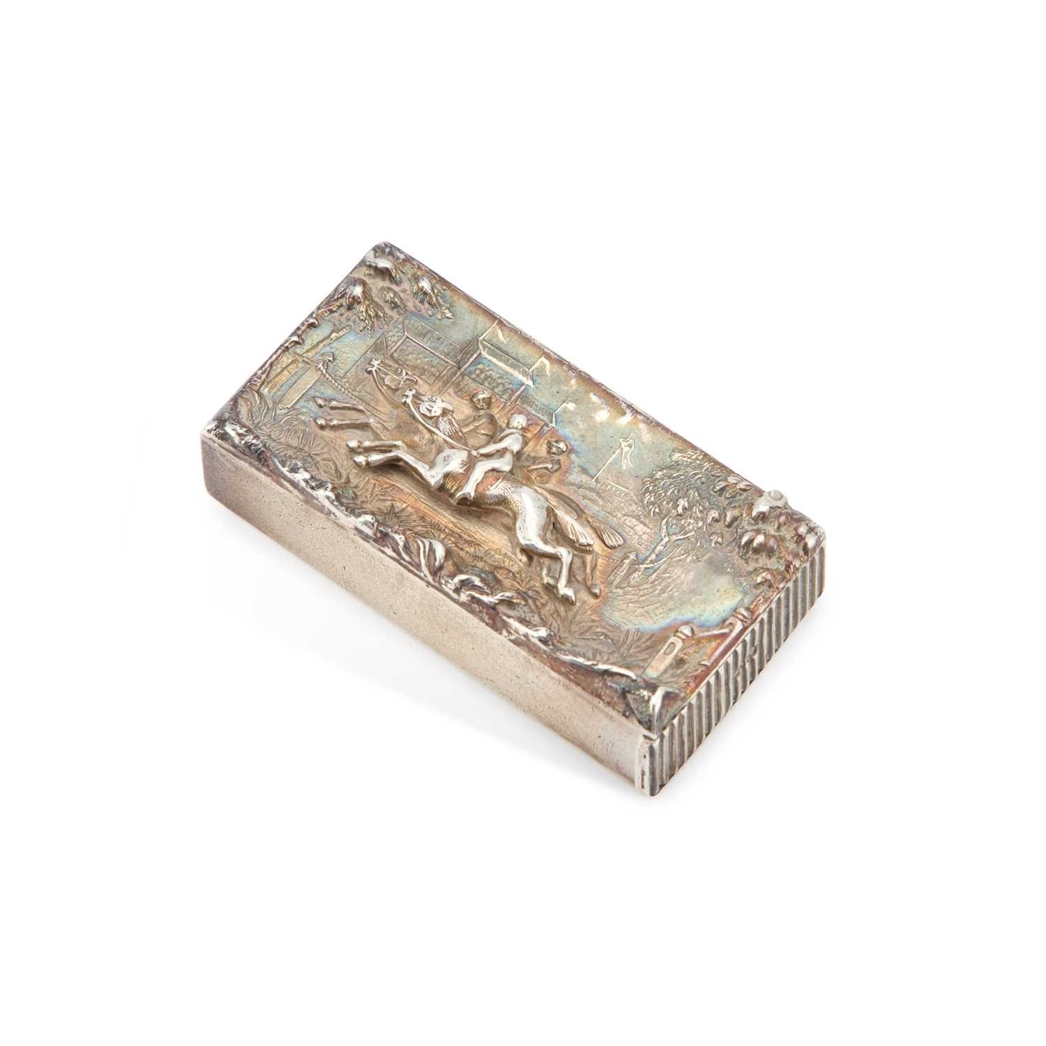 maker's mark rubbed, Chester 1895, rectangular, chased in high relief with three horses at the finishing line. 5.5cm long, 1 troy ounce