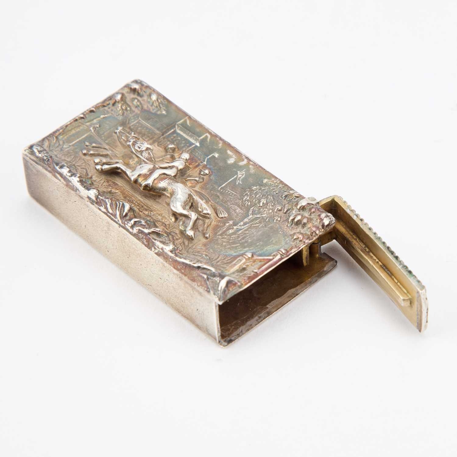 A VICTORIAN SILVER 'HORSE RACING' VESTA CASE