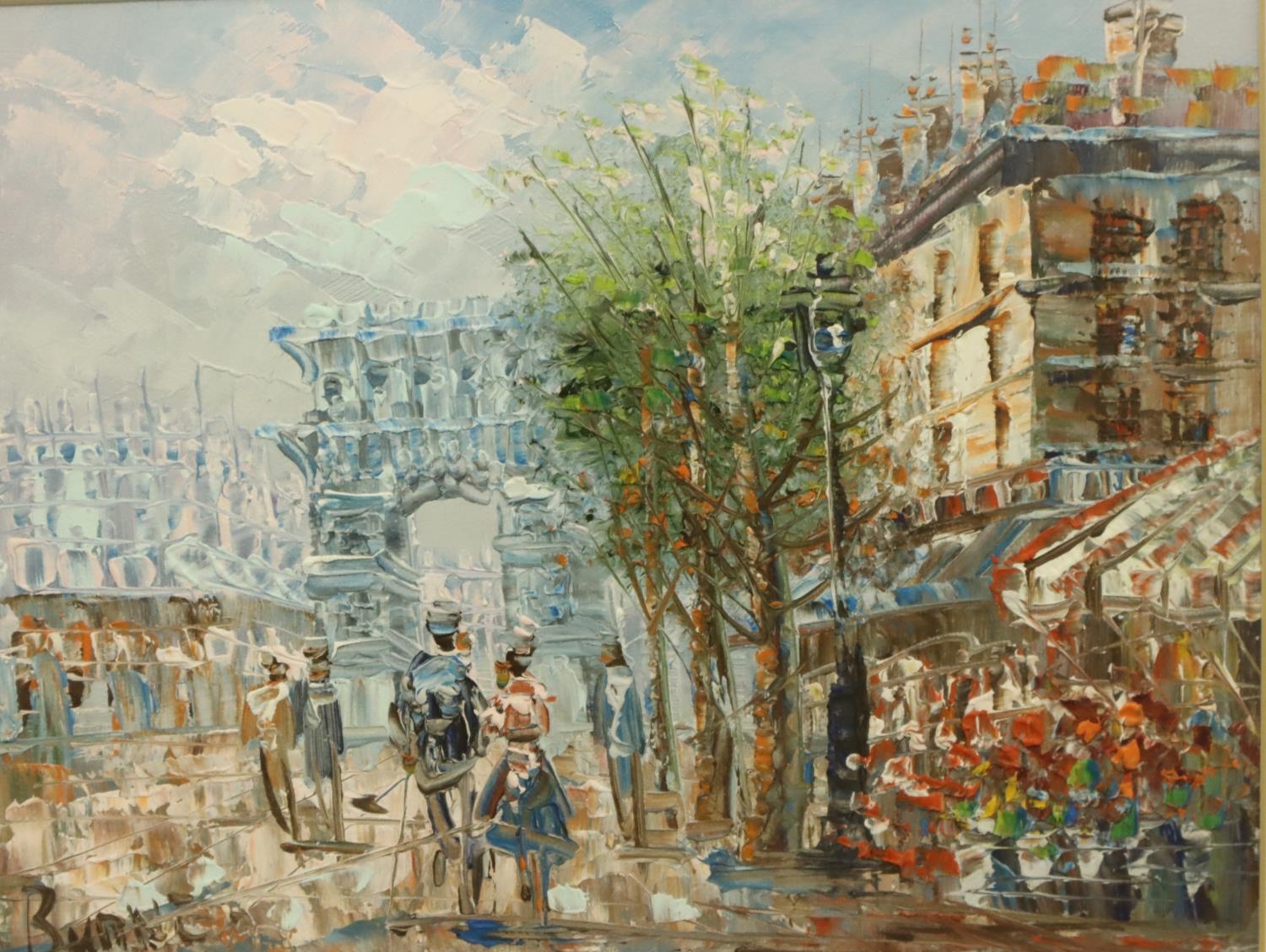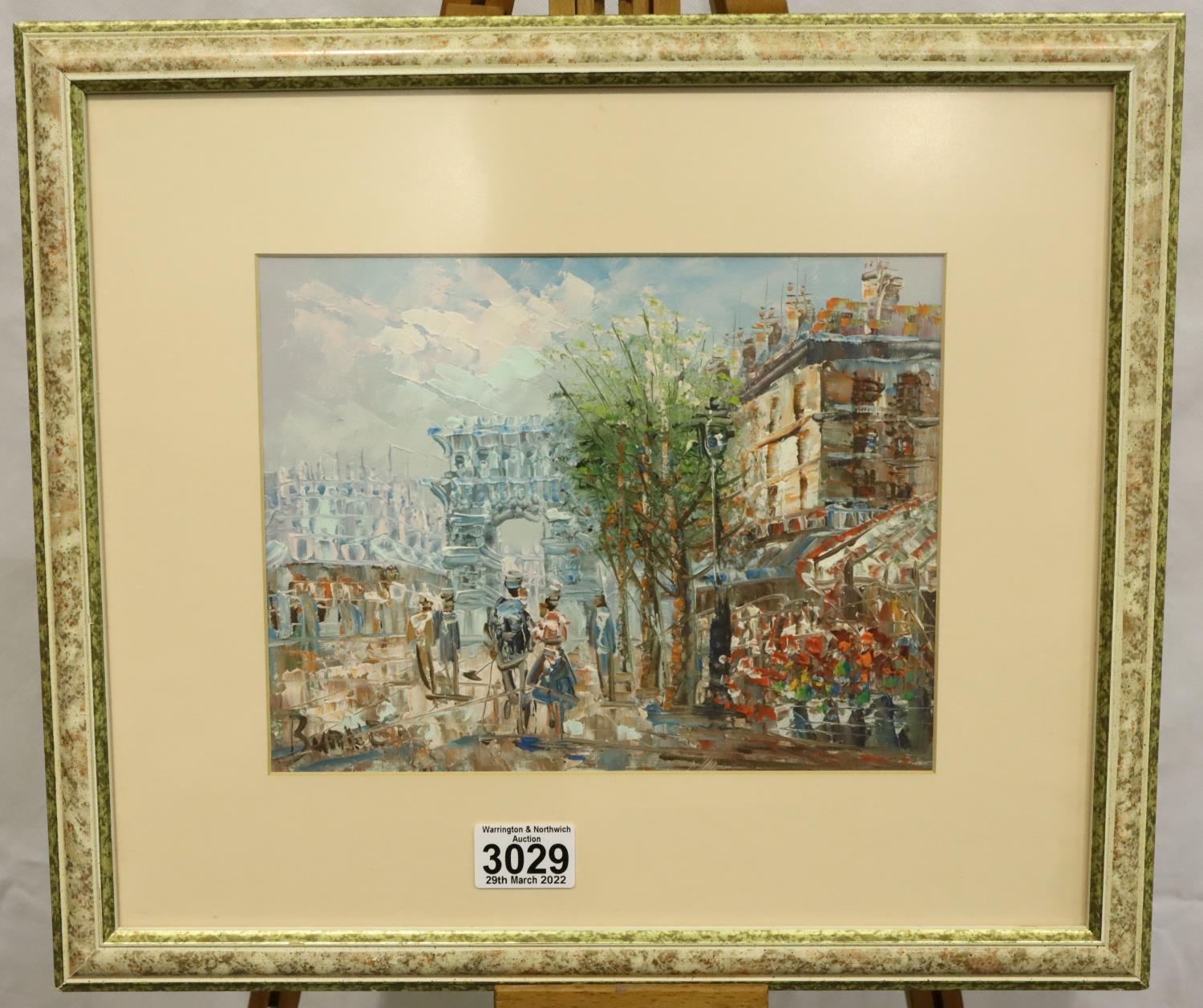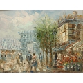 Caroline Burnett (1877-1951); oil on board, Parisian street scene, 19 x 25 cm. Not available for in-house P&P, contact Paul O'Hea at Mailboxes on 01925 659133