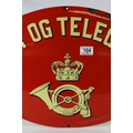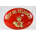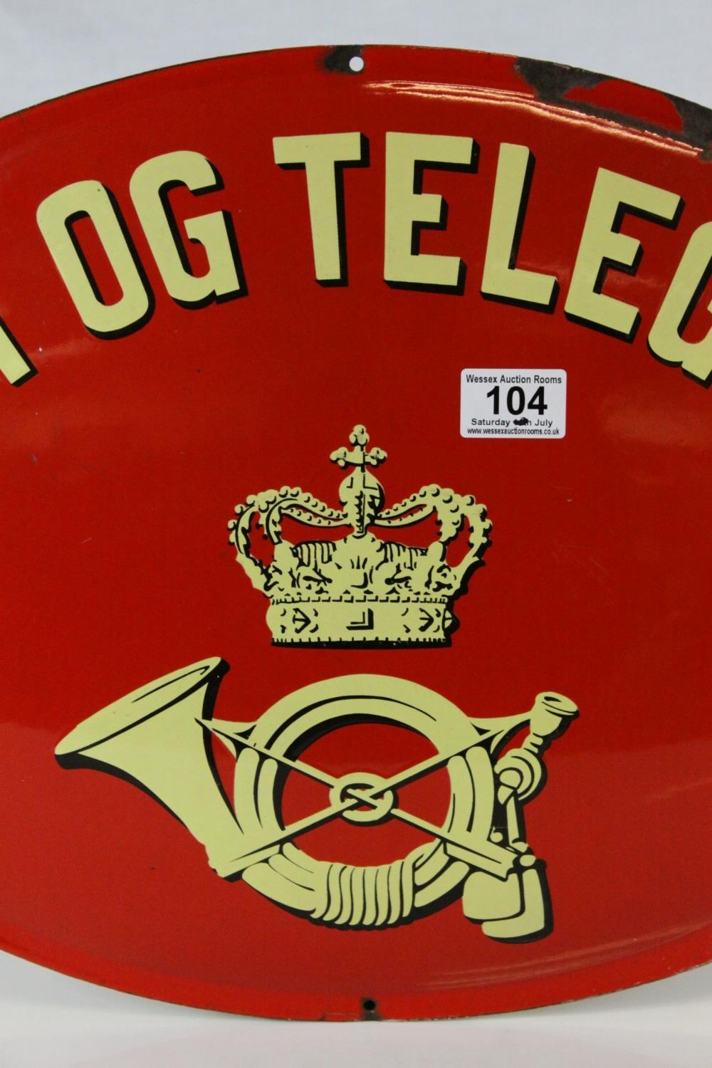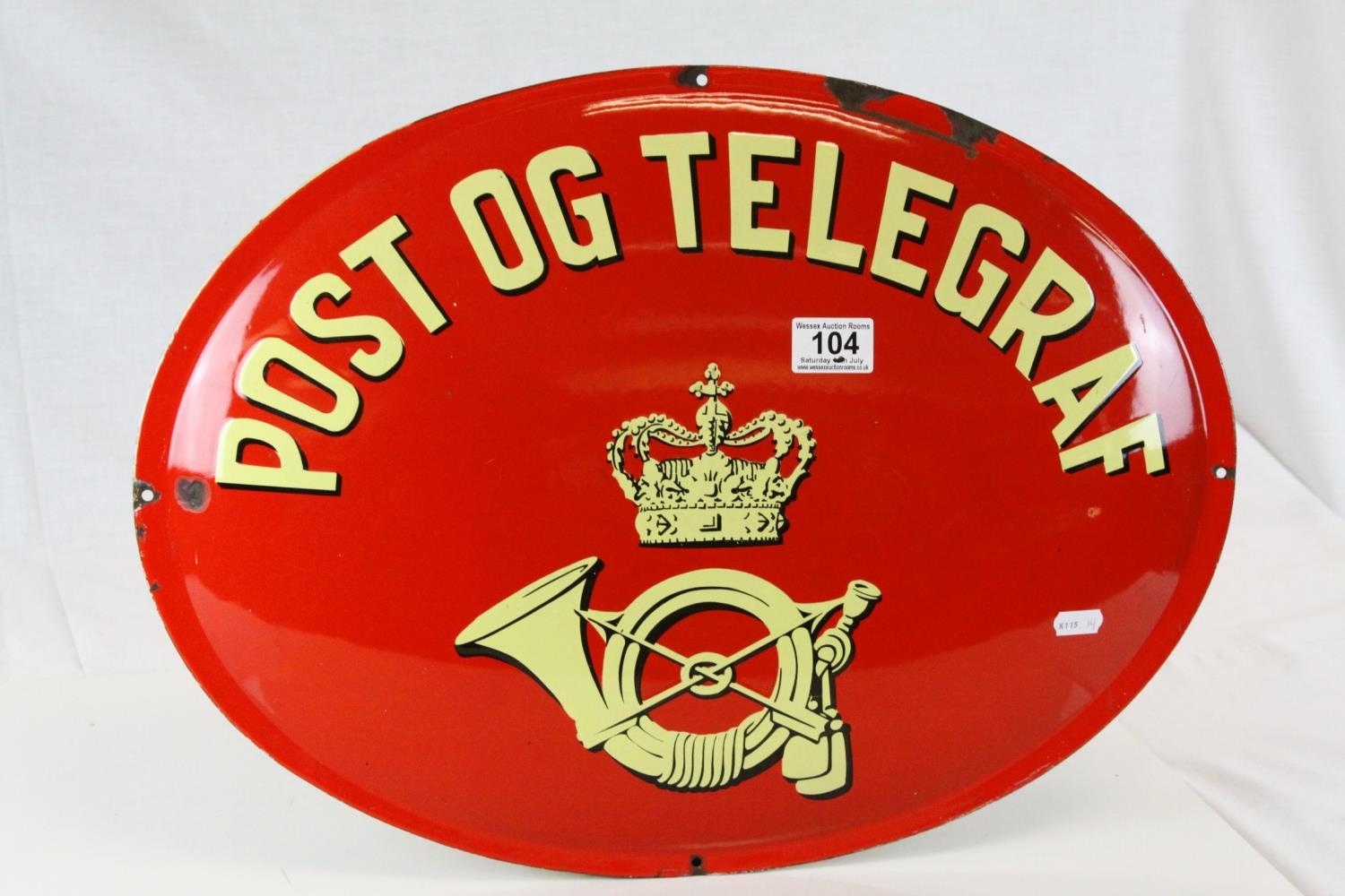 Vintage Danish Oval Enamel Sign ' Post og Telegraf ', 53cms long