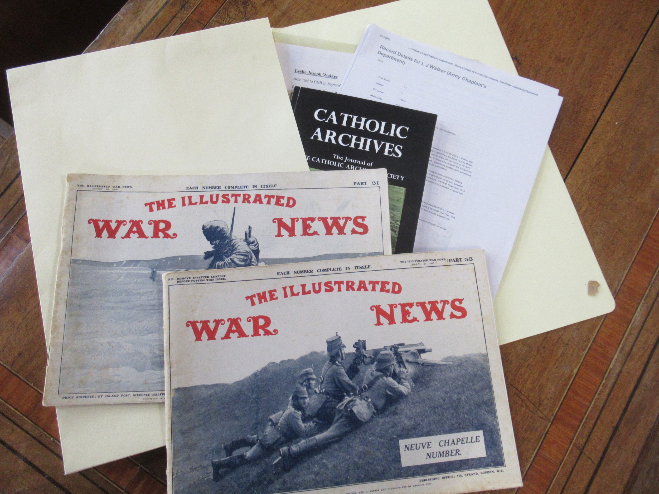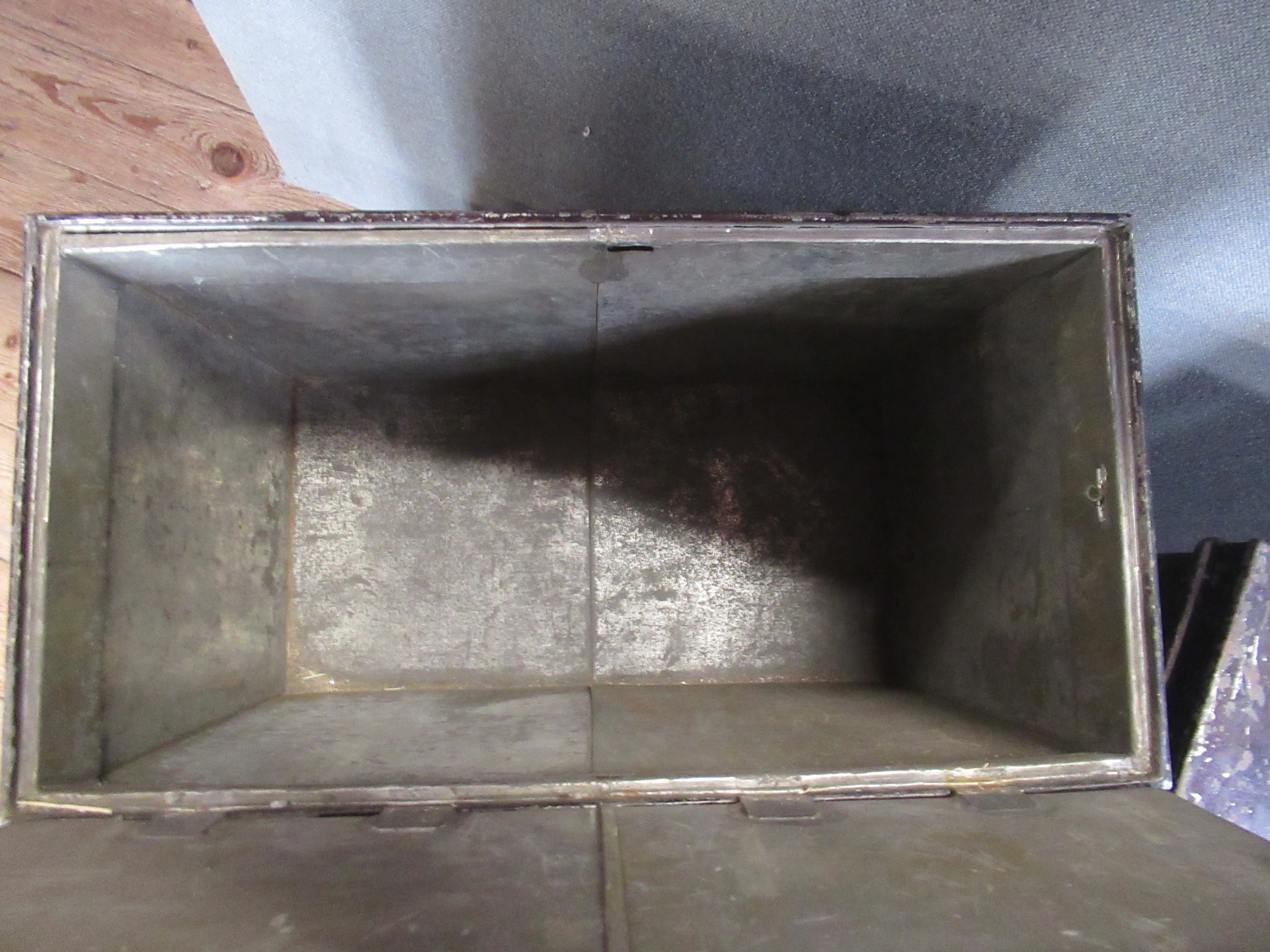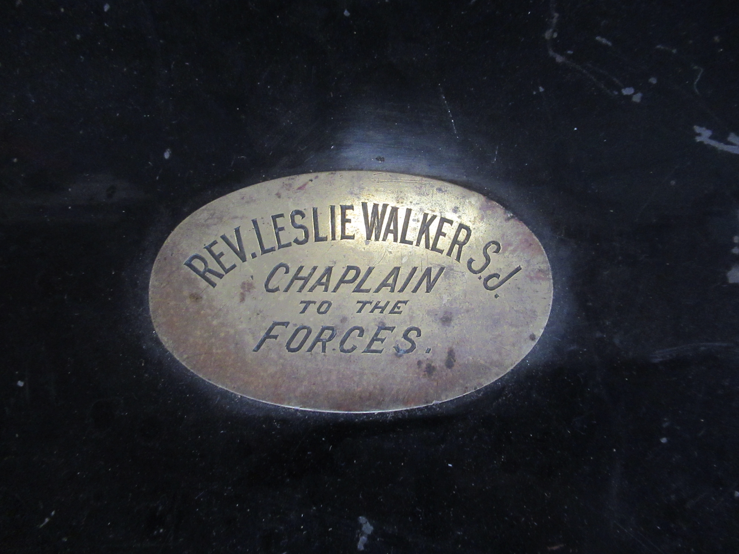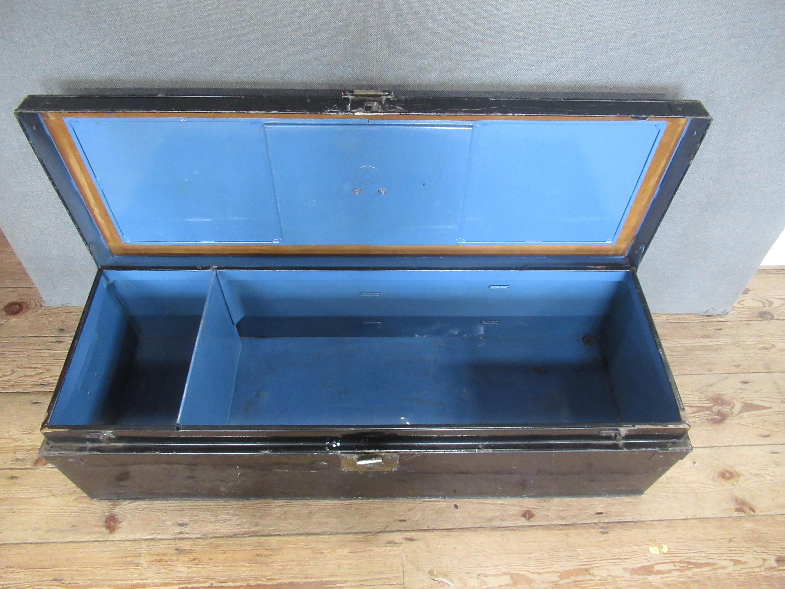 Three vintage tin trunks, one with paperwork for Rev. Leslie Walker