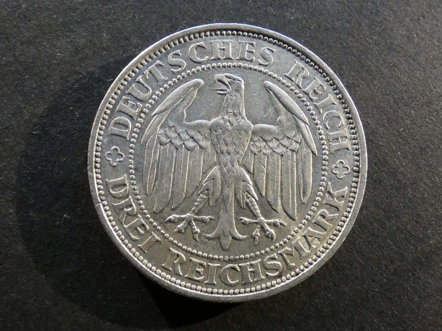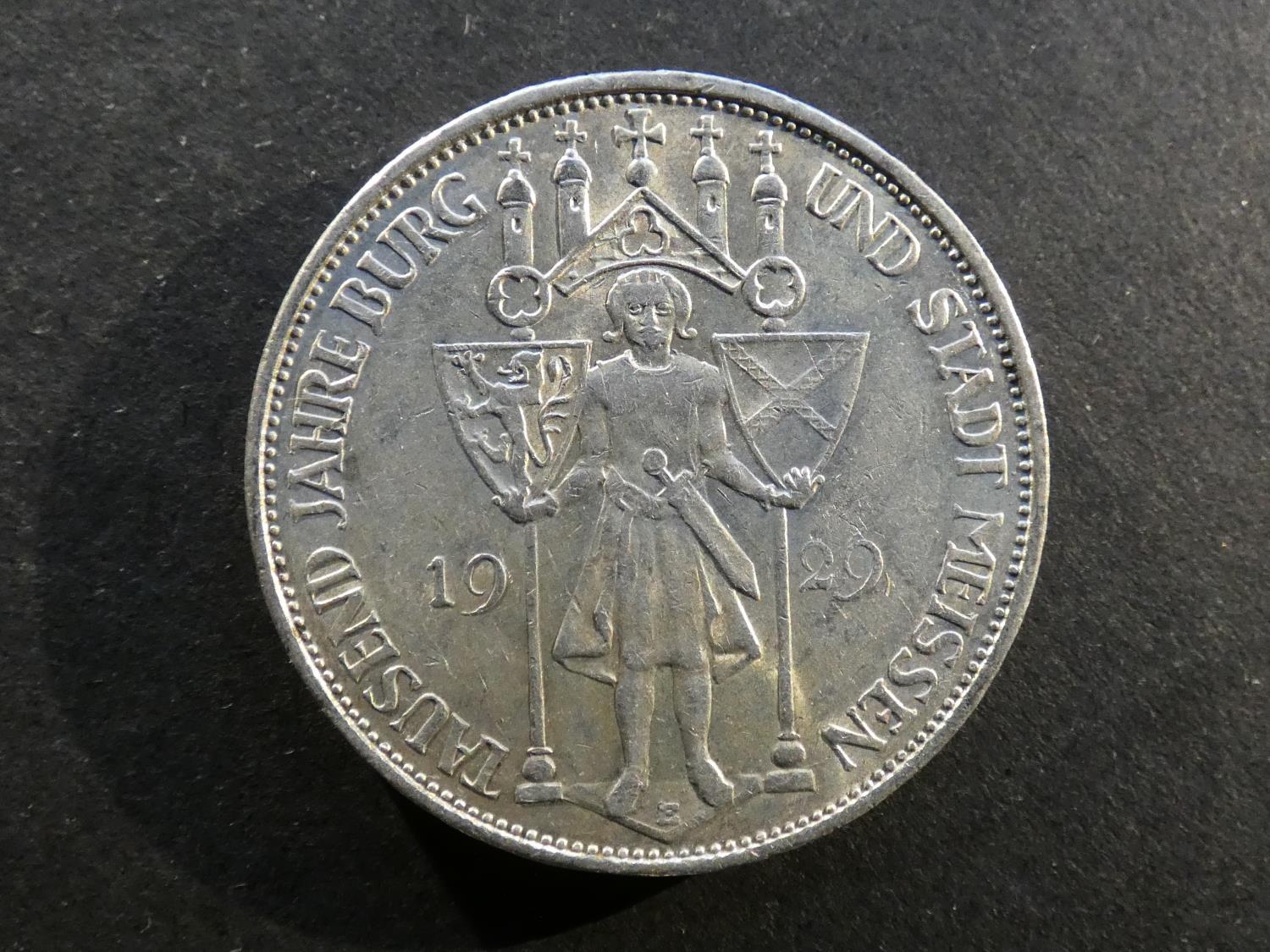 GERMANY. Weimar Republic (1919-1933). 3 Reichsmark, 1929E, Muldenhütten mint, Millennium of Meissen, KM65, GVF/VF, contact marks.