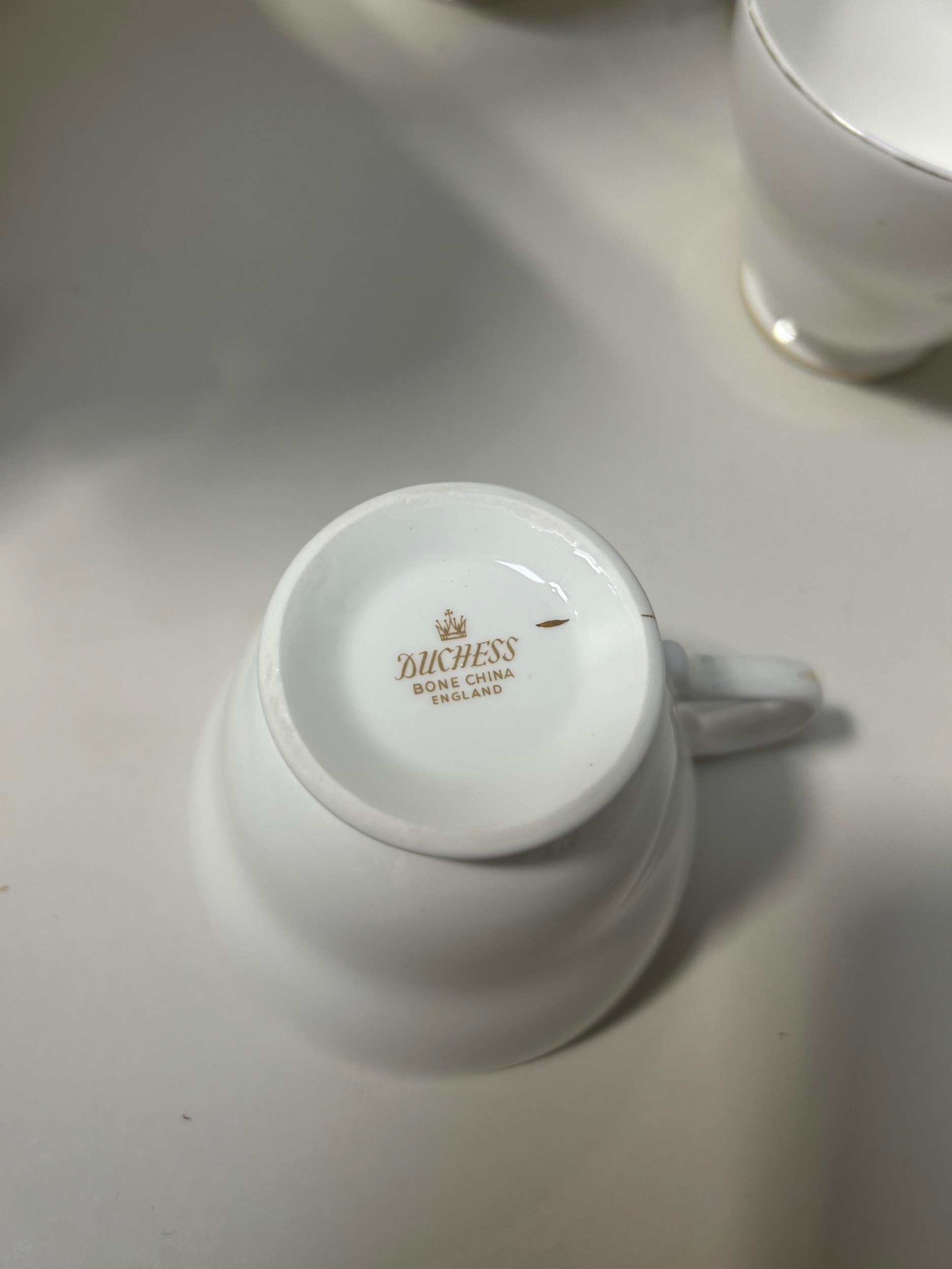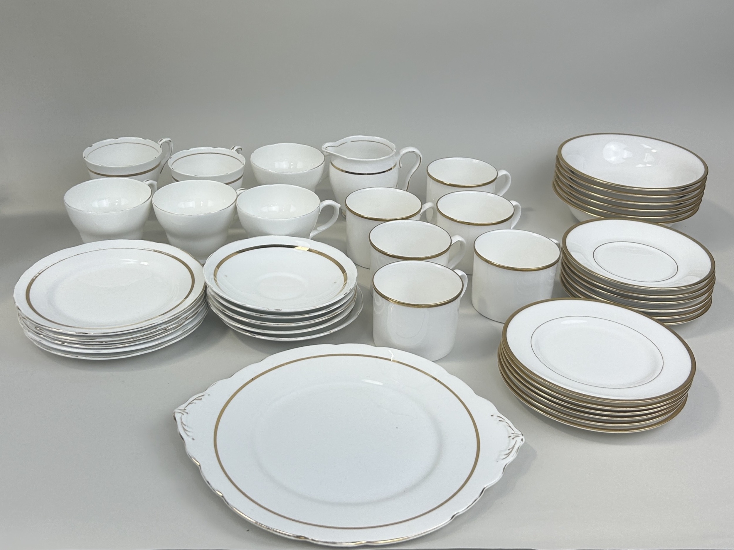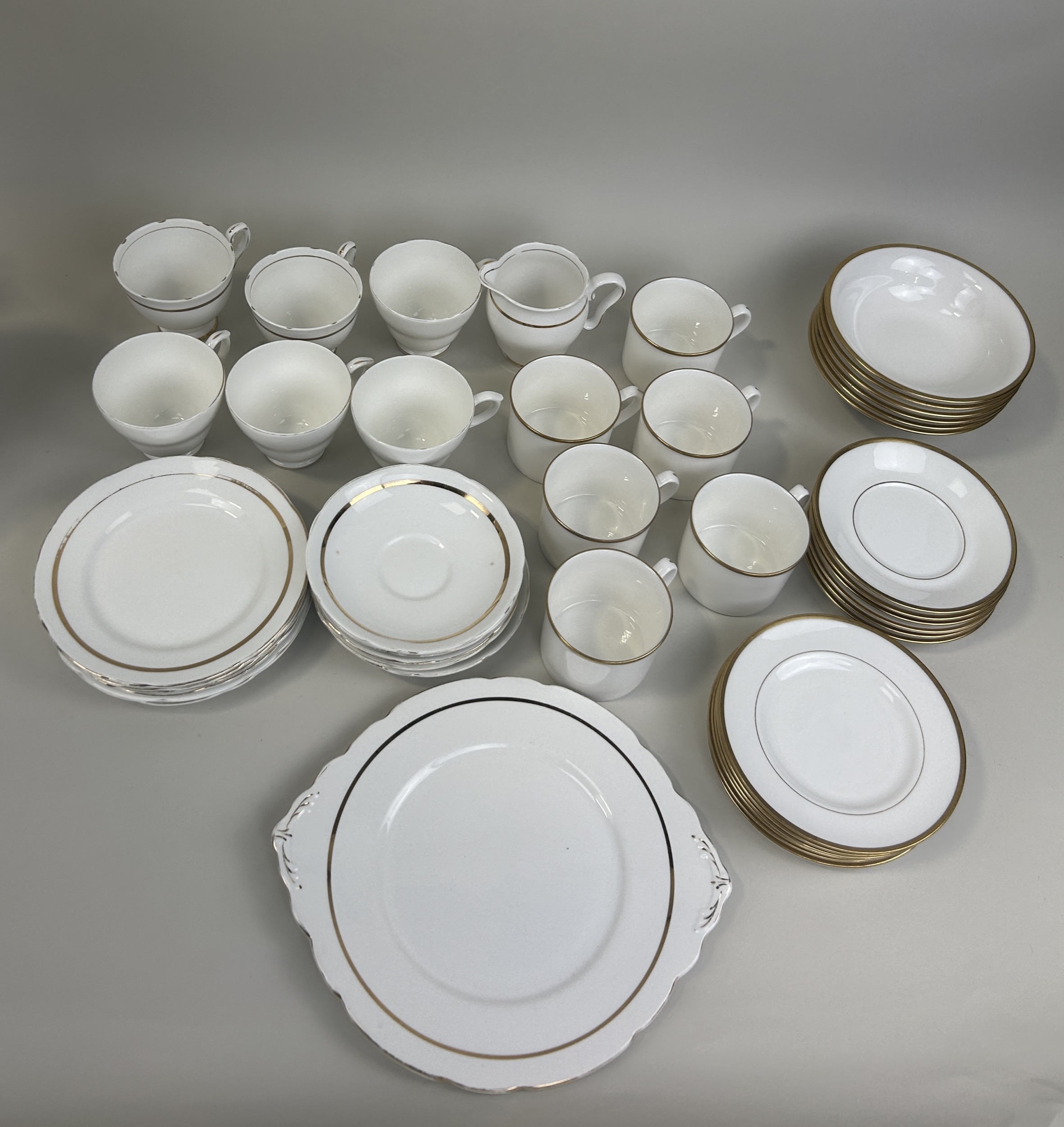 A GROUP OF MIXED WHITE AND GOLD-TONE CHINA TO INCLUDE ROYAL STAFFORD, CAPRI AND DUCHESS