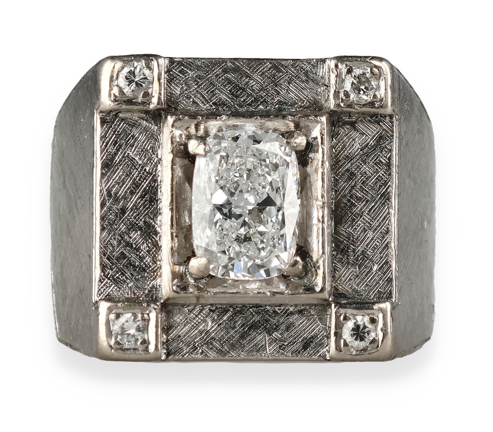 AN 18CT WHITE GOLD AND DIAMOND RING, CENTRE STONE 1.5CT