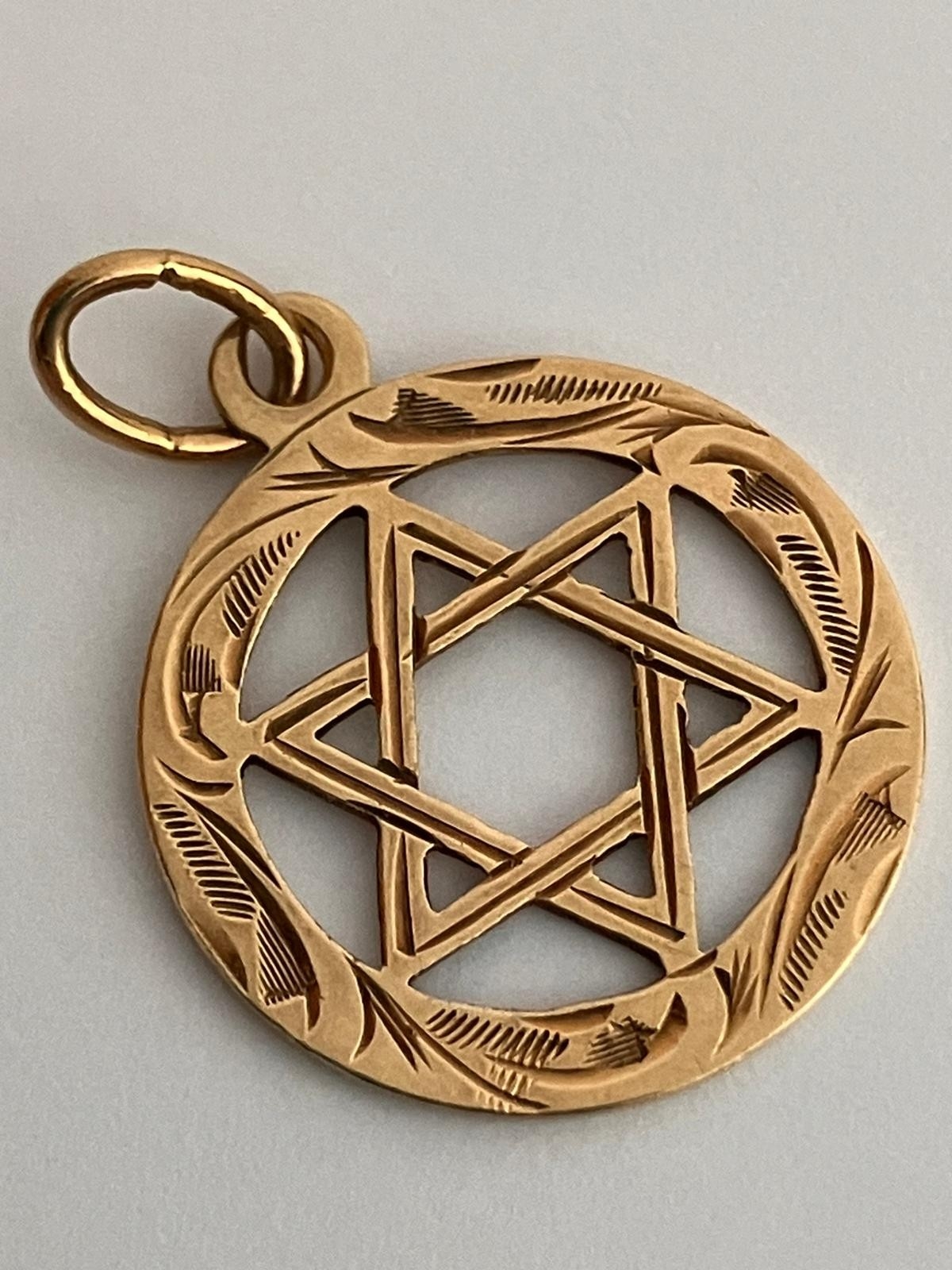 Classic vintage 9 CARAT GOLD ‘STAR OF DAVID’ PENDANT. Full UK hallmark. 1.02 grams. 1.7 cm Diameter.