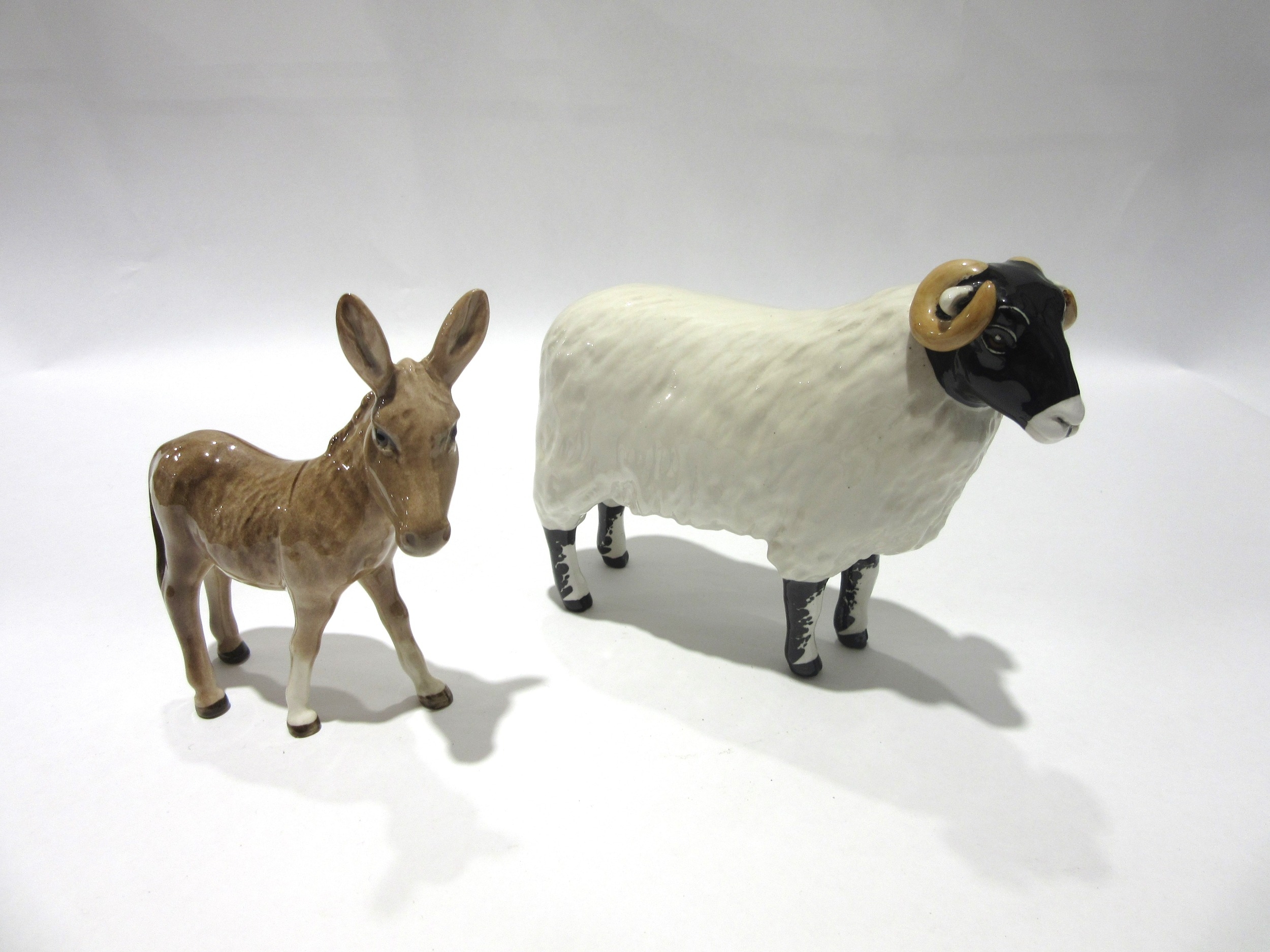 A Beswick Black-faced Ram in gloss together with a Beswick Donkey Foal in gloss, model no. 2110