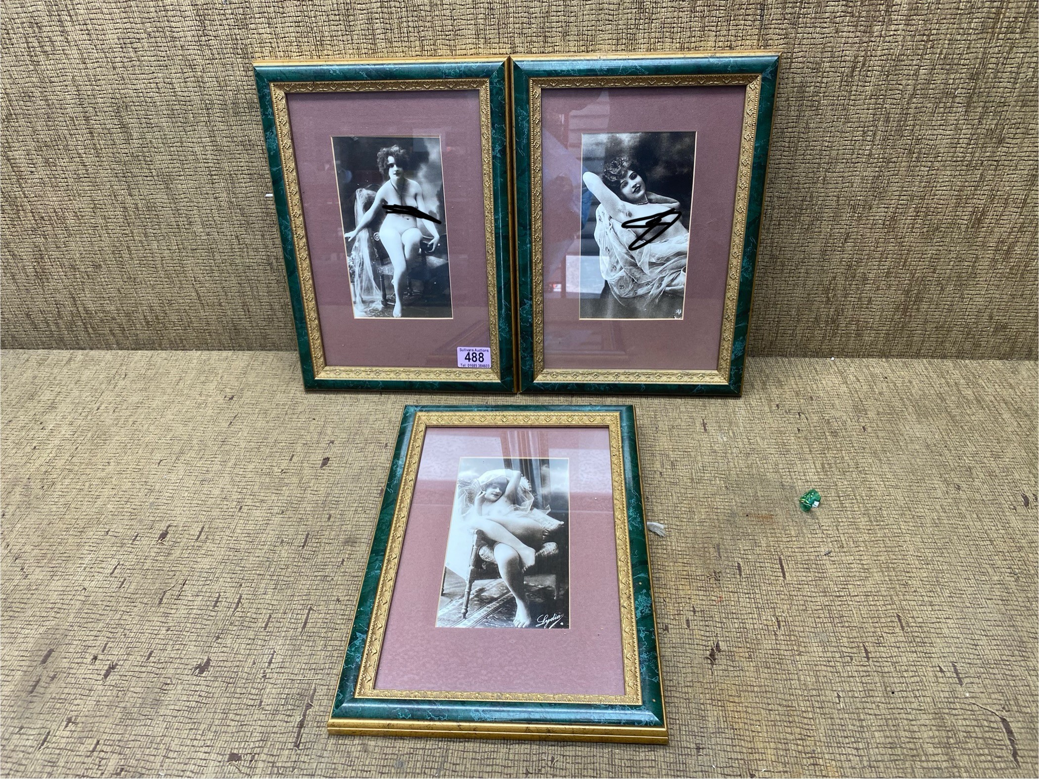 Set of 3 Framed Victorian/Edwardian Female Erotica Nude Photographs c1900 35x25cm.