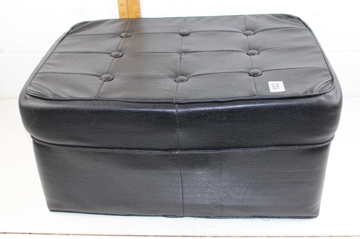 A black vinyl pouffe/ foot stool