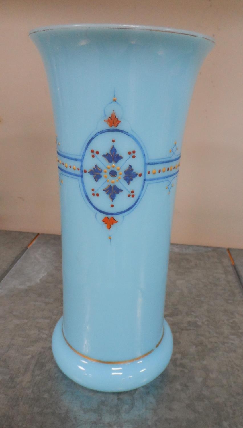 Early 20thC unmarked turquoise tubular vase, 25 cm high