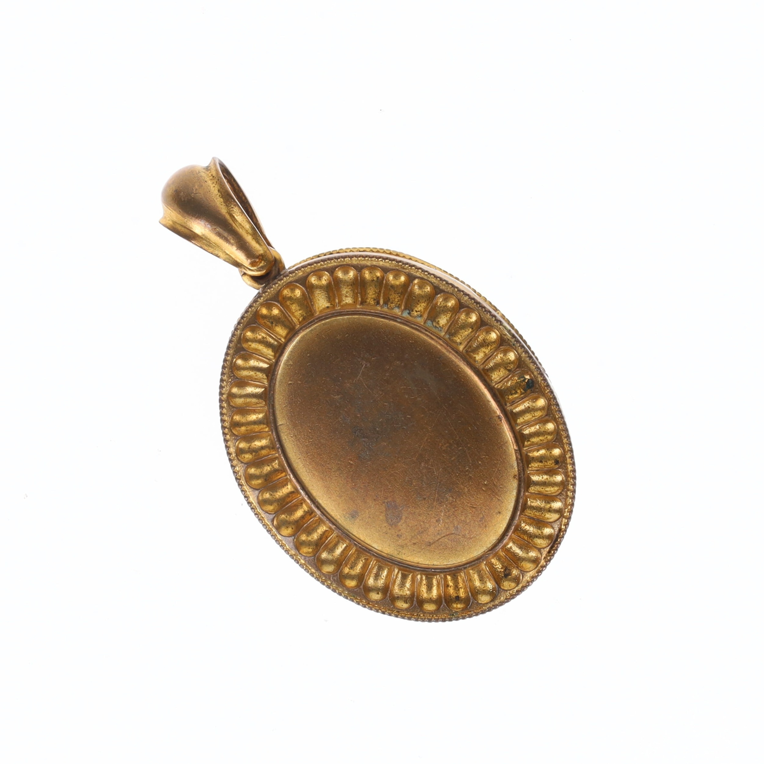 Antique Enamel Coral and Split Pearl Tombac Locket Pendant