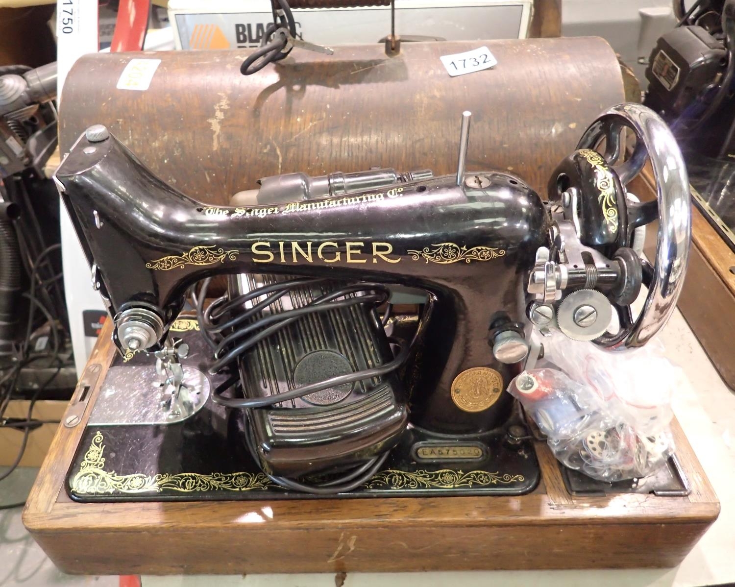 Singer EA575020 cased sewing machine, with key. Not available for in-house P&P, contact Paul O'Hea at Mailboxes on 01925 659133
