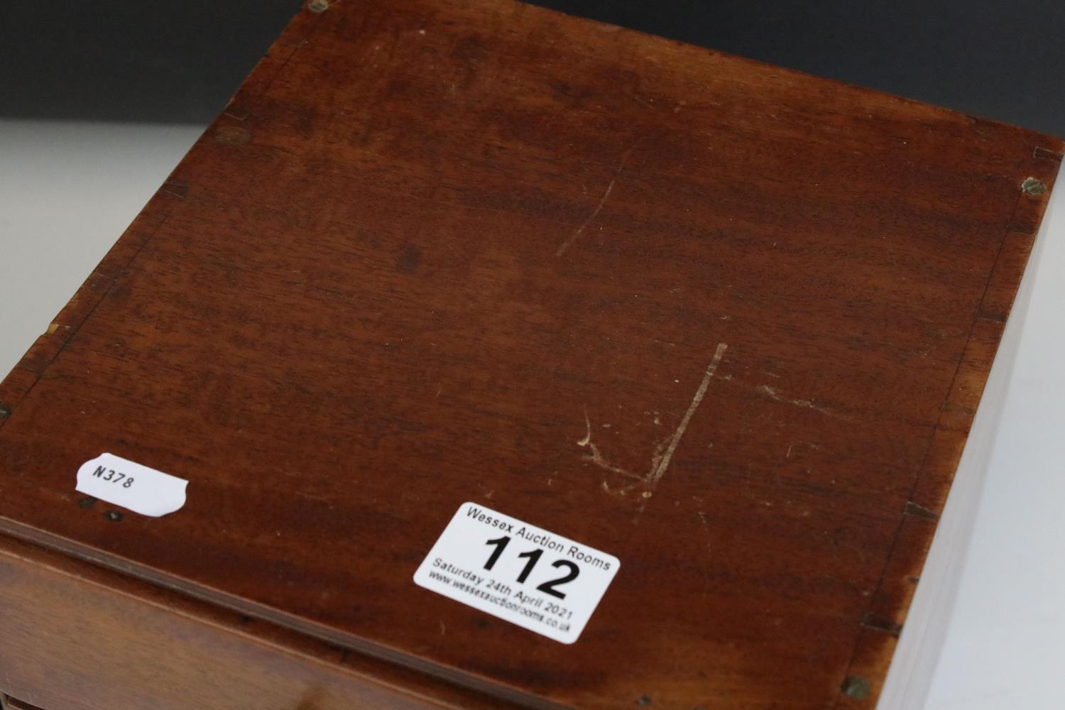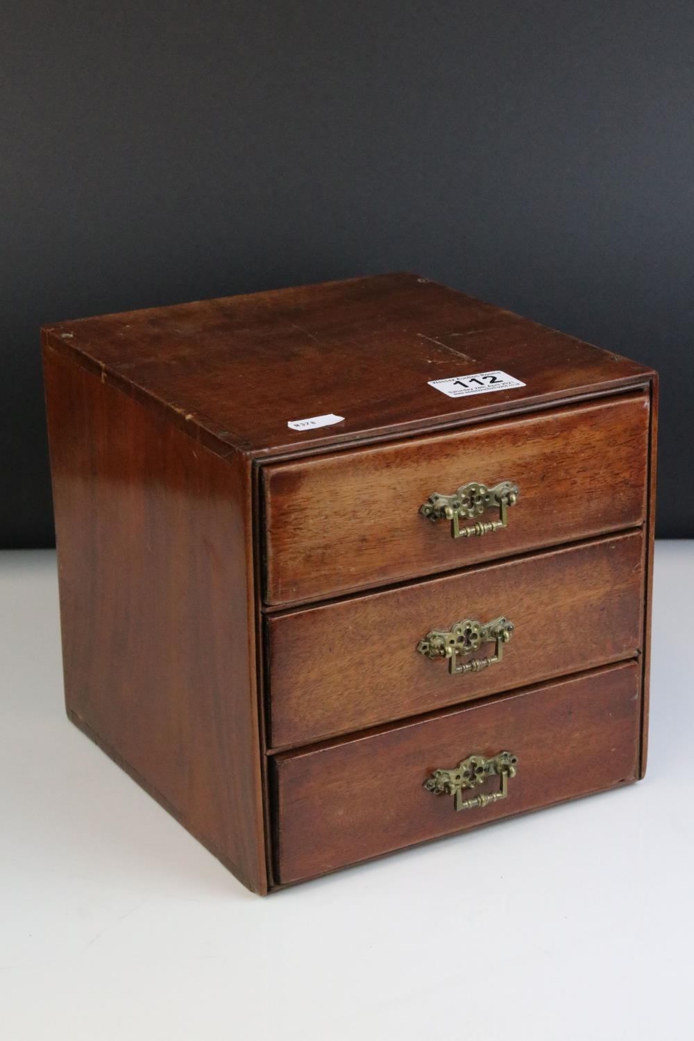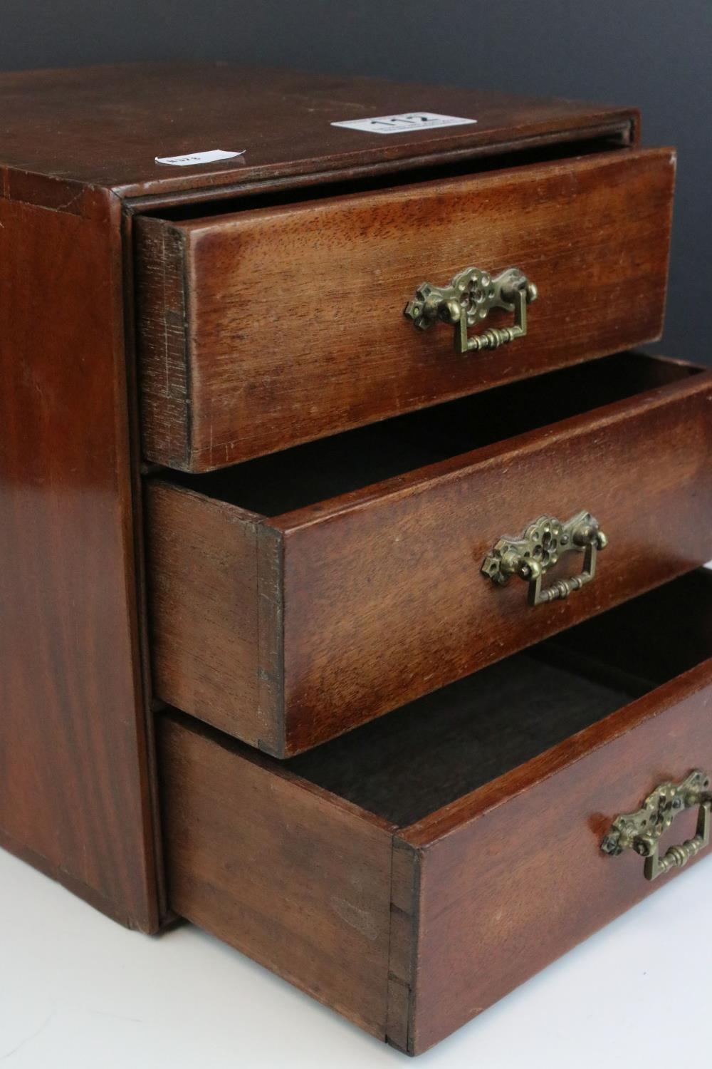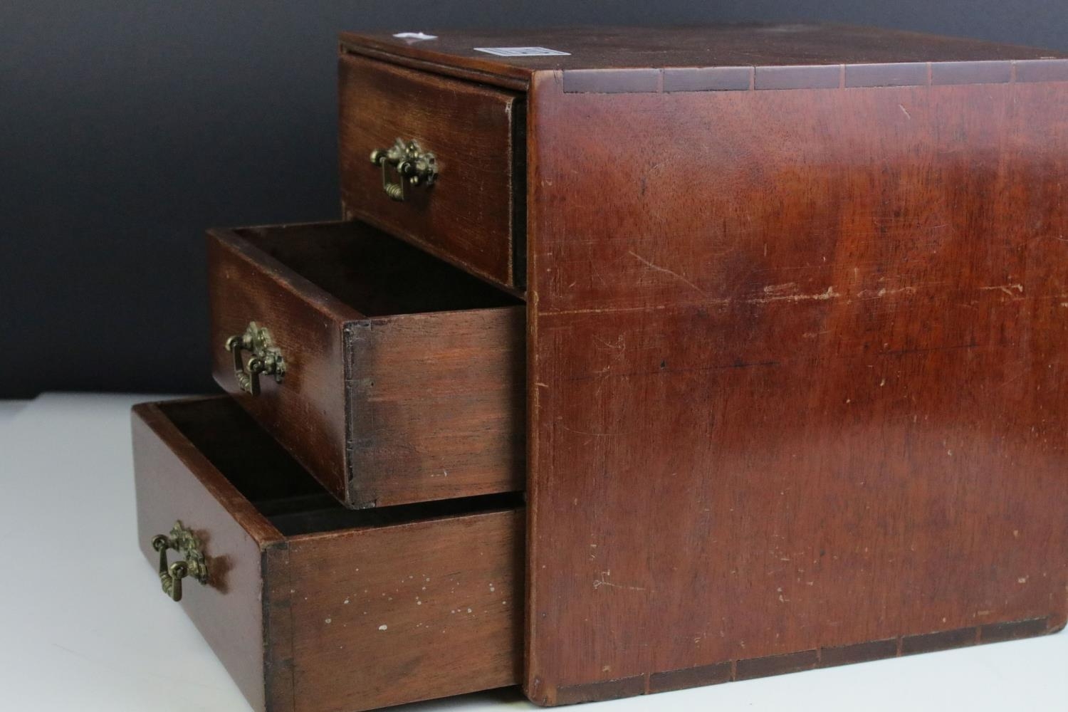 Late 19th / Early 20th century Small Mahogany Table Top Cabinet of Three Drawers, 21cms high