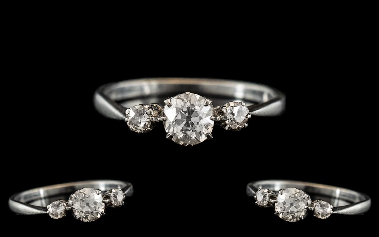 Antique Period 18ct White Gold Attractive 3 Stone Diamond Set Ring. The Diamonds of Good Colour and Sparkle. Ring Size O. Shank / Setting Good Condition In All Aspects. Please Confirm with Photo.