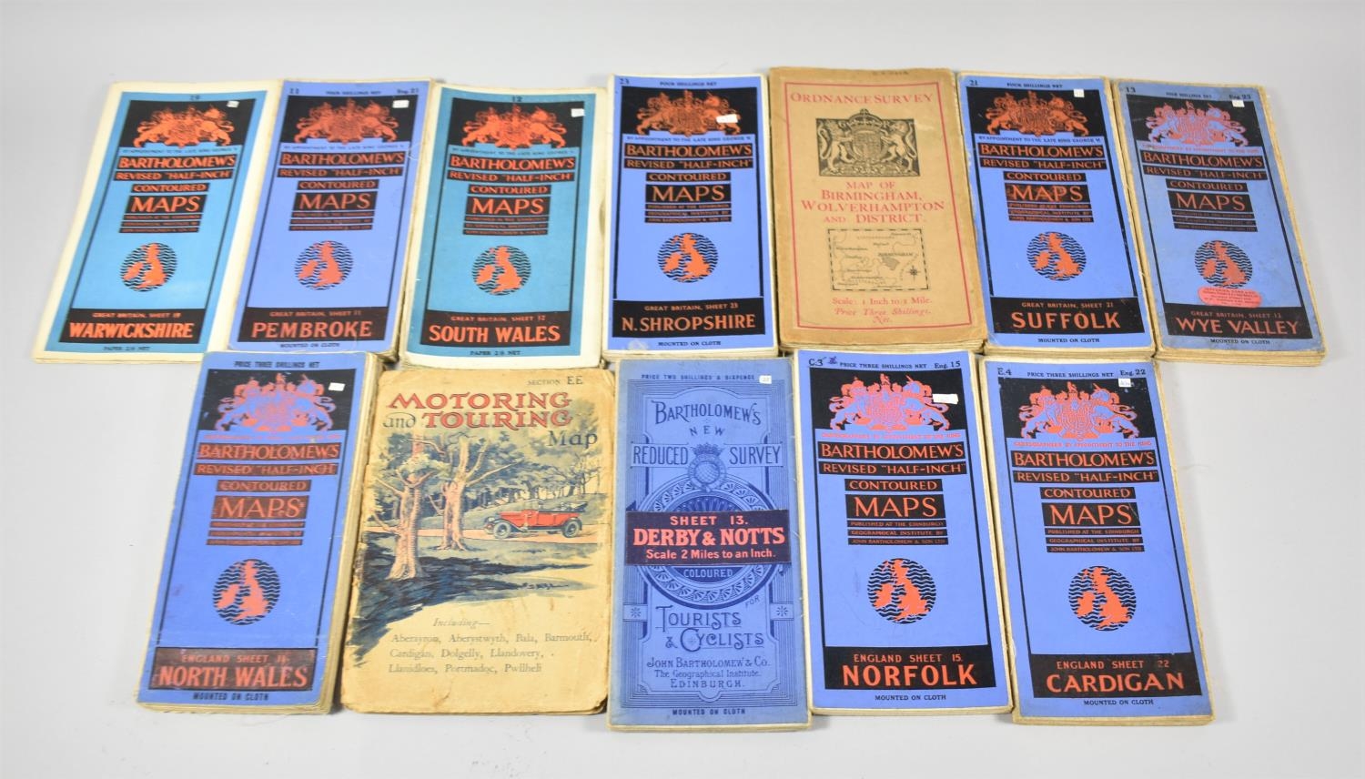 A Collection of Eleven Bartholomew's and Ordnance Survey Vintage Road Maps