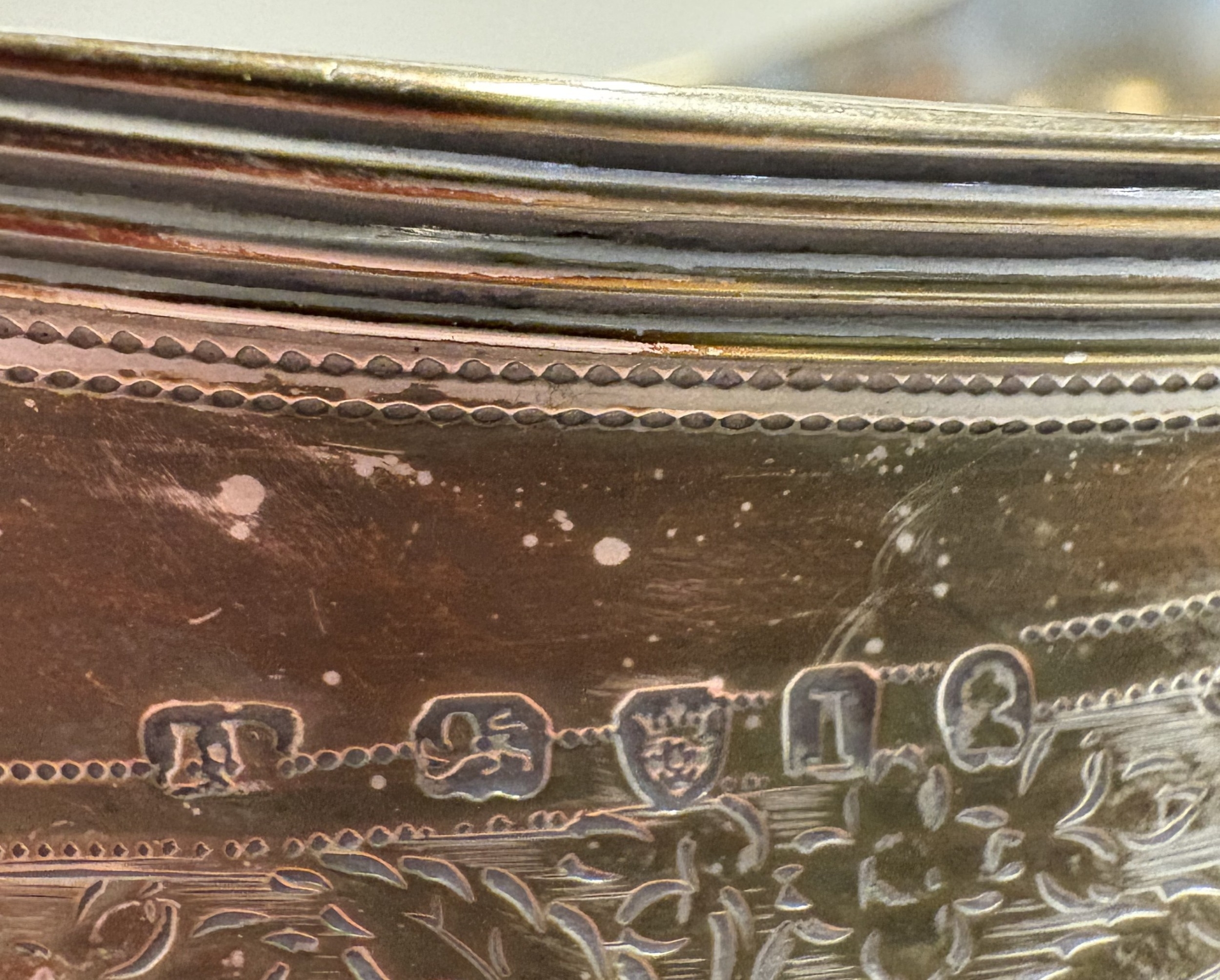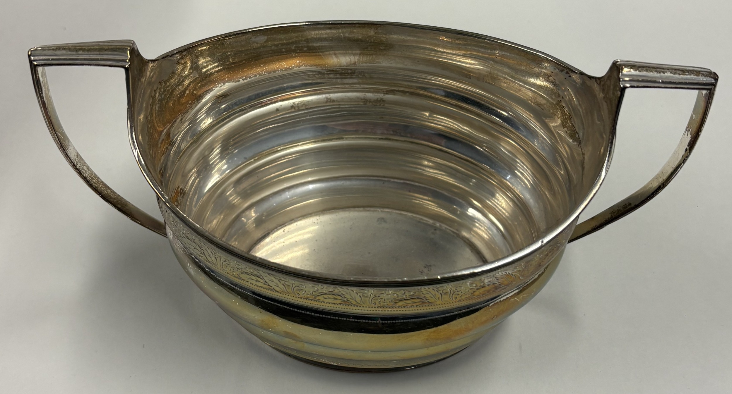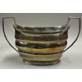 A Georgian silver sugar bowl with reeded mounts and bright-cut decoration. London. By IB. Approx. 268 grams. Est. £250 - £300.