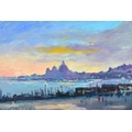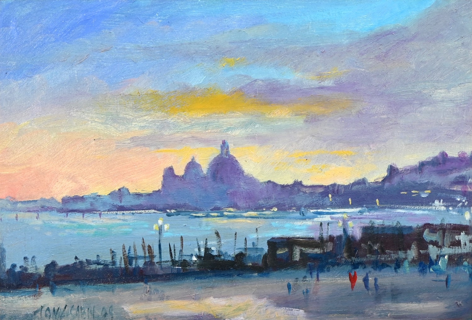 Tony Sabin, late 20th century- Sunset Over Venice, signed, oil on board, 19 x 27.5cm