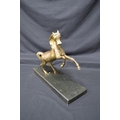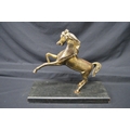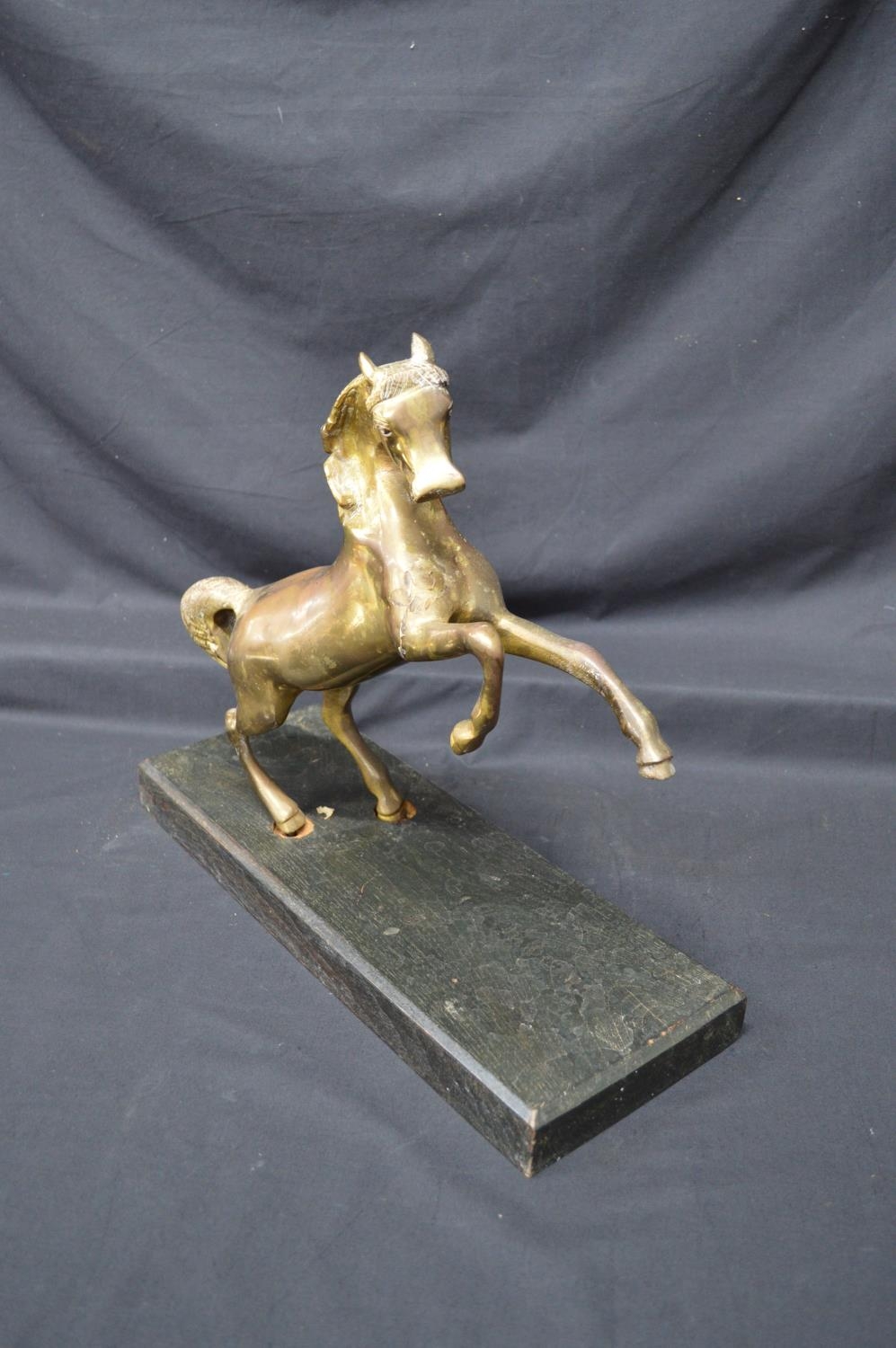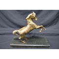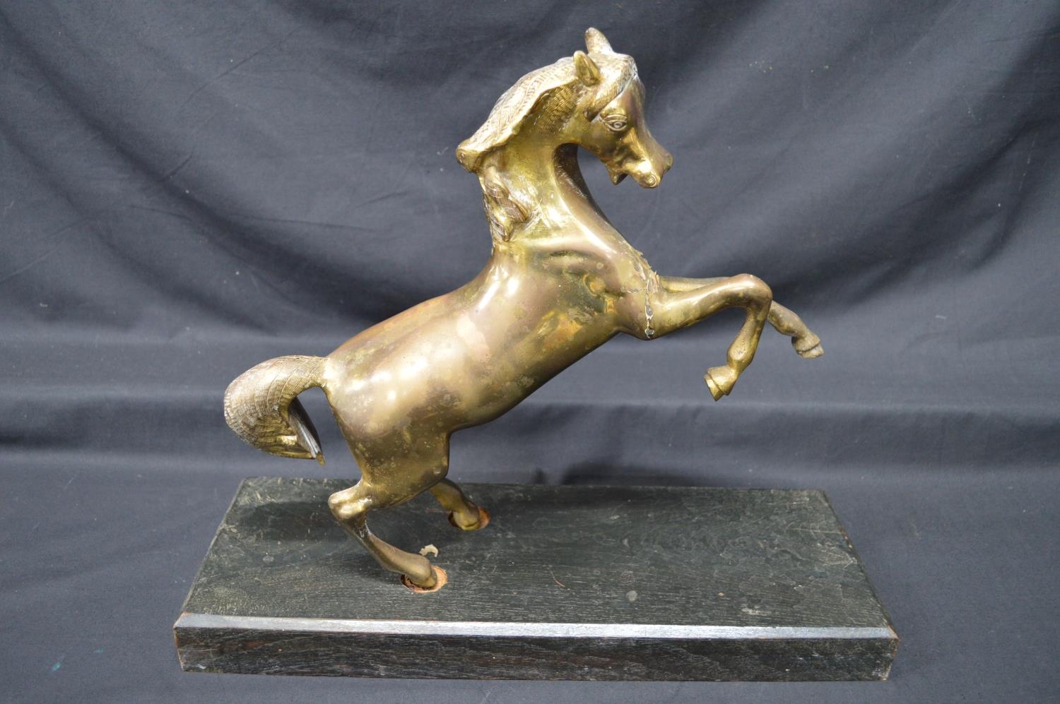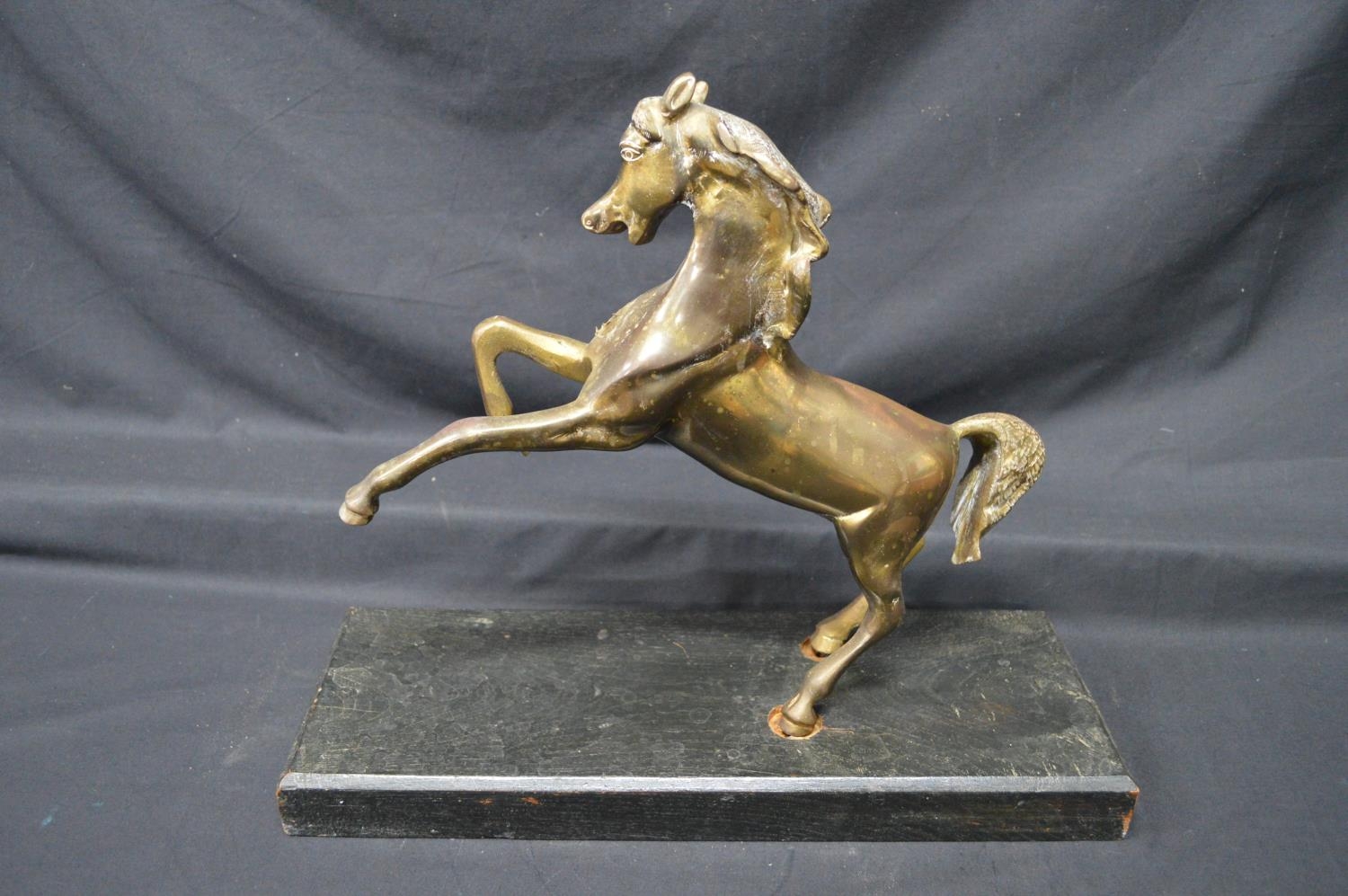 20th century brass figure of a rearing horse standing on rectangular base - 14" tall