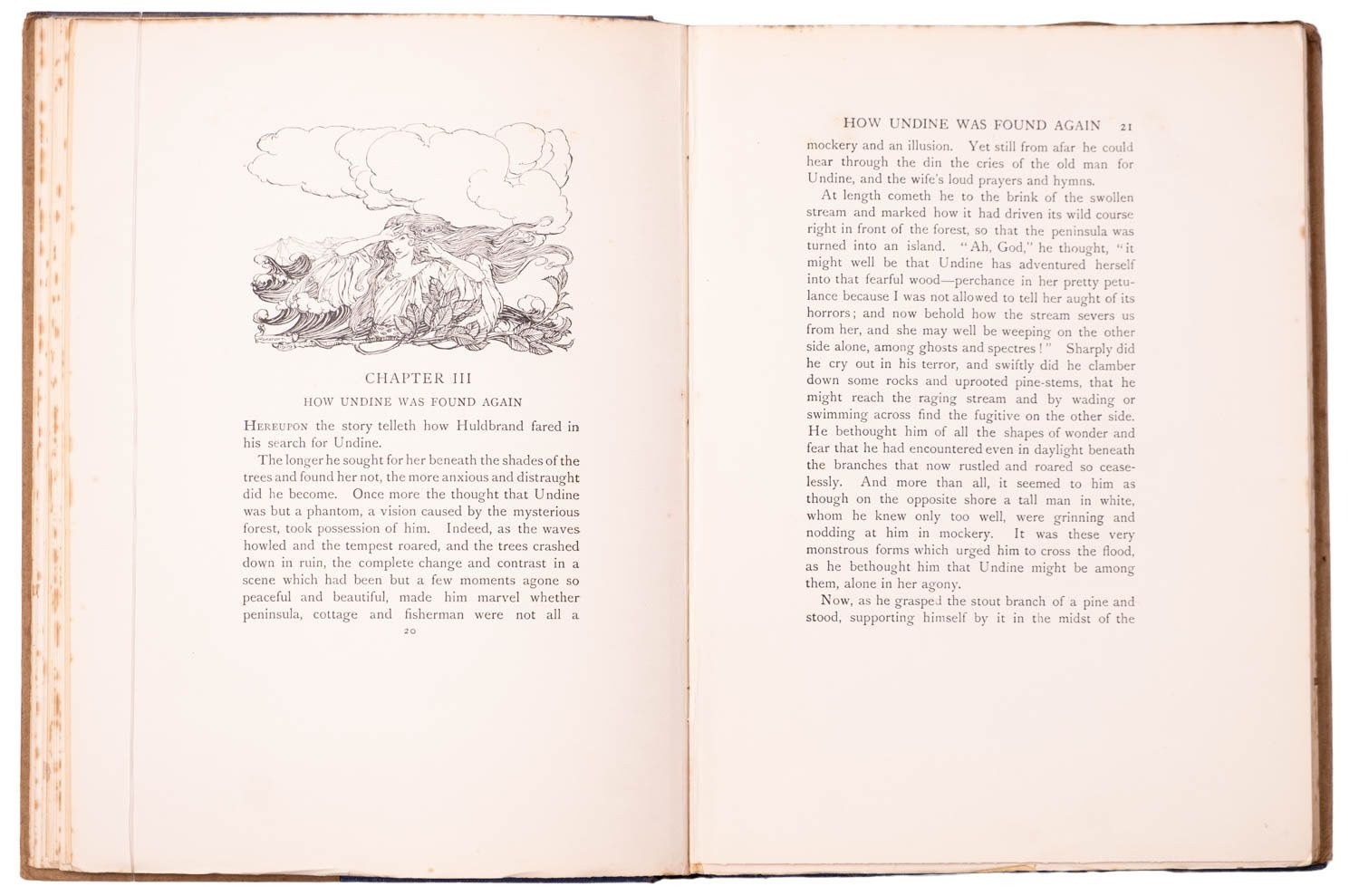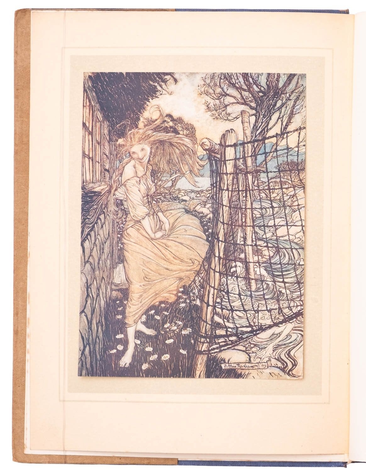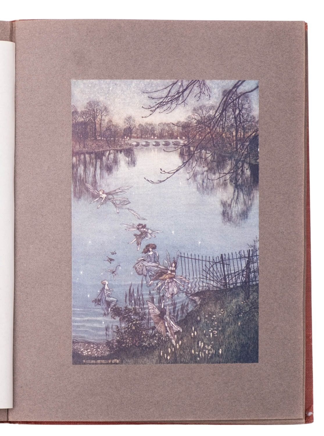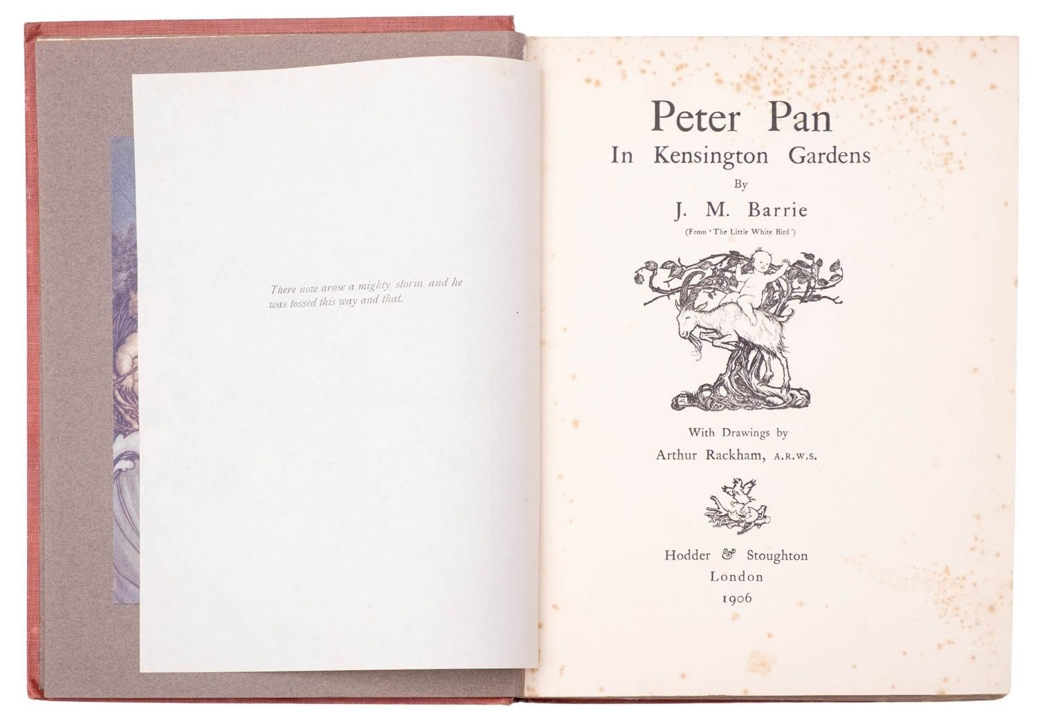 RACKHAM, Arthur (illust.). Peter Pan in Kensington Gardens, 1st trade edition, London: Hodder & Stoughton, 1906, 50 tipped-in col. plates, captioned tissue guards (some spotting), spotting (primarily at front and edges not affecting plates), frontis. leaf becoming detached, orig. russett pictorial cloth gilt rubbed, 4to; IDEM (illust.). Undine, 1st edition thus, London: William Heinemann, 1909, 15 tipped-in col. plates, captioned tissue guards (some spotting), spotting (primarily at front and edges not affecting plates), orig. blue pictorial cloth gilt rubbed, top edge blue, dustjacket (chipped), 4to. (2)