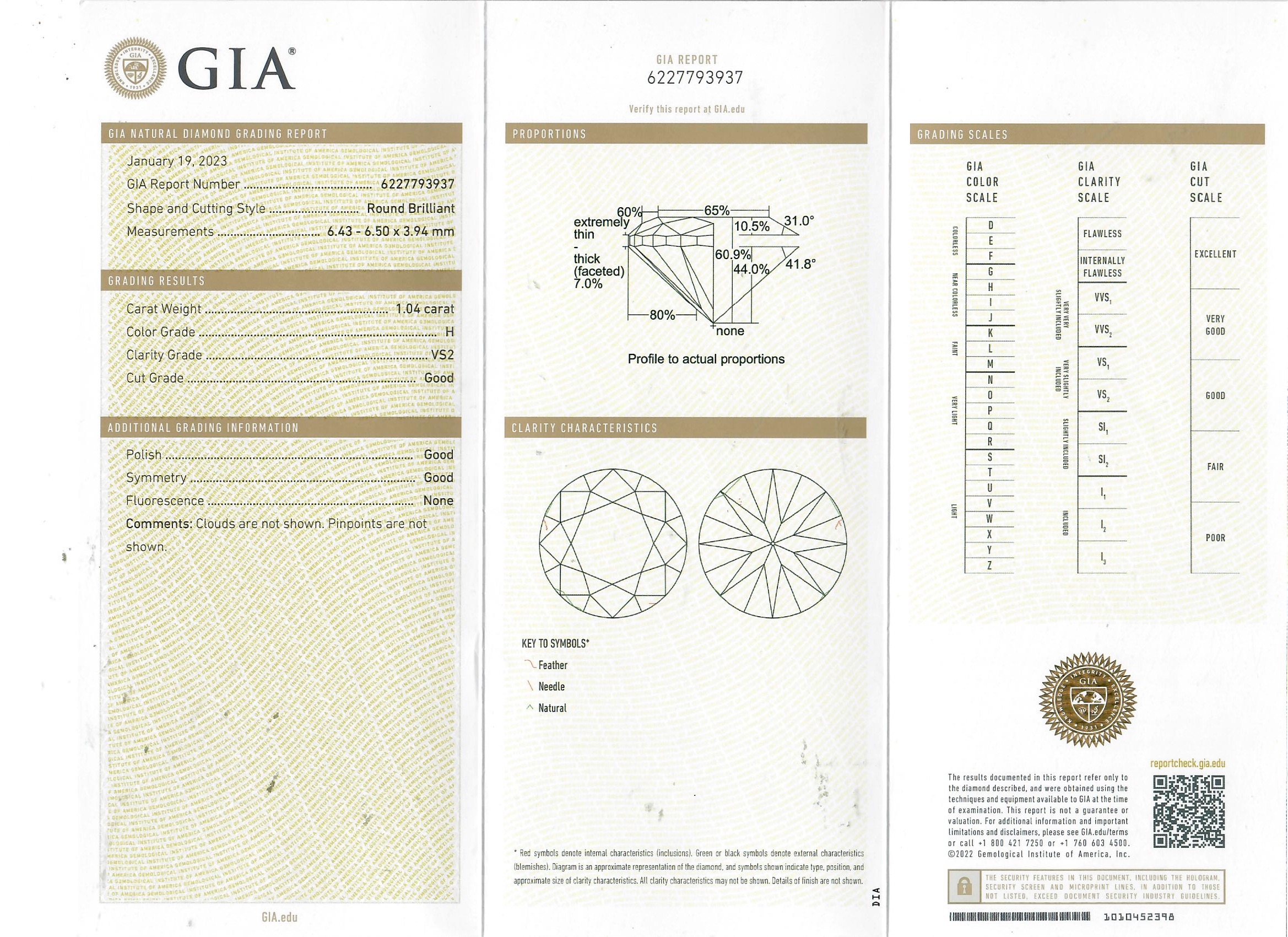 Certificated H Colour, VS2 clarity, None Fluorescence