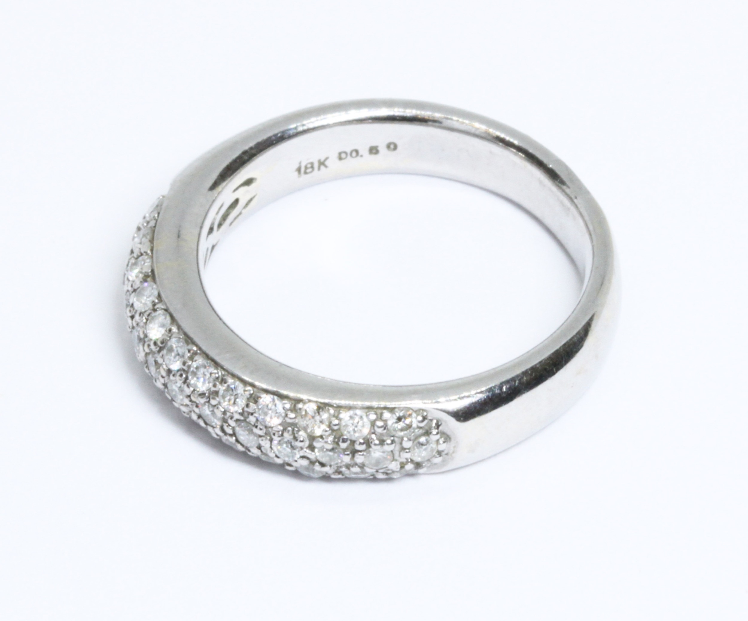 A hallmarked 18ct white gold diamond ring, gross weight 7.8g, size P, 10% buyer's premium (inclusive of VAT), normal online bidding fees apply.