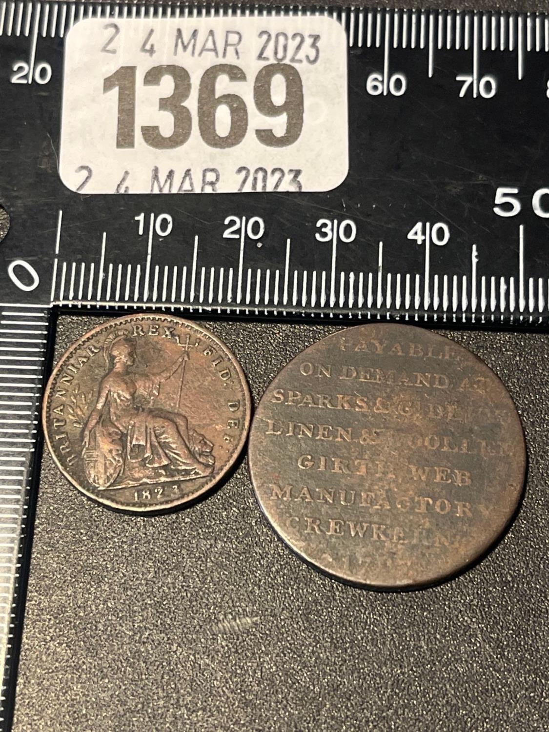 A Crewkerne Token for Sparks & GIDLEY and a farthing 1823