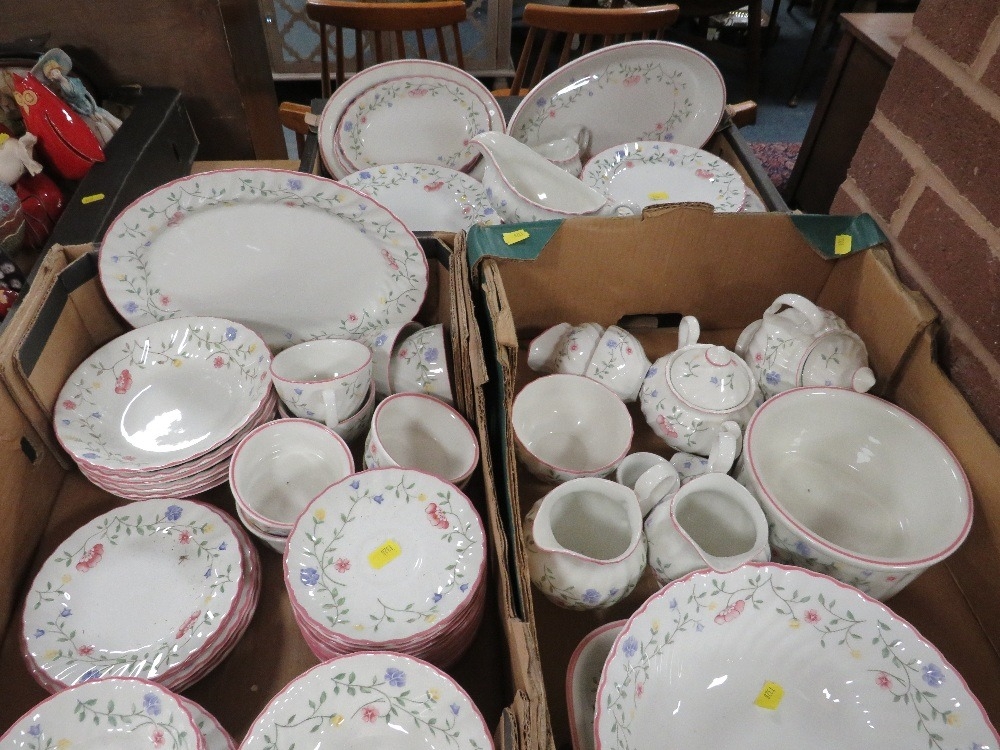 Three trays of Johnson Brothers tea & dinner ware together with a tray of ceramics (4)
