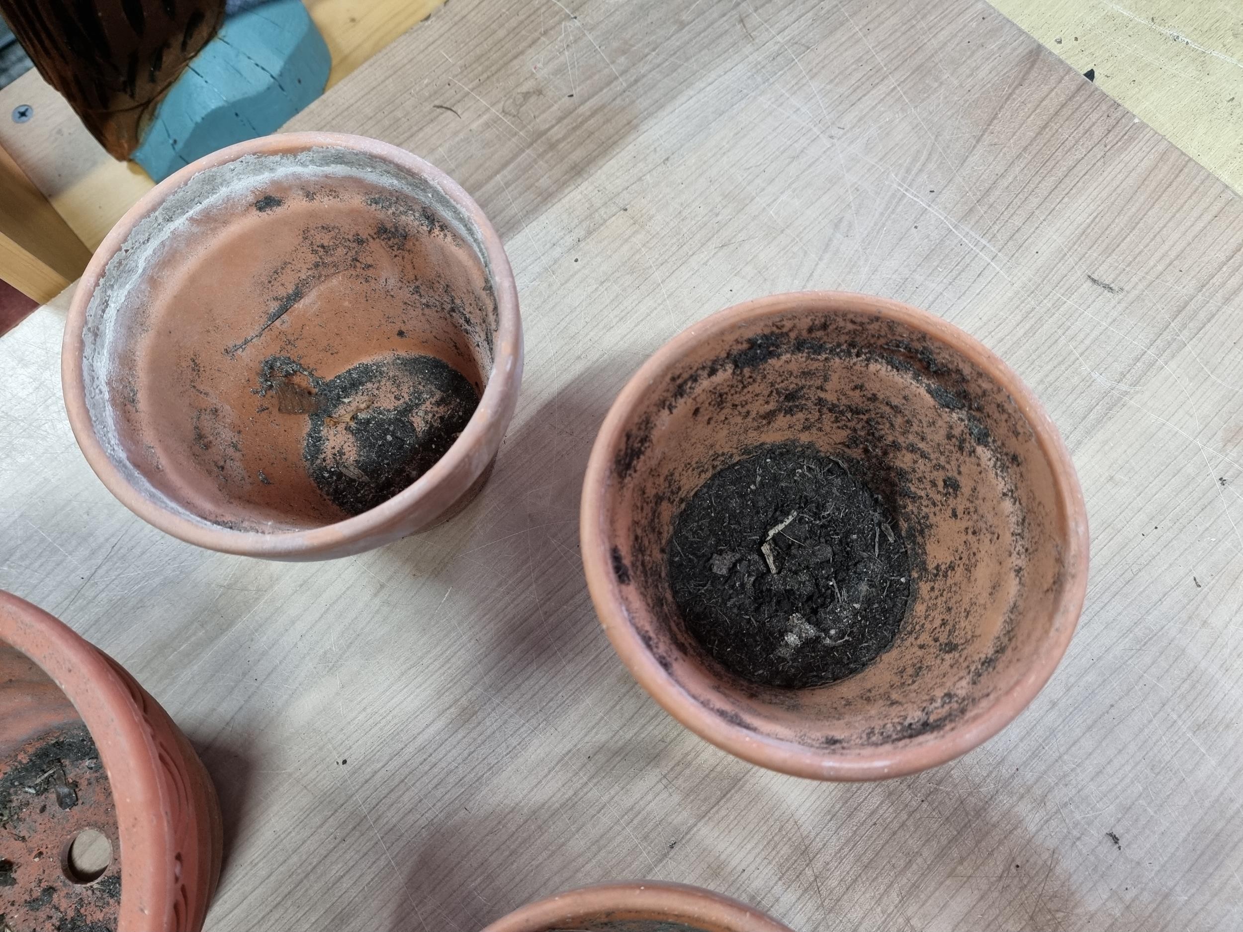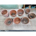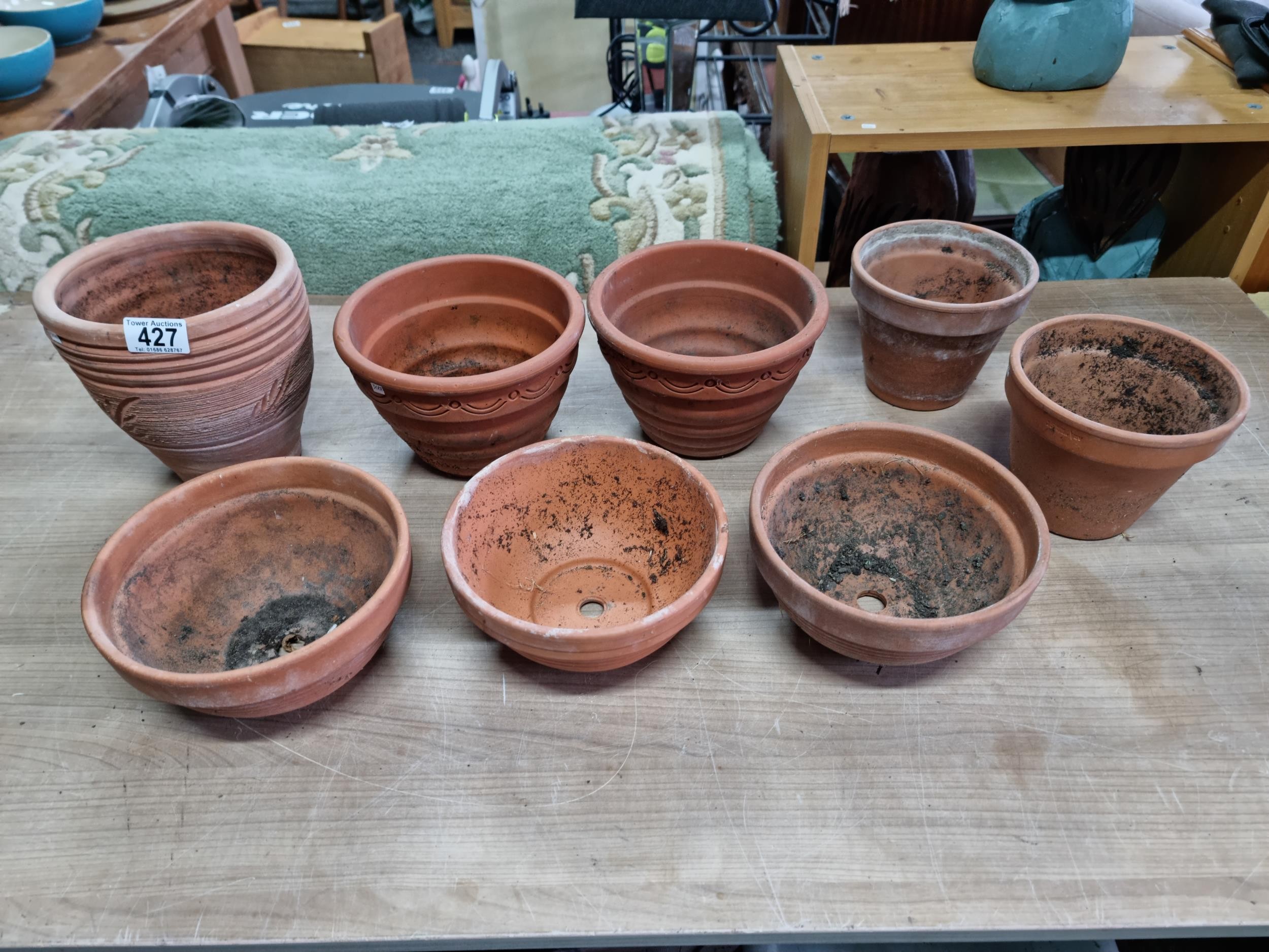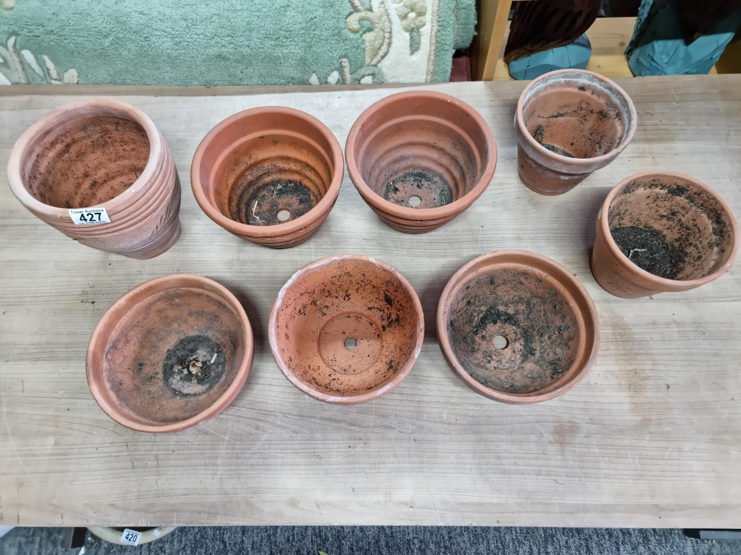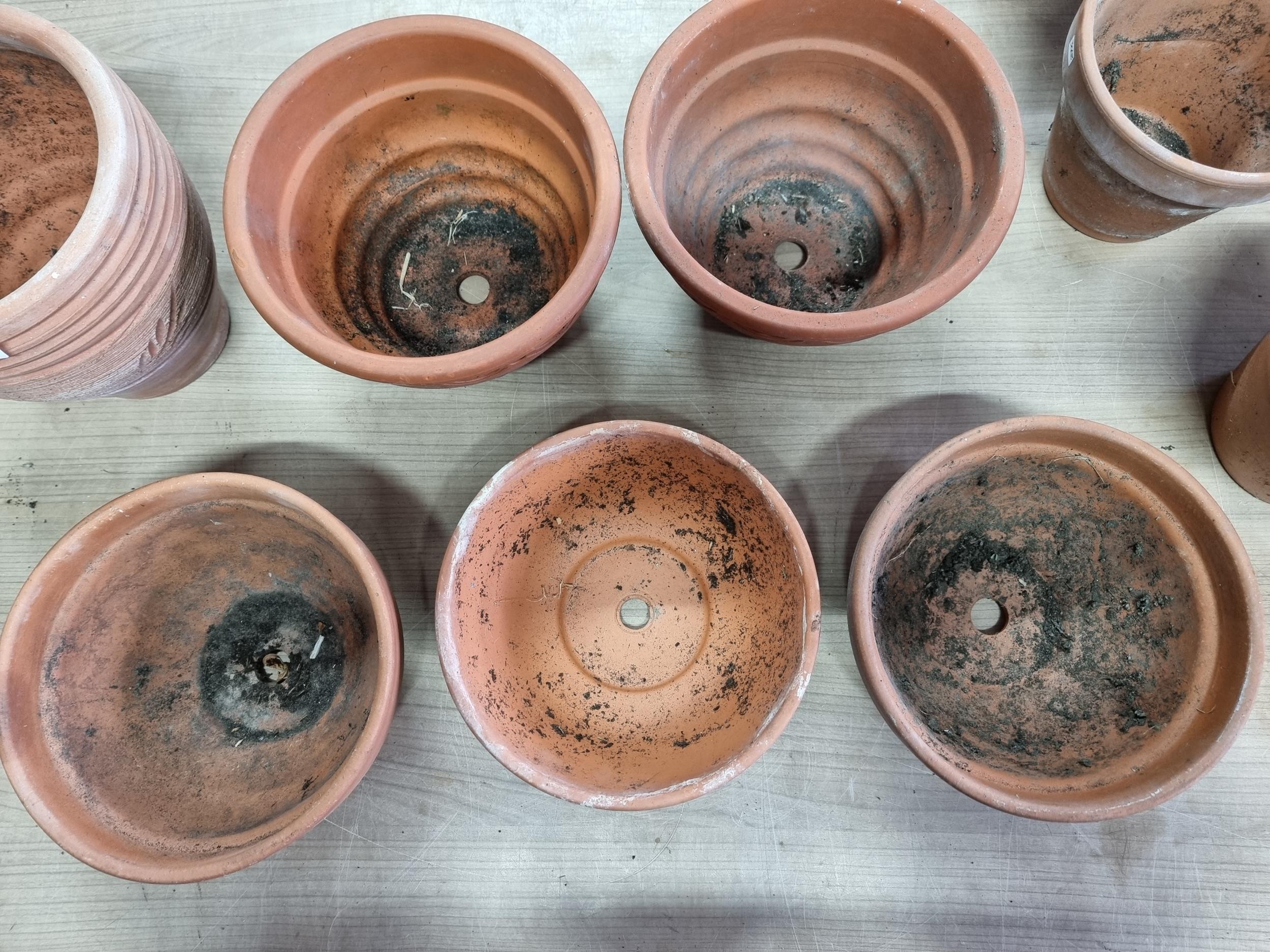 A collection of 8x various terracotta planters to include matching pairs many are stamped made in Italy, largest pot measures 19cm high diameter 18cm