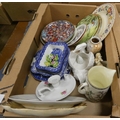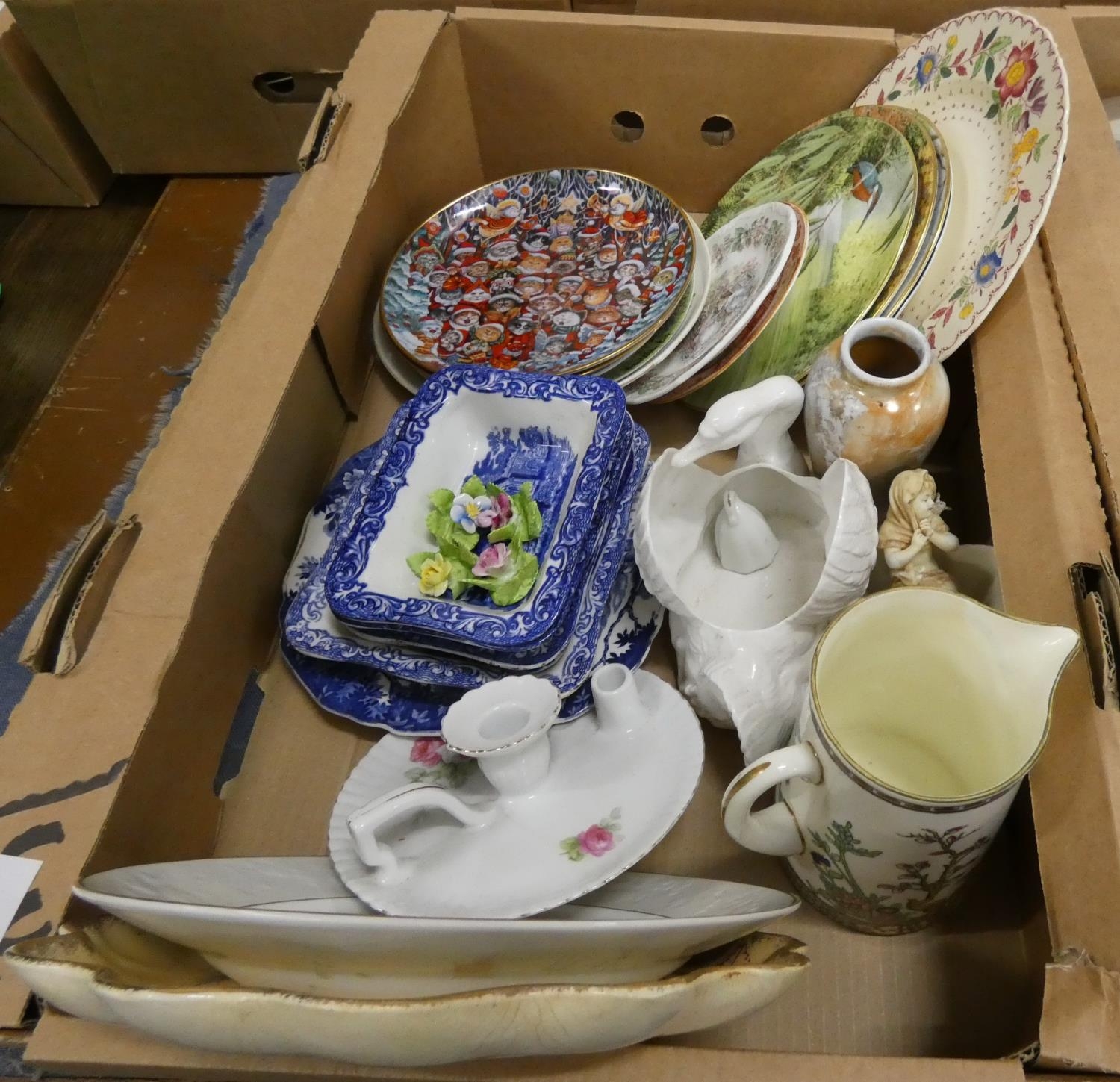 Collection of collectors plates, Indian tree pattern jug, chamber stick etc