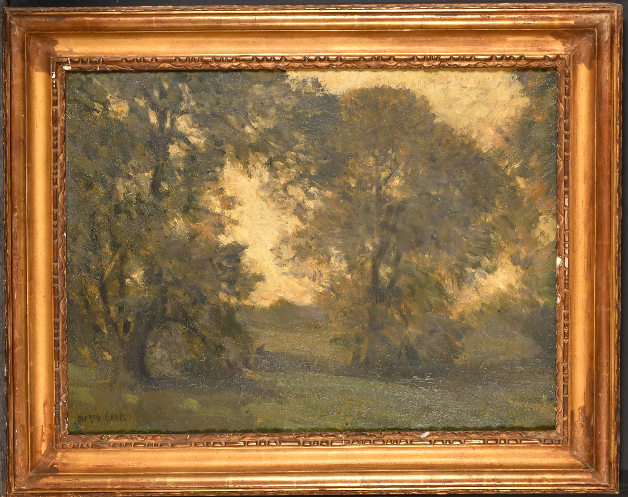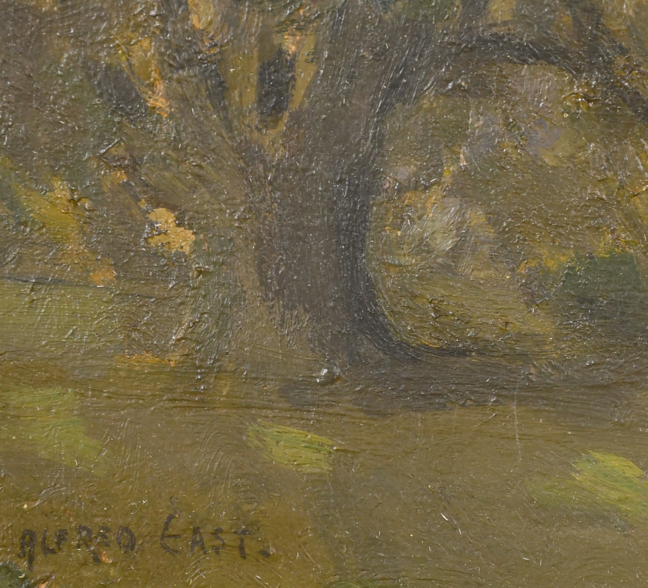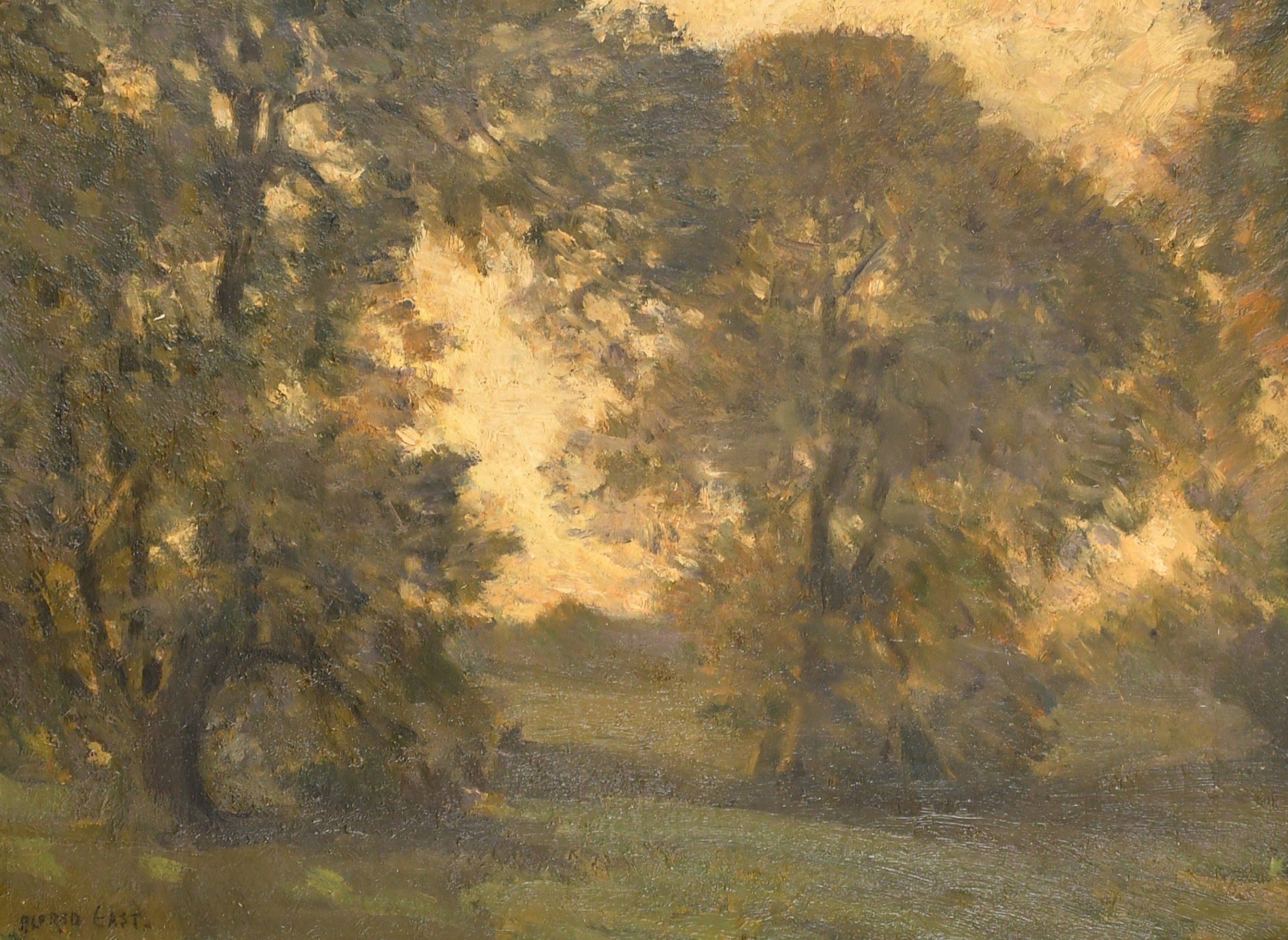 Alfred Edward East (1844-1913) British. A Wooded Landscape at Dusk, Oil on canvas, Signed, 18" x 24" (45.7 x 61cm)