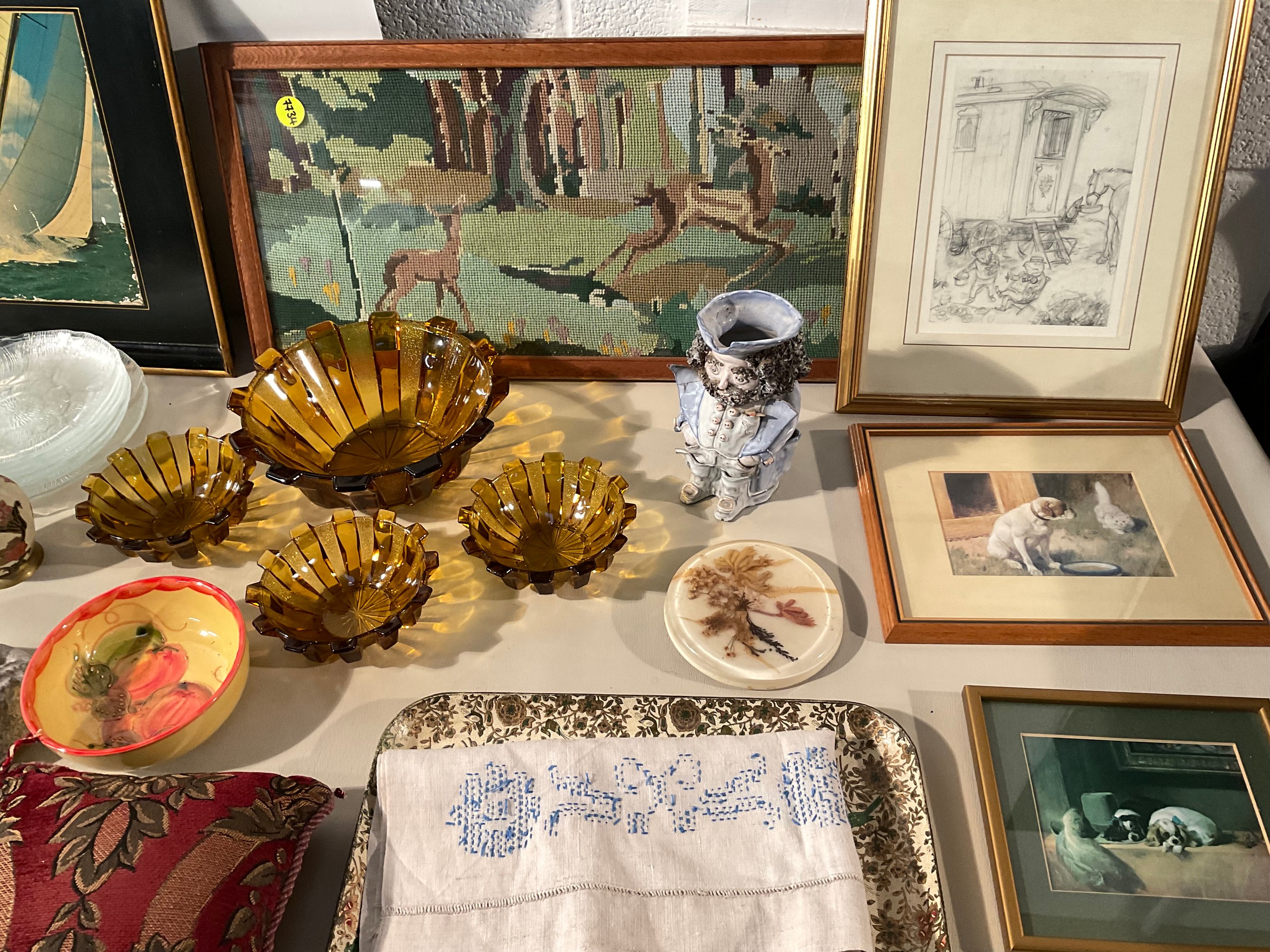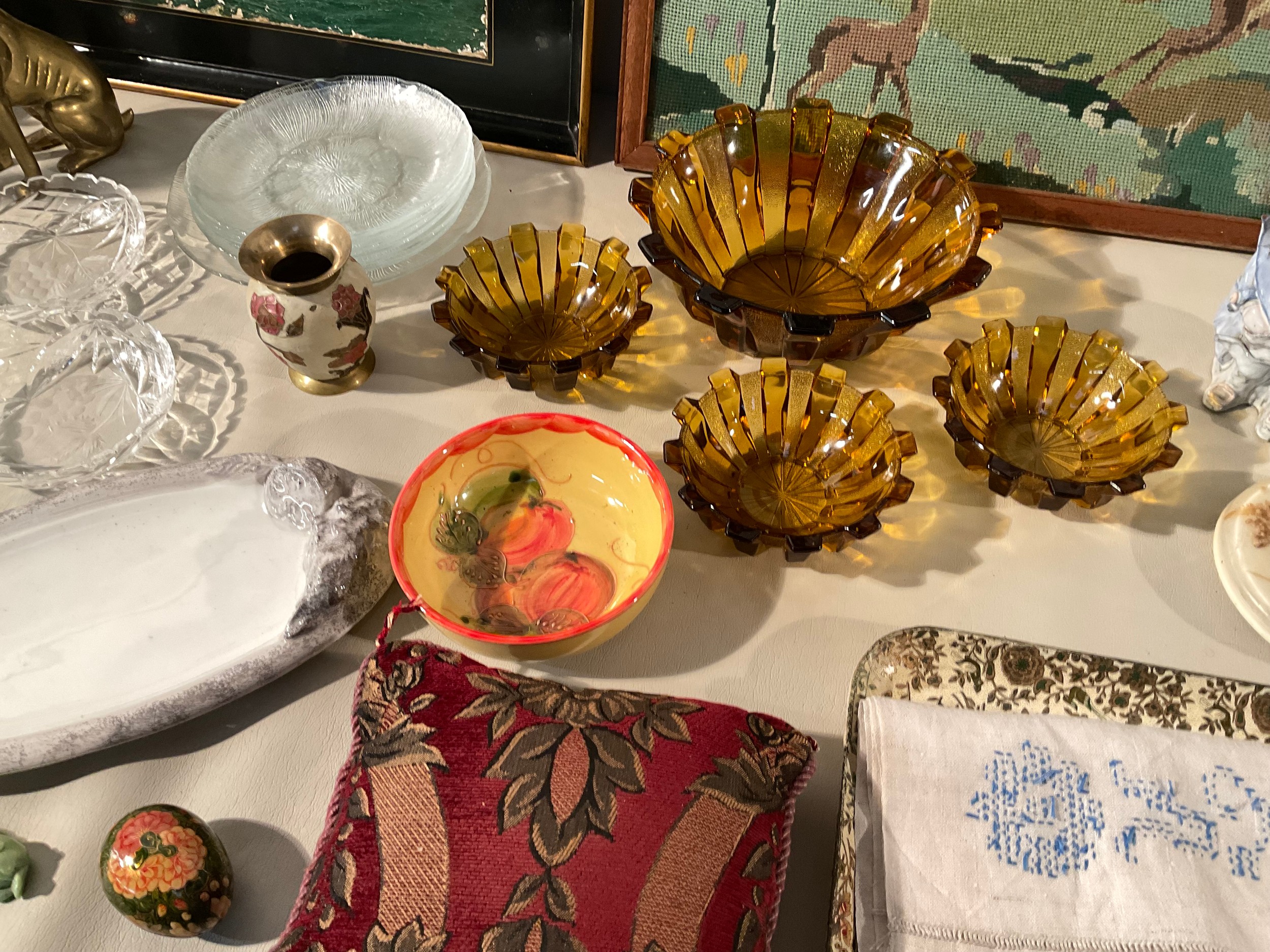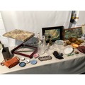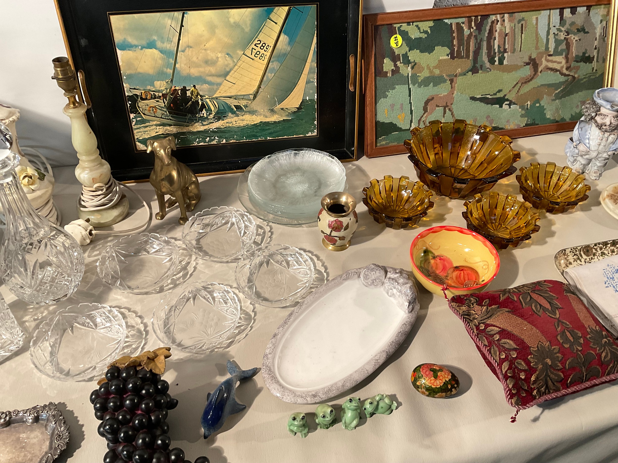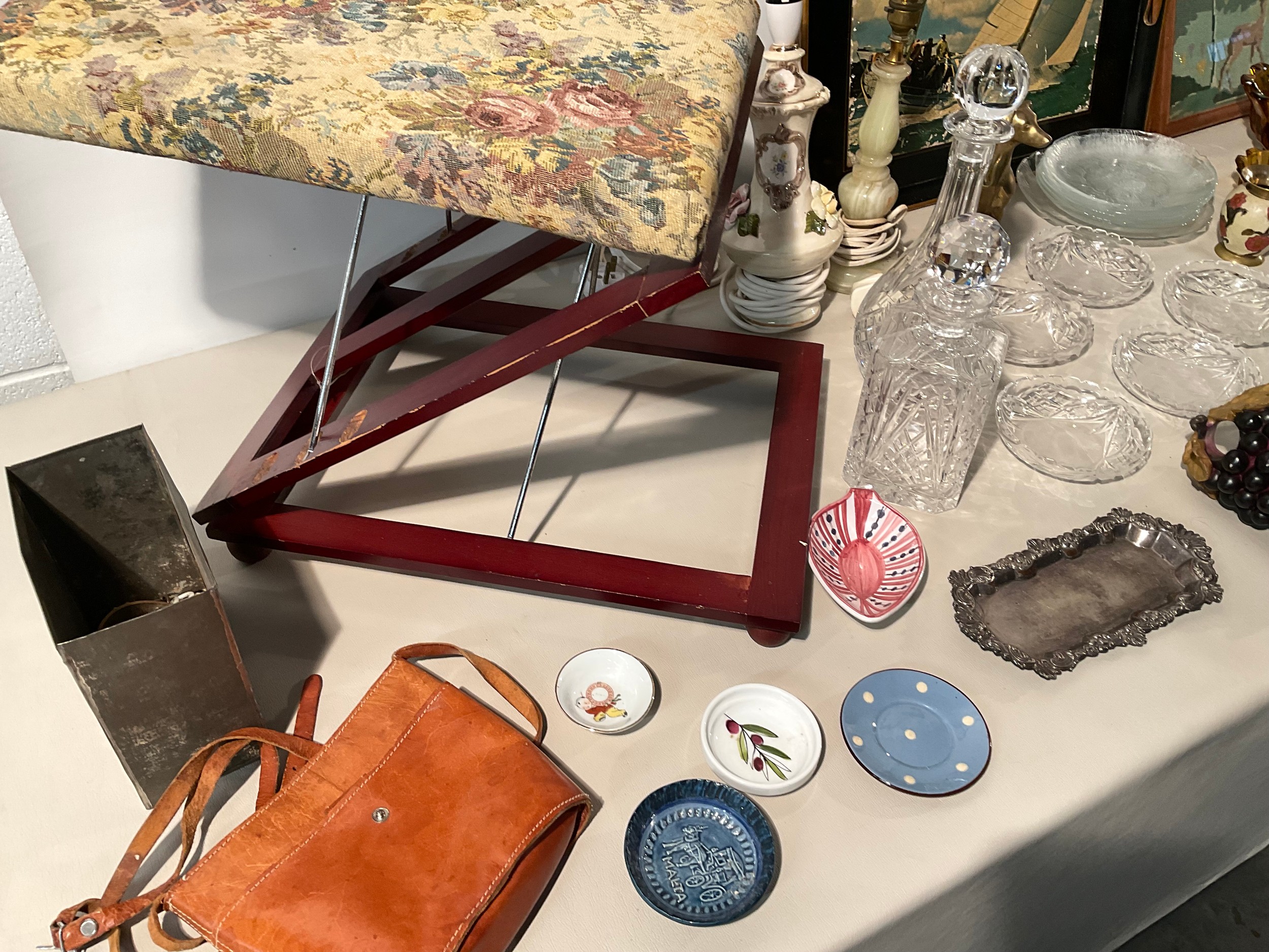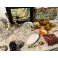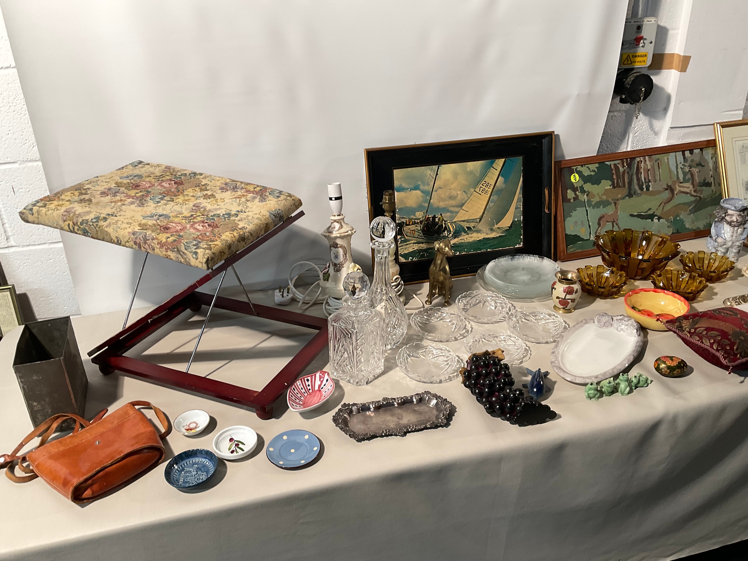 2 BOXES OF CHINA & GLASSWARE TO INCLUDE DECANTERS, FRUIT BOWLS TRAYS ETC