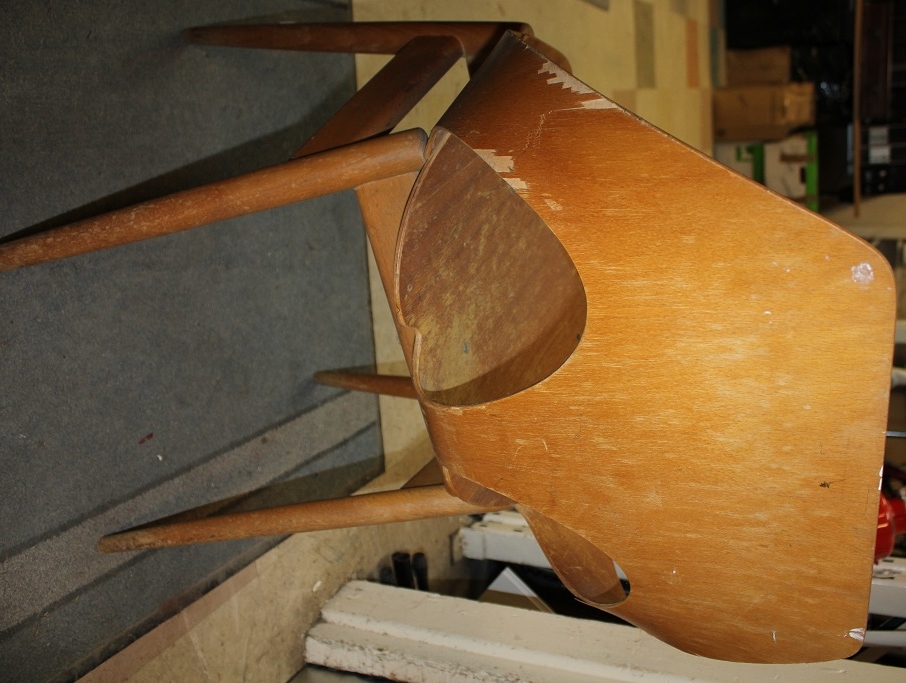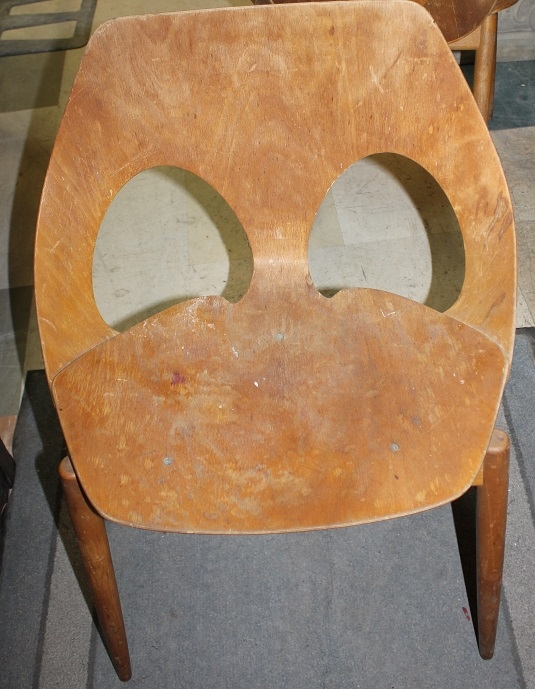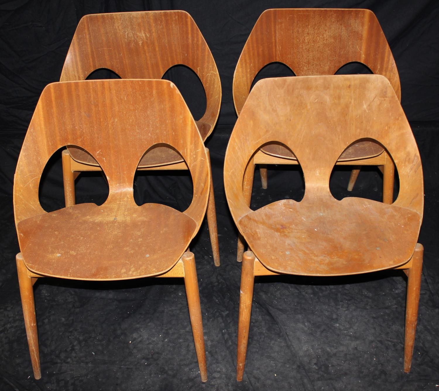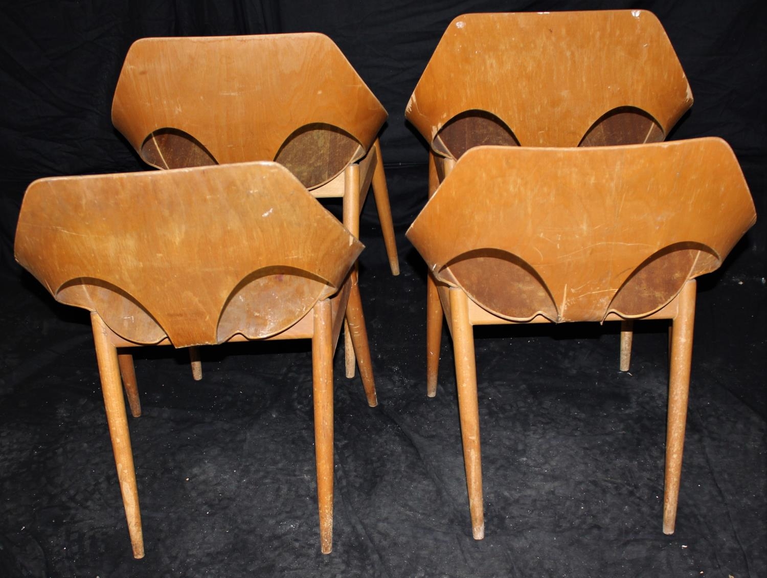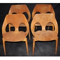 SET OF 4 DANISH DESIGNED KANDYA JASON PLYWOOD STACKABLE CHAIRS ON GENTLY TAPERING SPRAYED LEGS. DESIGNED BY CARL JACOBS