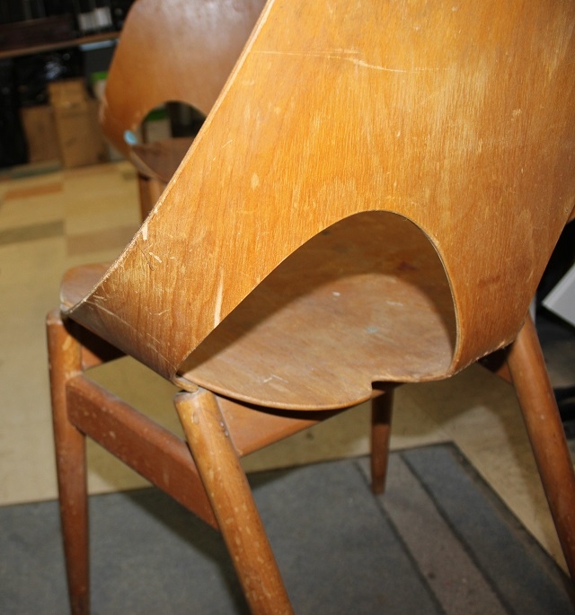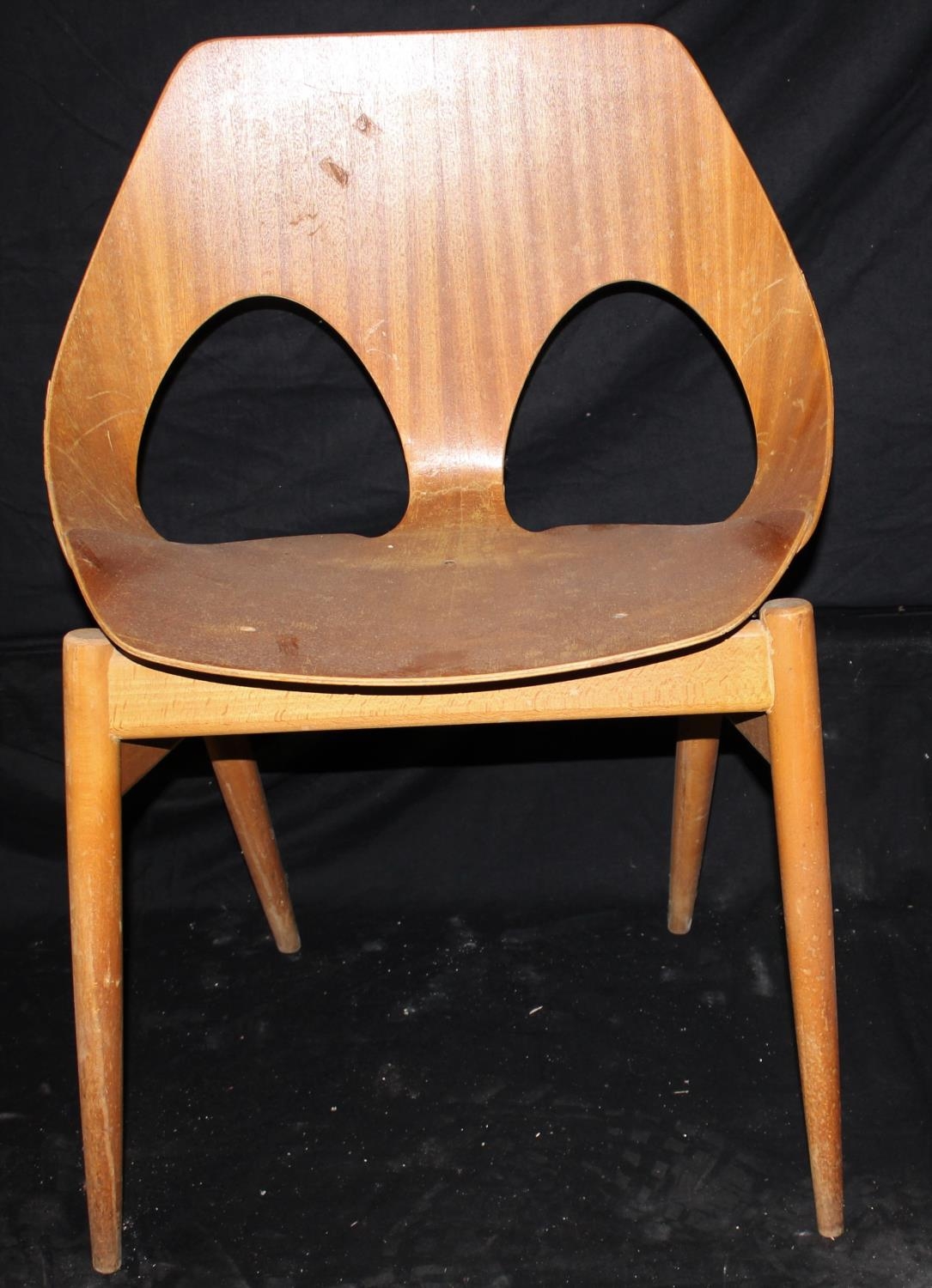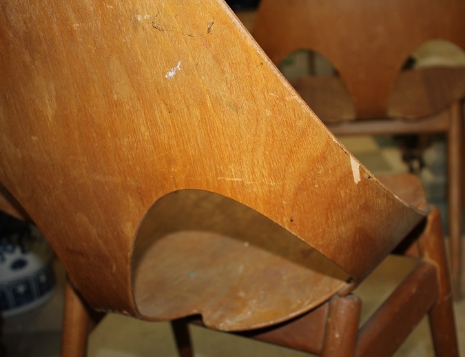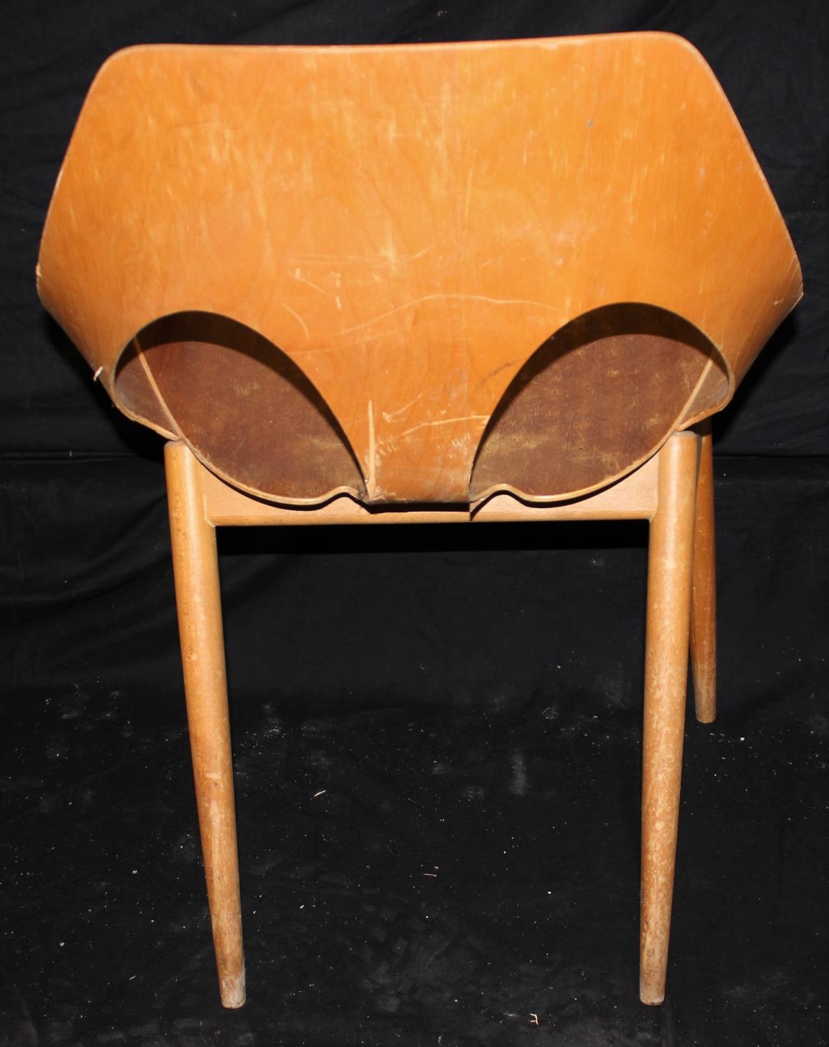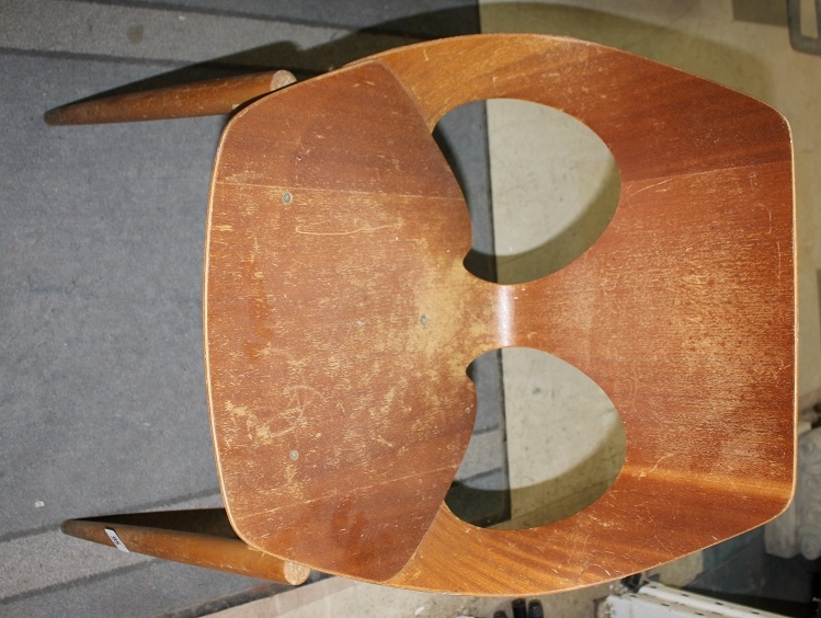 SET OF 4 DANISH DESIGNED KANDYA JASON PLYWOOD STACKABLE CHAIRS ON GENTLY TAPERING SPRAYED LEGS. DESIGNED BY CARL JACOBS