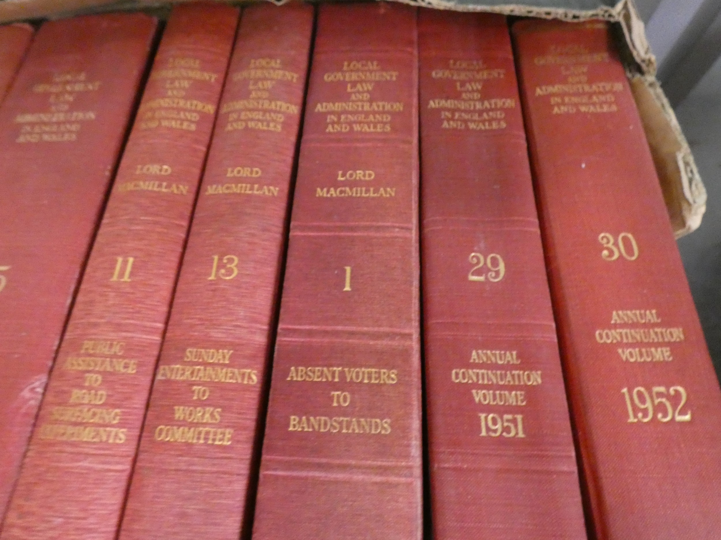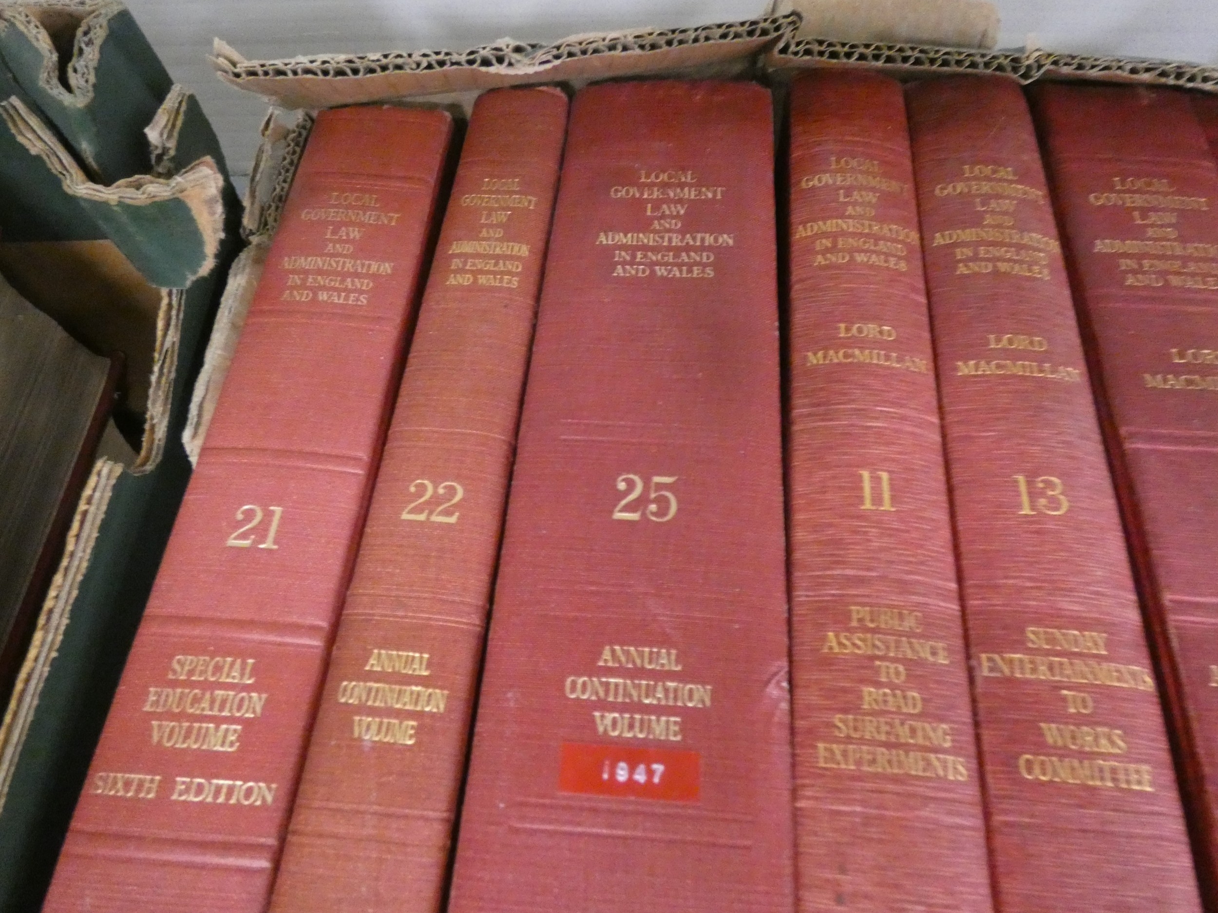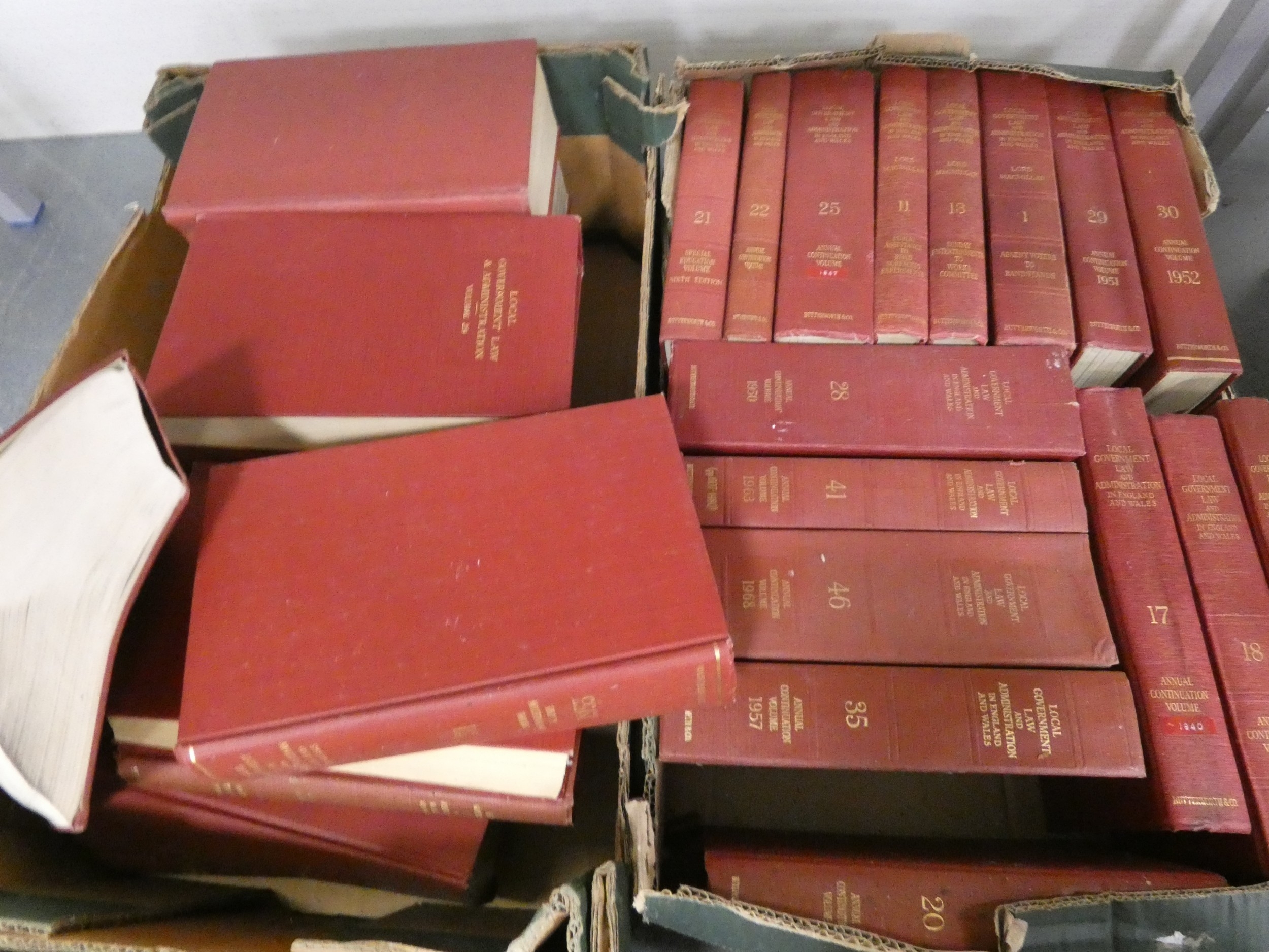 Four boxes of vinatge law books to include volumes of The Conveyancer and Local Government Law and Administration in England and Wales etc.