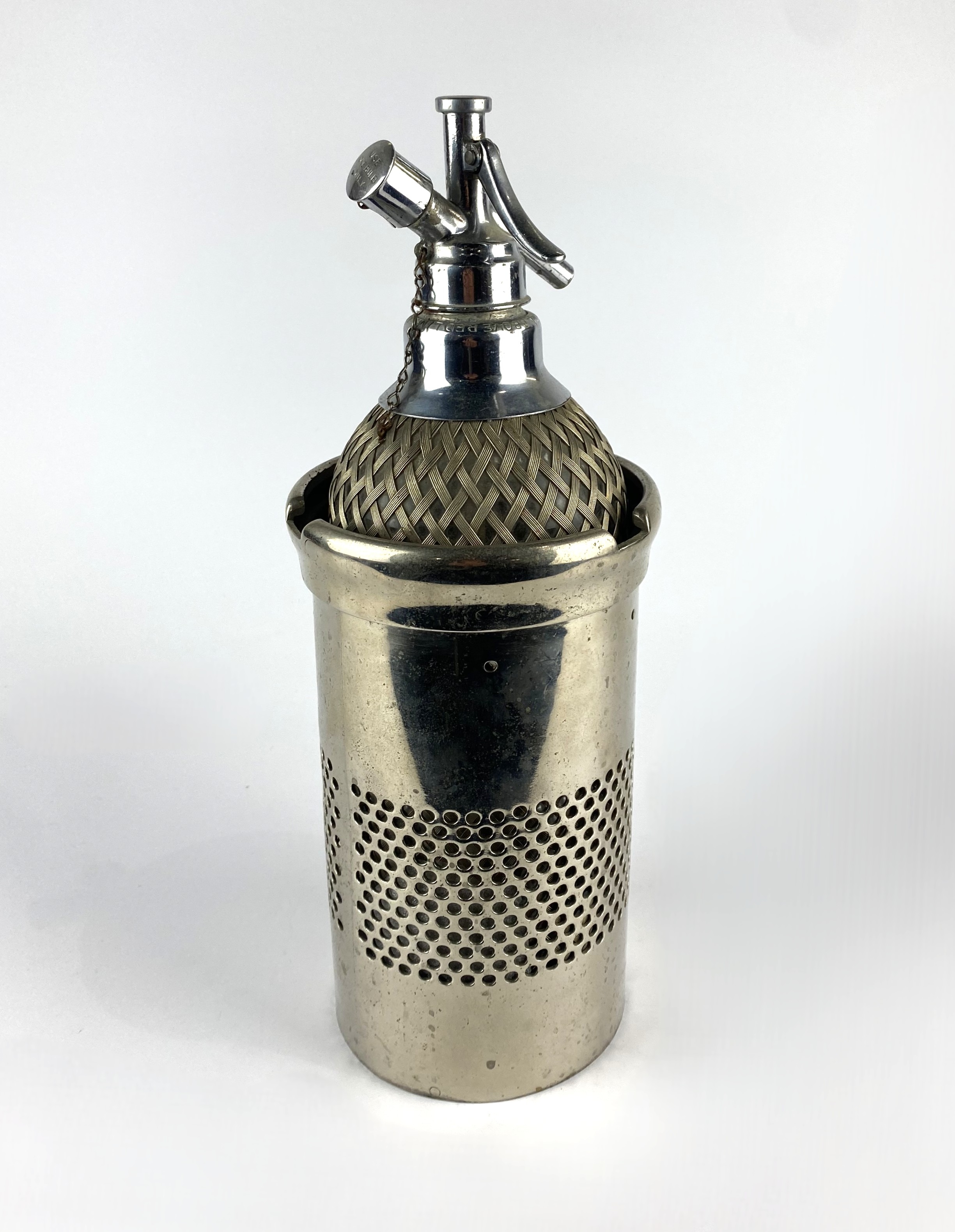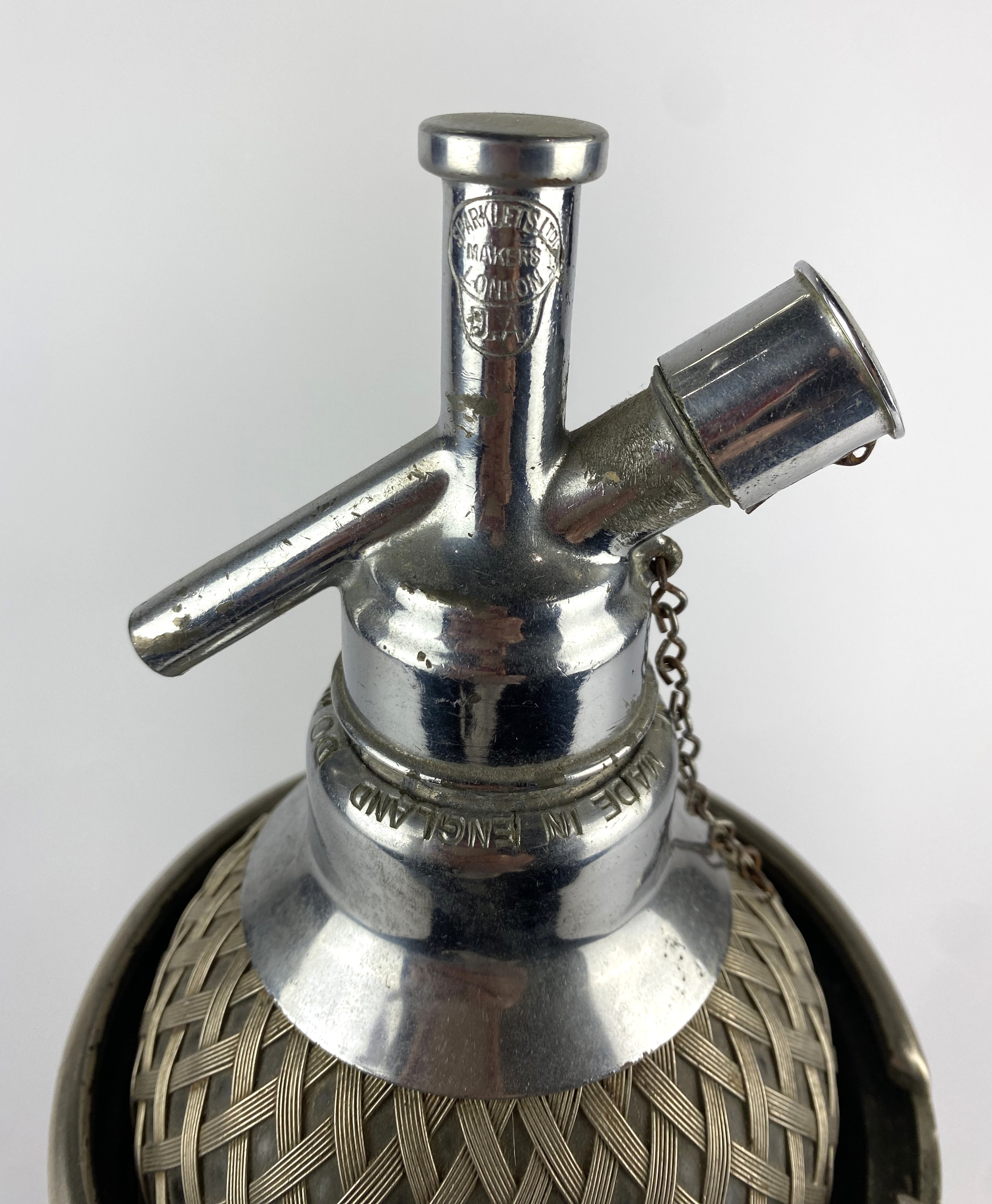 A vintage Sparklets wire-mesh-bound glass soda syphon 37cm high