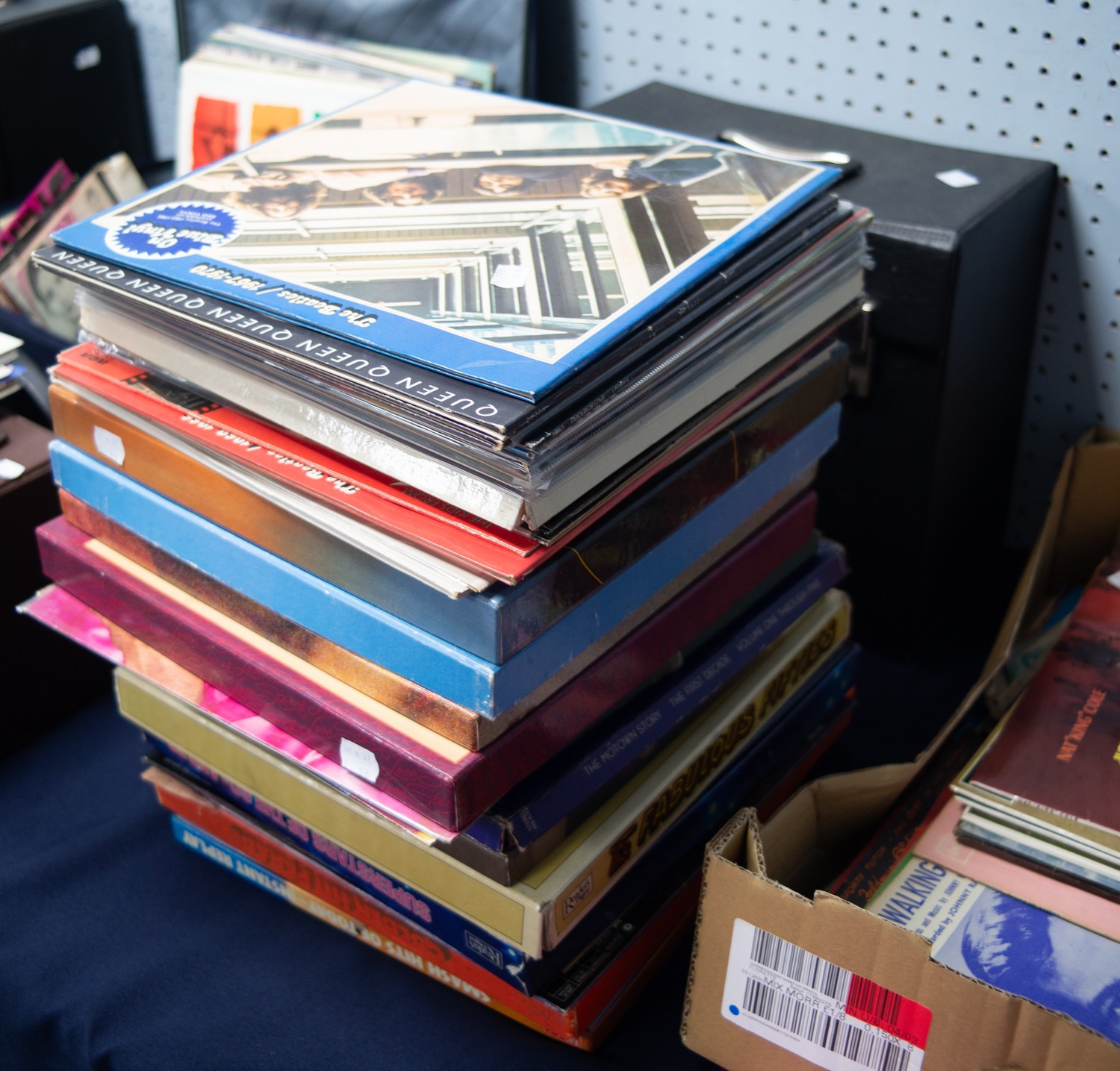 The Beatles- 1967-1970, 2lp, Apple PCSPB 718, on blue vinyl, with hype sticker. Together with a selection of mixed genre albums and boxed sets, artists to include Queen, Genesis, UB40, Supertramp, 10CC, Stylistics, ELO, Adam and the Ants, Commodores, Mike Oldfield, Neil Diamond, John Lennon and Yoko Ono, Beatles, James Taylor. (approx. 60)