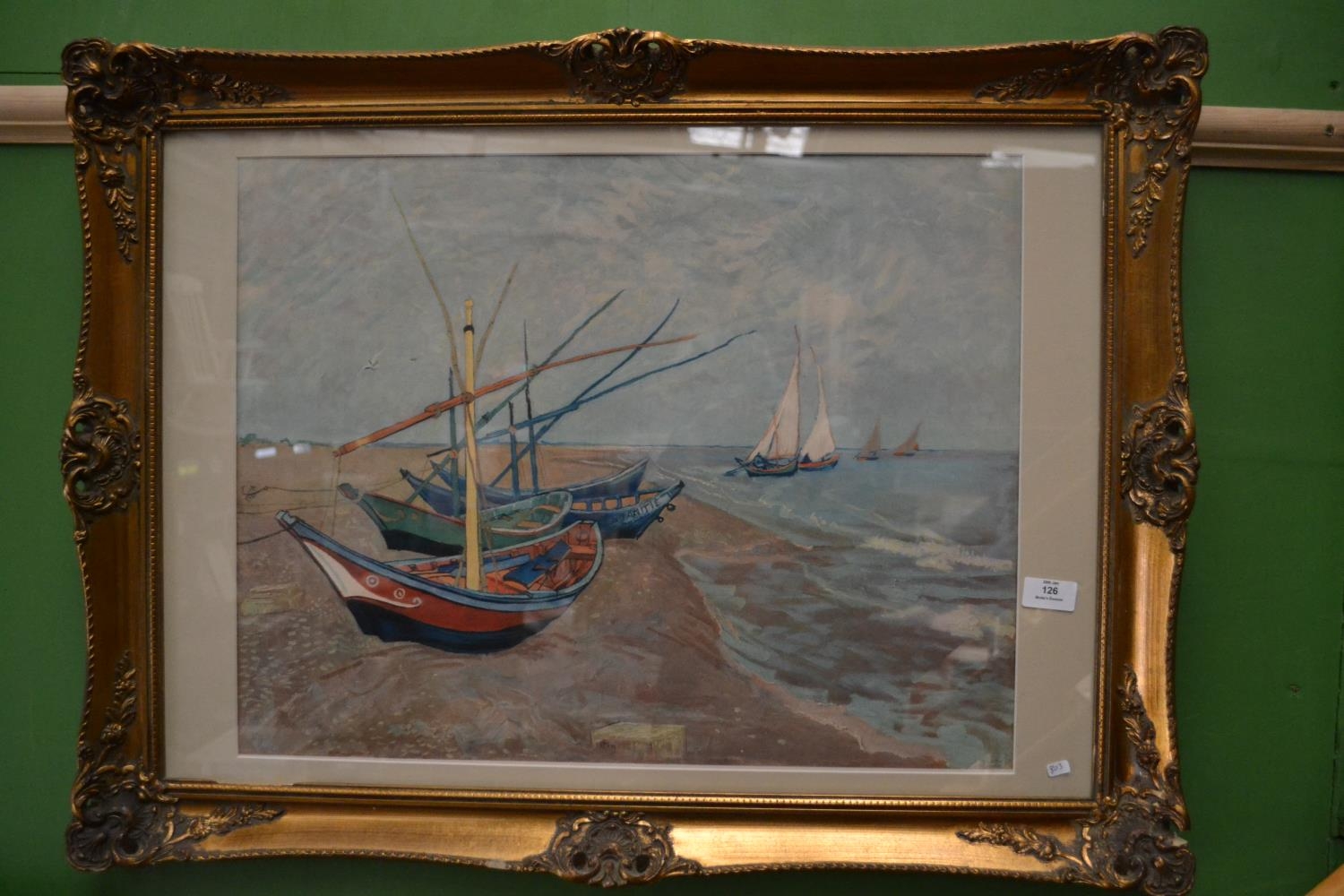 Van Gogh lithograph of Fishing Boats on the Beach. 56cm x 45cm
