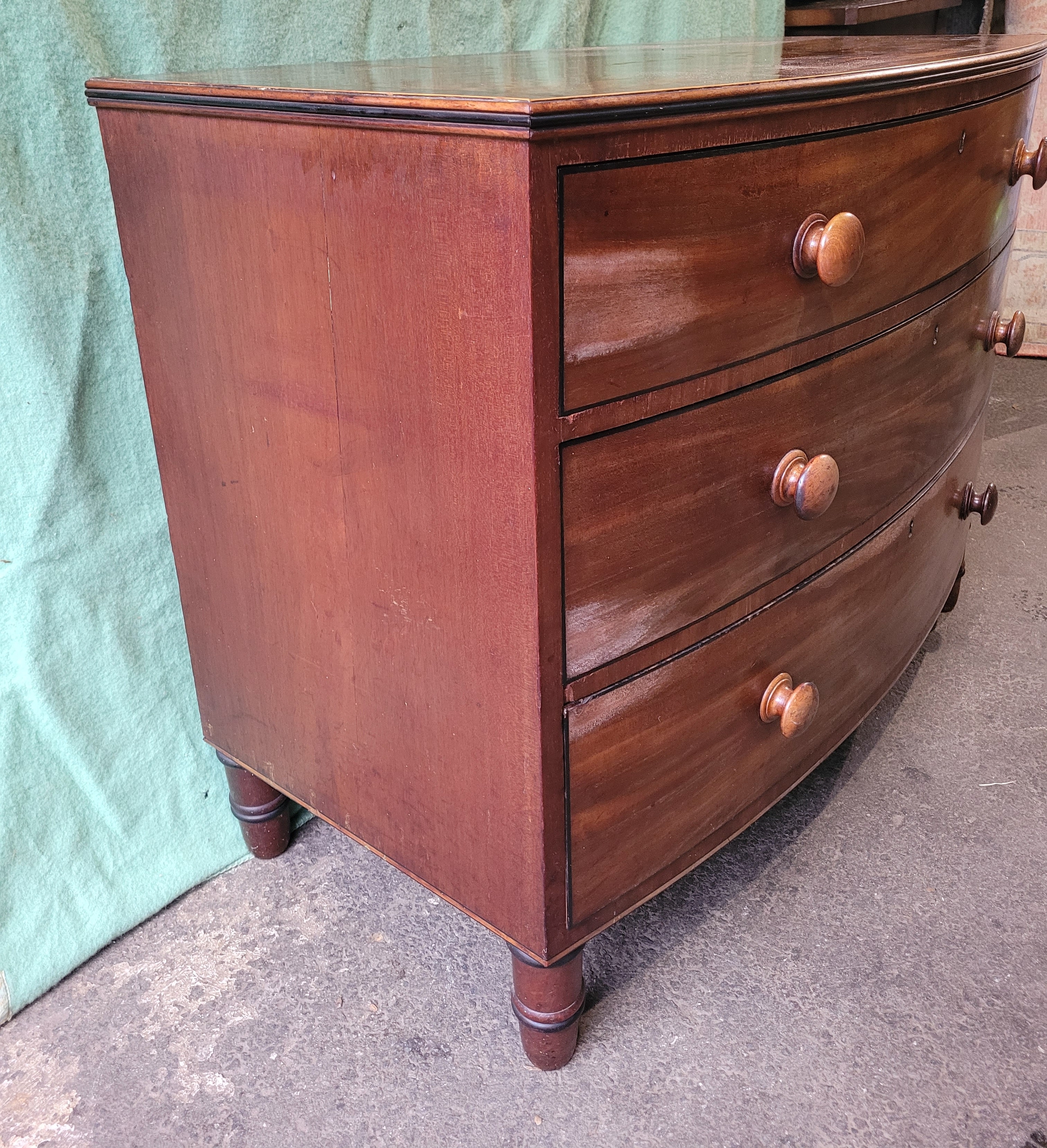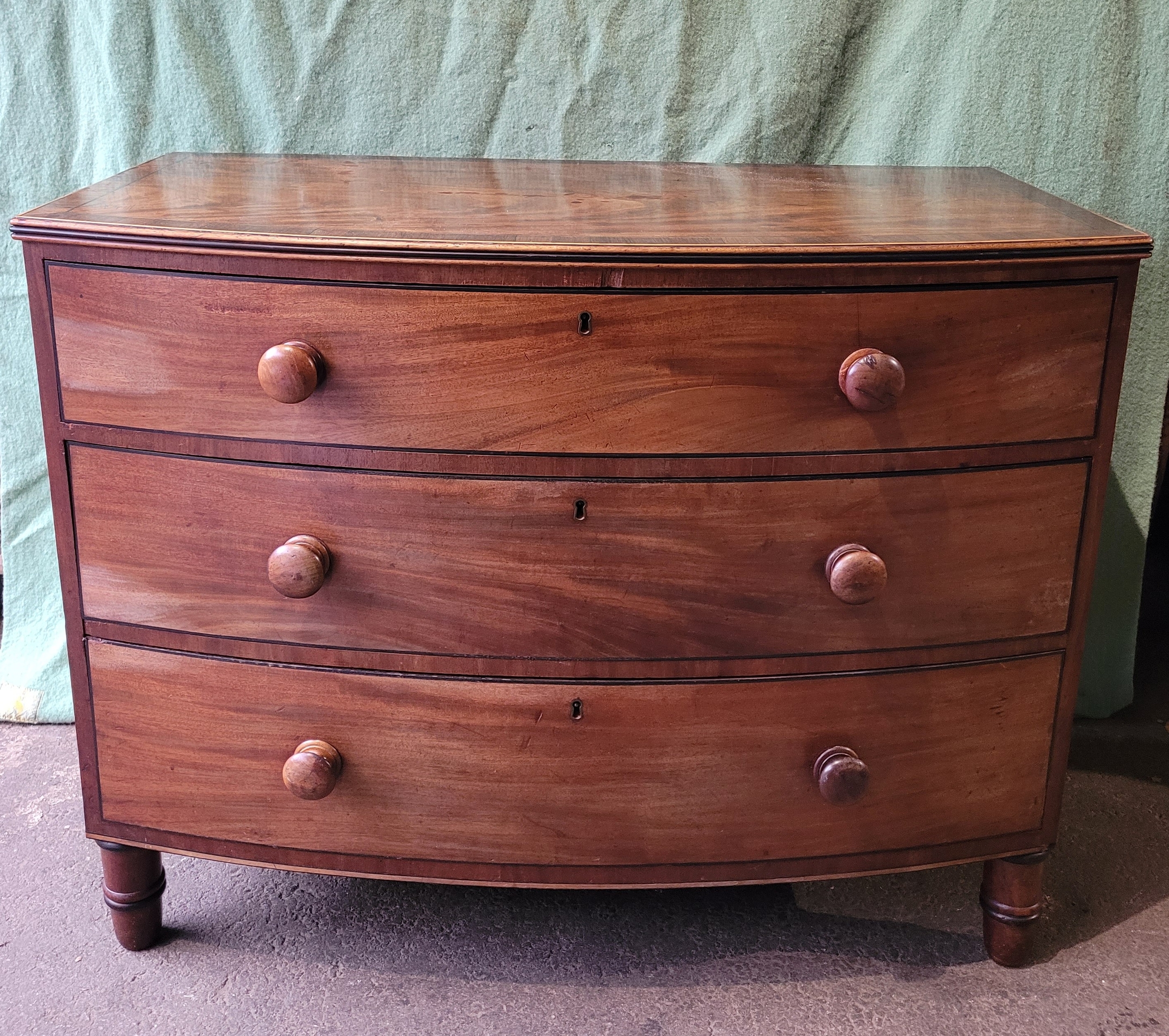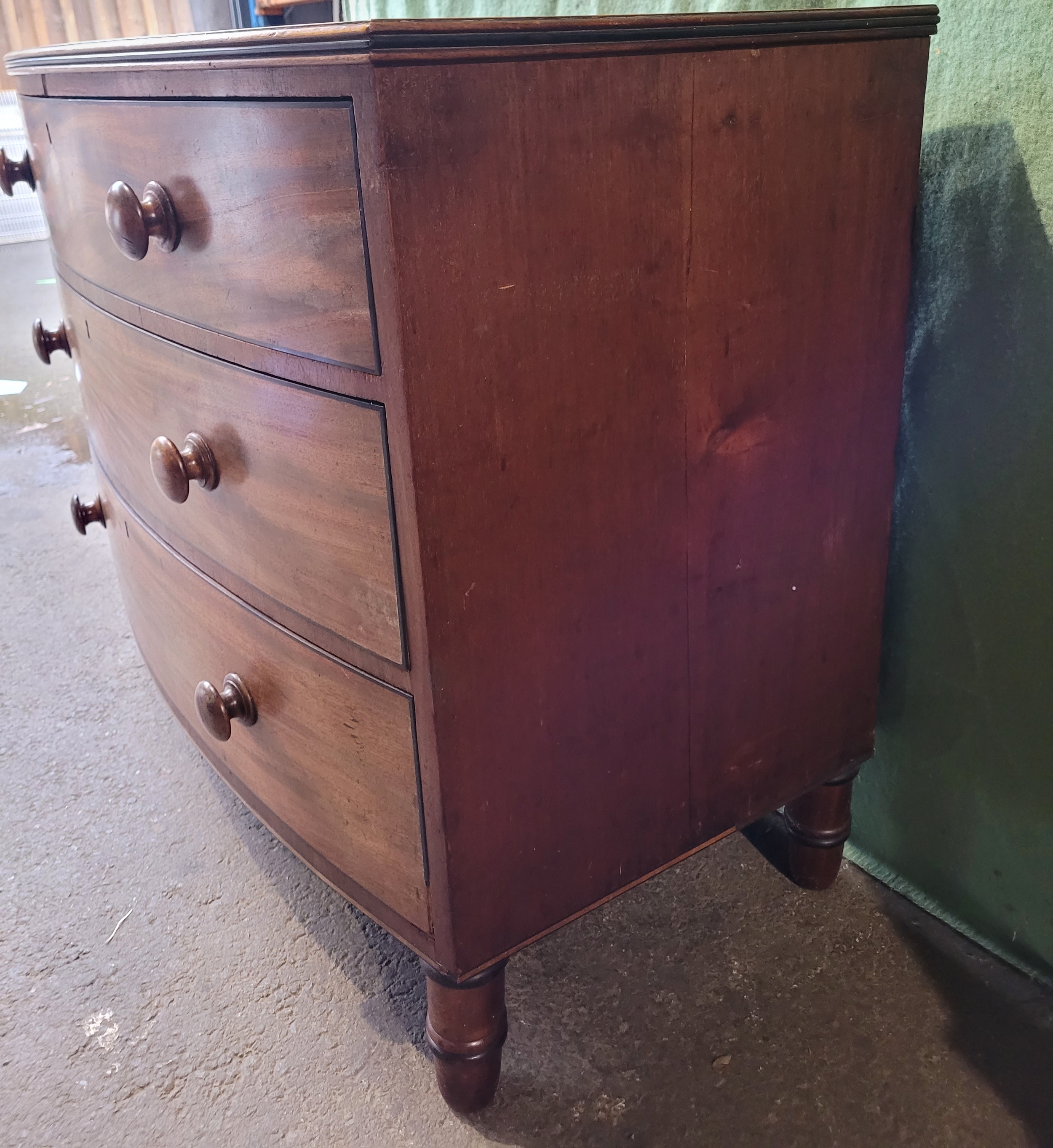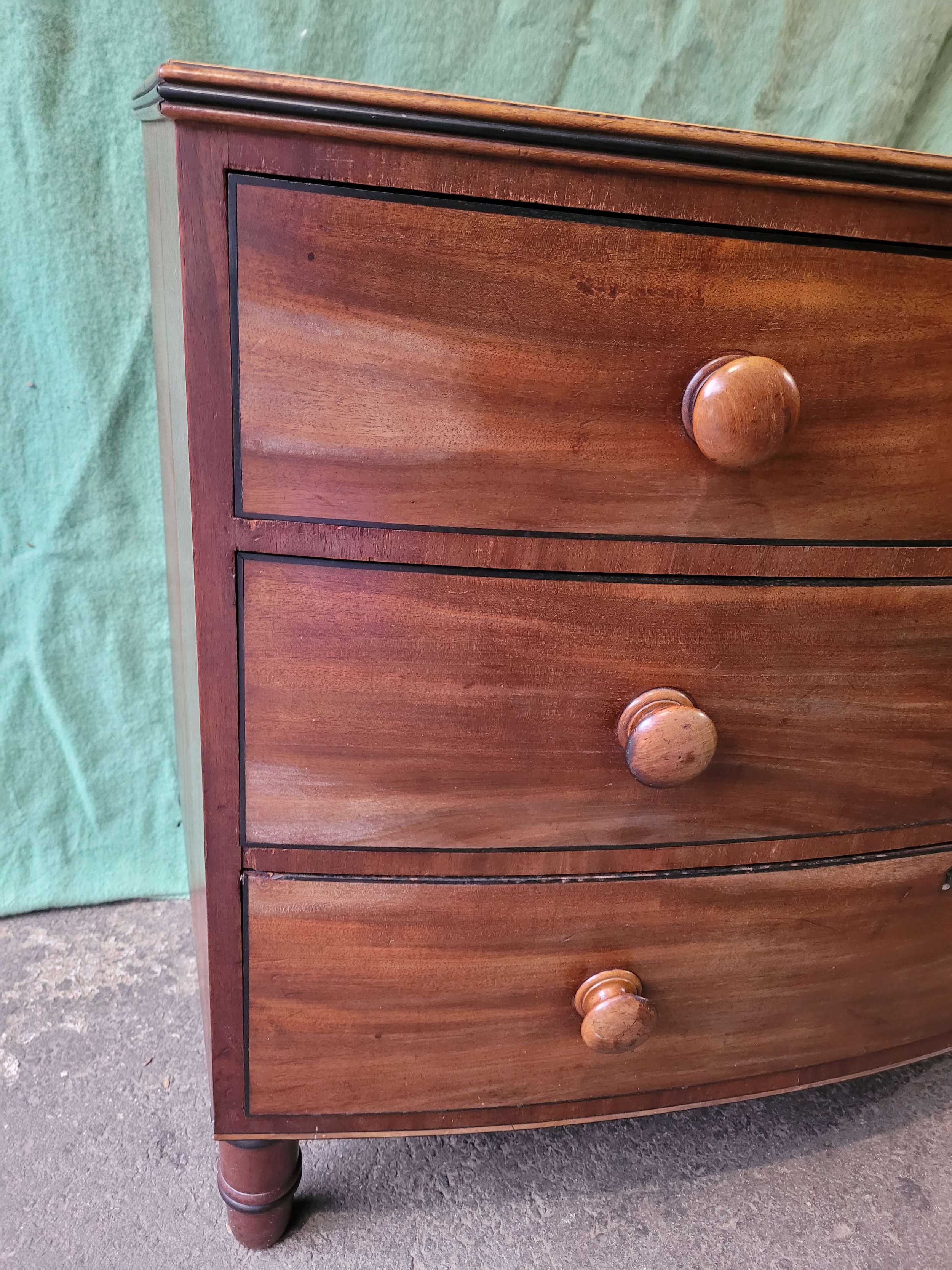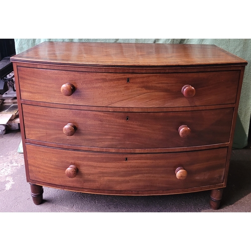 19th century Mahogany bow front chest of three drawers