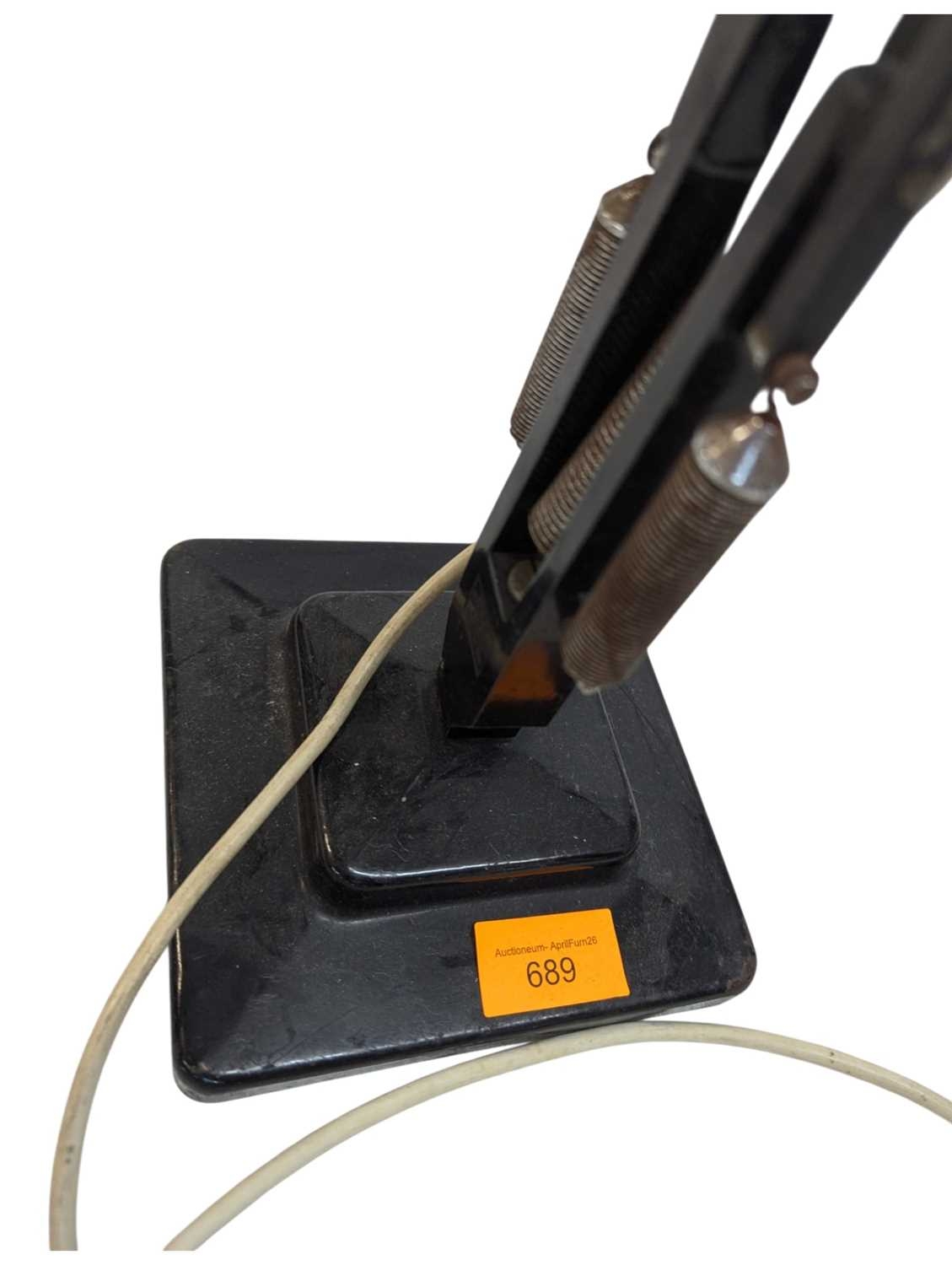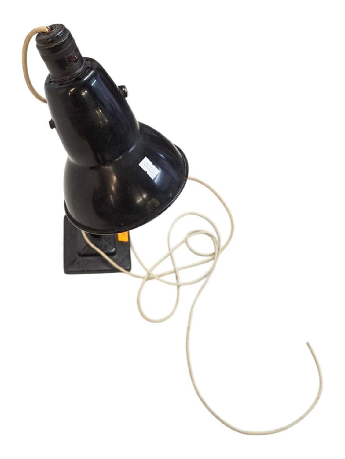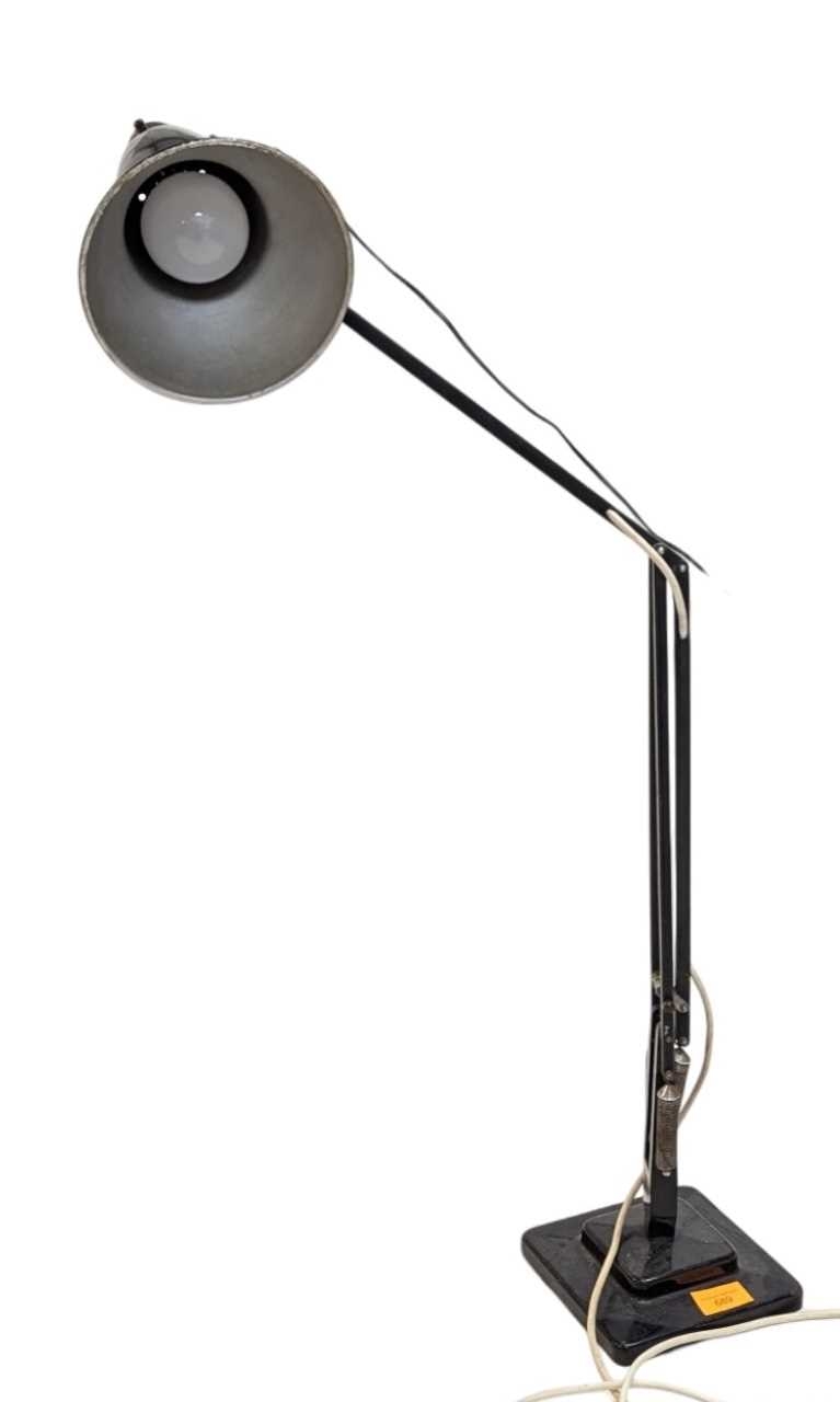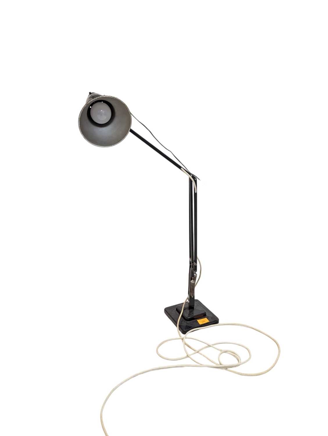 Herbert Terry - Model 1227 - A vintage 20th century Anglepoise table / desk lamp light. The lamp having a conical shade with spring loaded arms. Features a solid cast two tiered painted base in black colourway. Stamped to the base of arm. Measures approx: 89x15x15cm