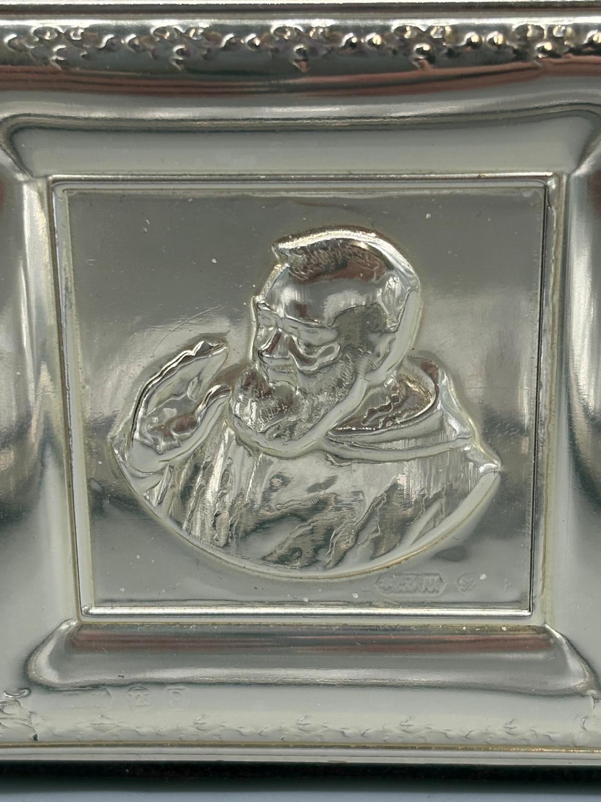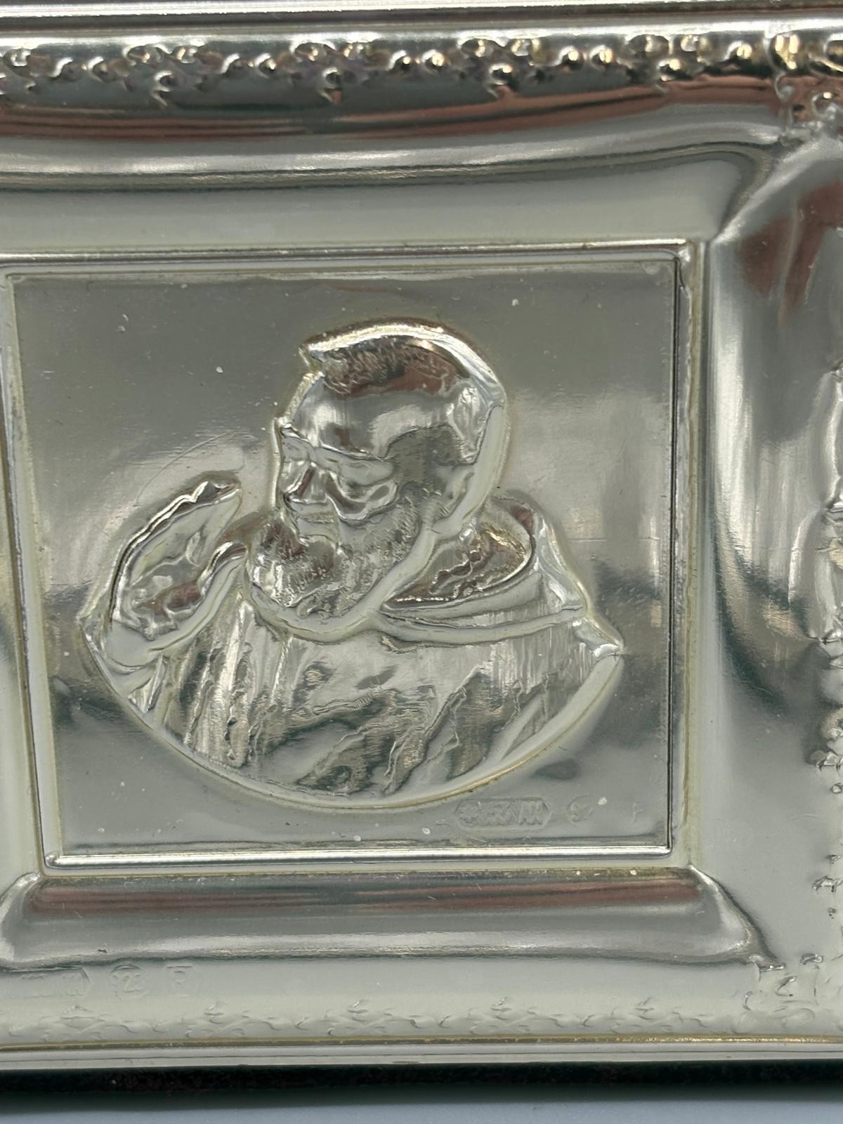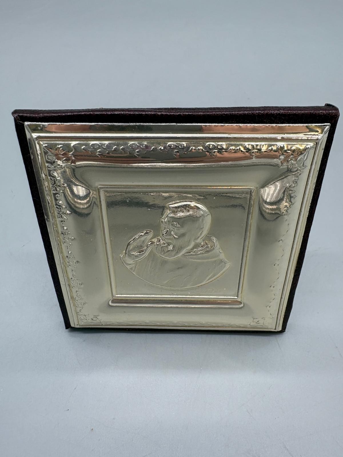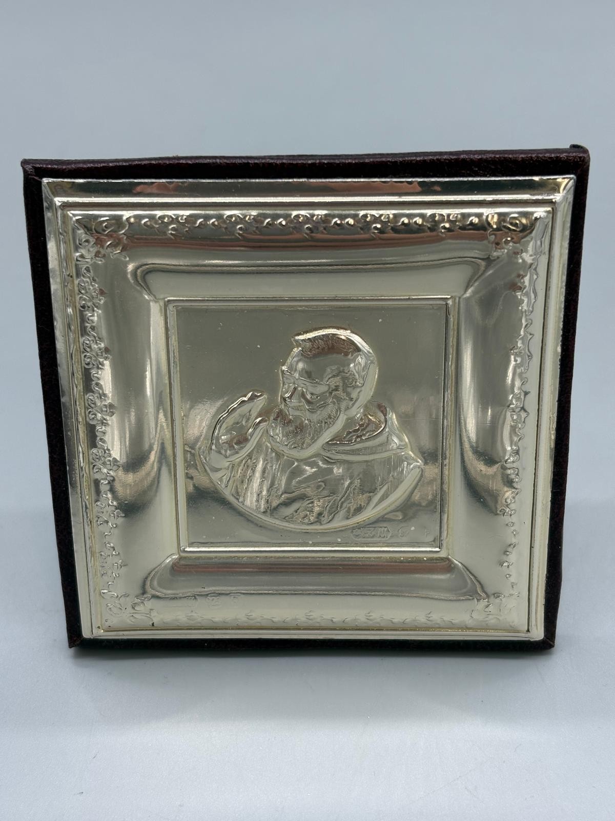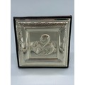 925 Silver and leather religious icon. Comes with leather and silver box. Icon frame- 9x9cm.