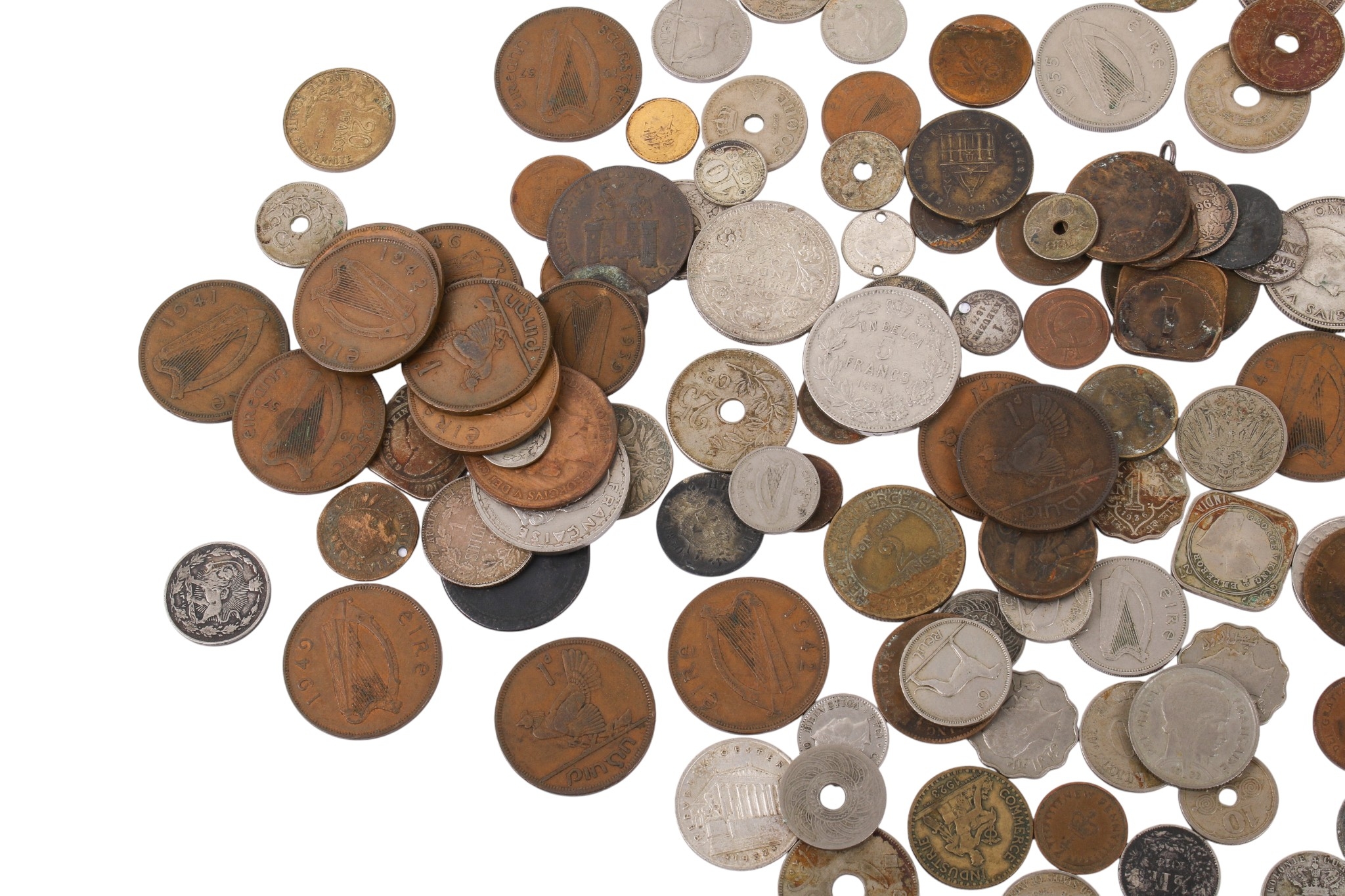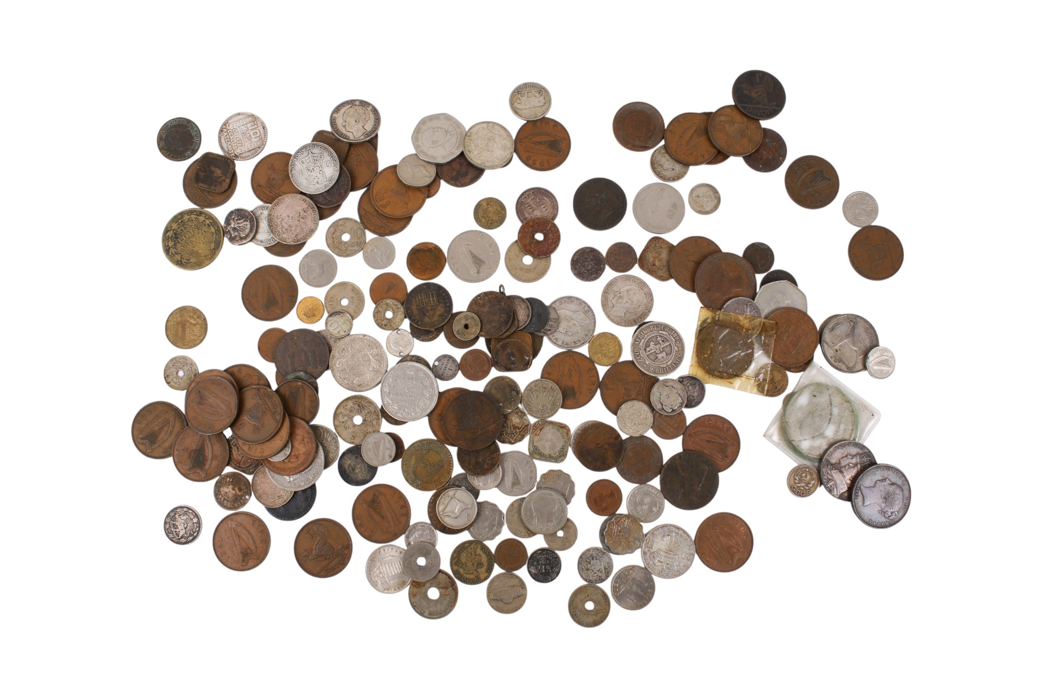 A collection of assorted 19th and 20th century world coins. Including silver