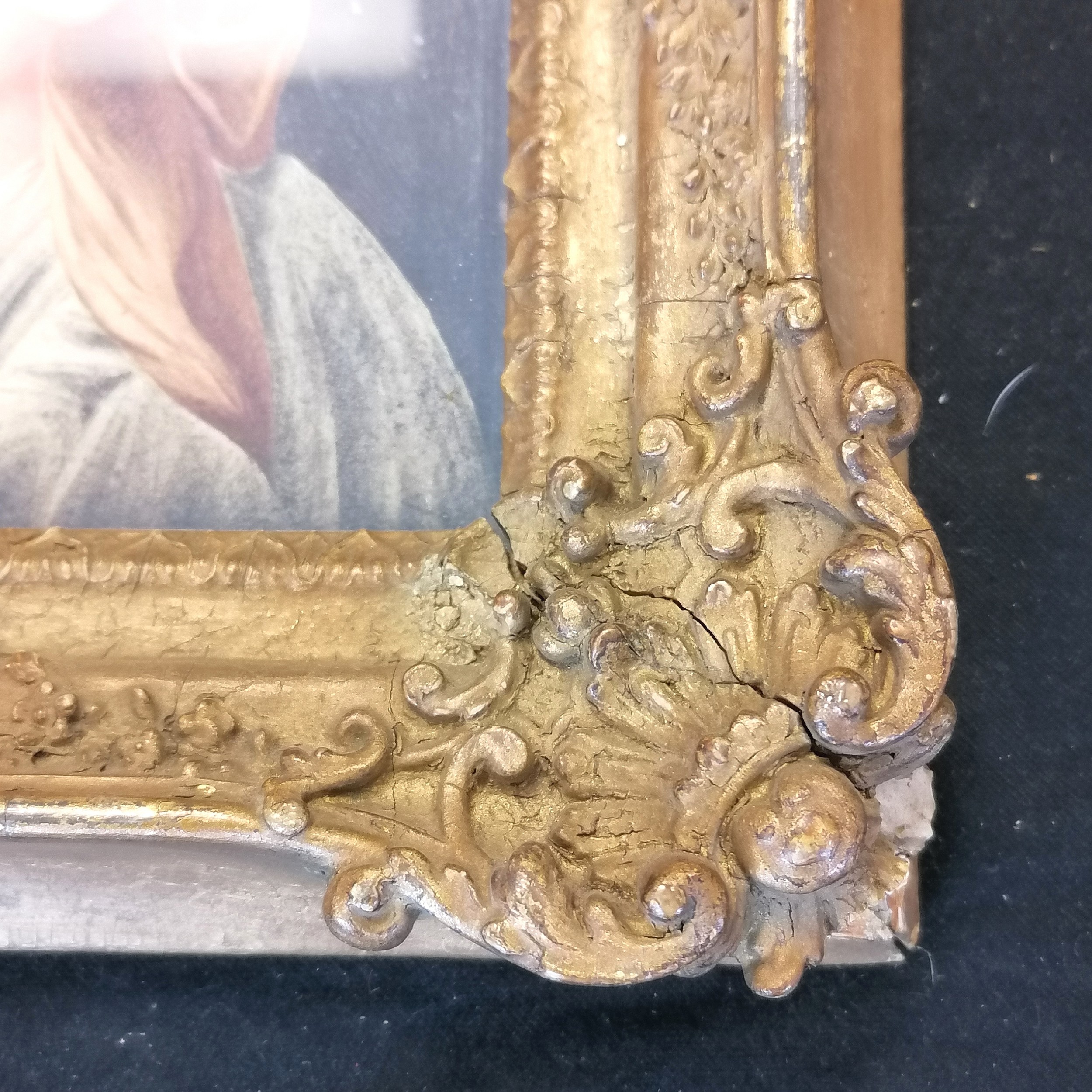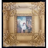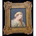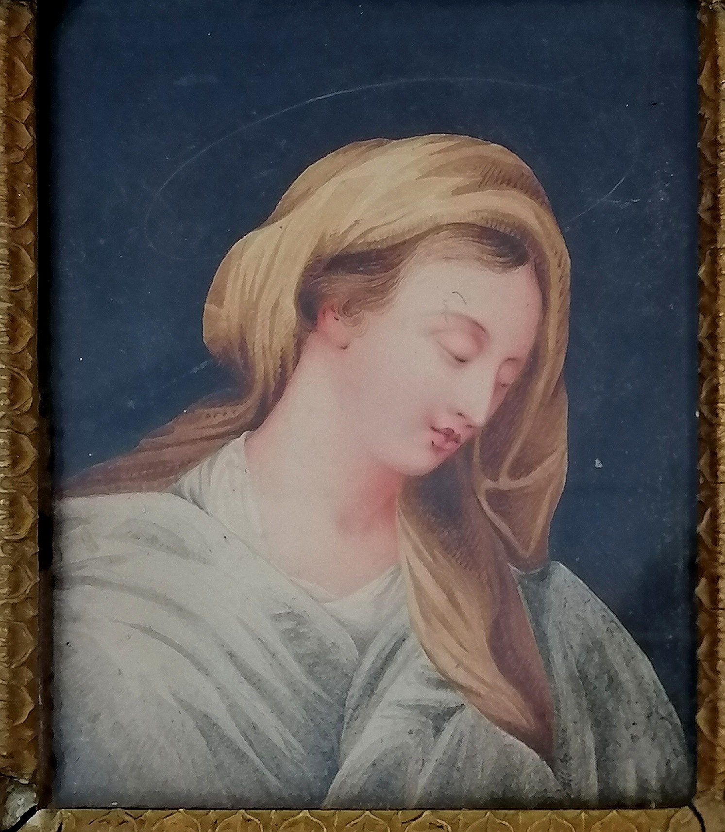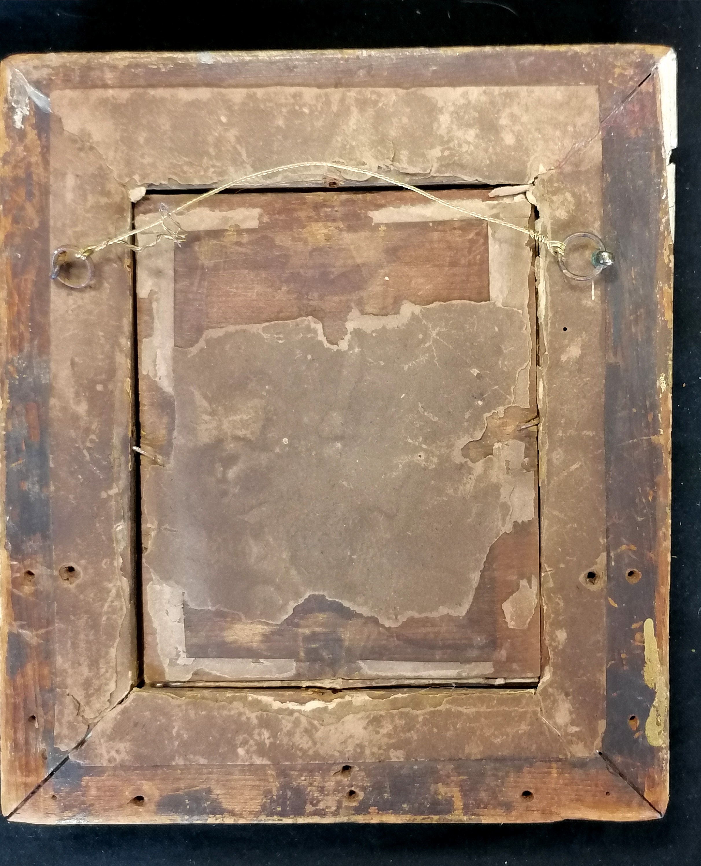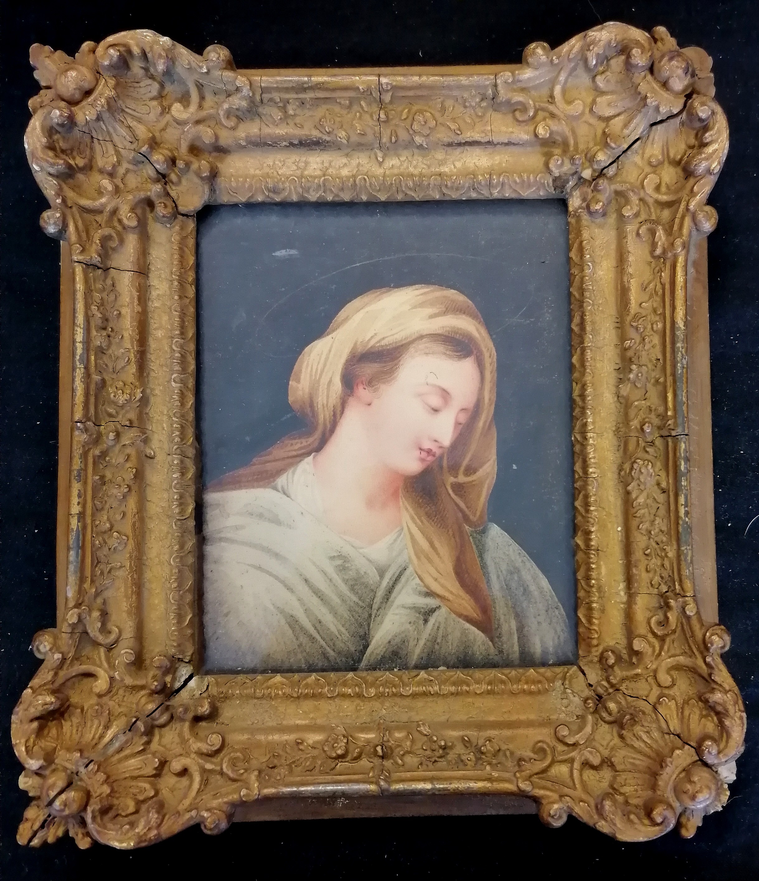 Antique continental watercolour on paper of a religious figure in its original frame 19cm x 22cm - no obvious damage but some losses to the frame