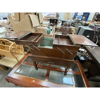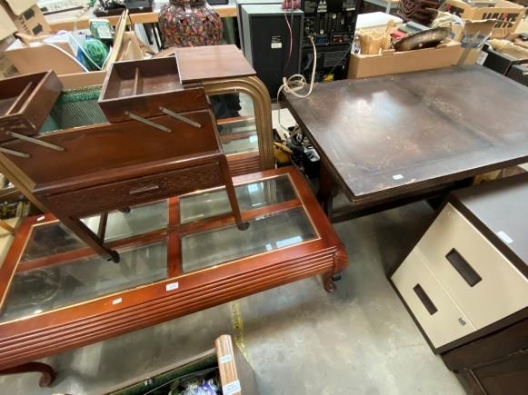 Oak draw leaf table (78H 115W 71D cm) & modern mahogany effect coffee table (43H 140W 70D cm)