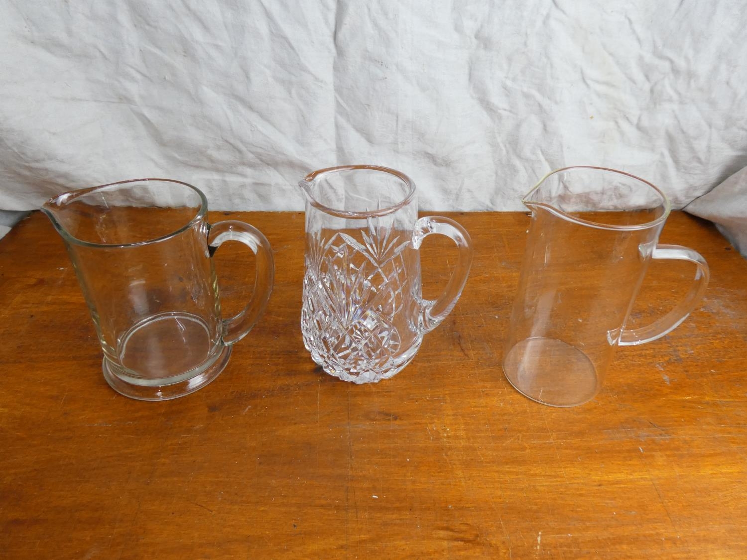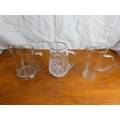 Three glass water jugs.