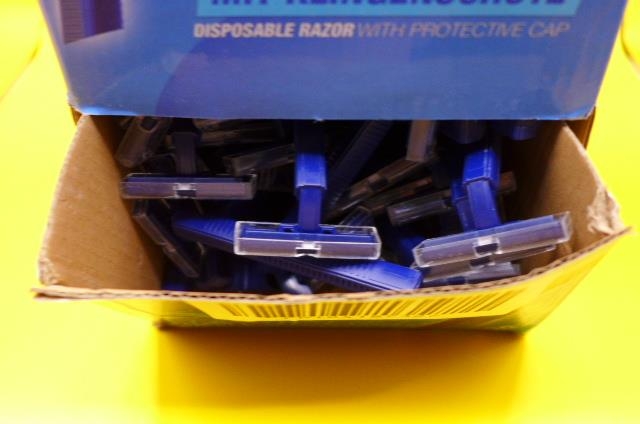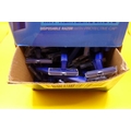 A box of disposable razors with protective caps * This lot is subject to VAT
